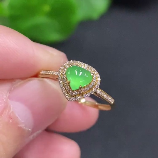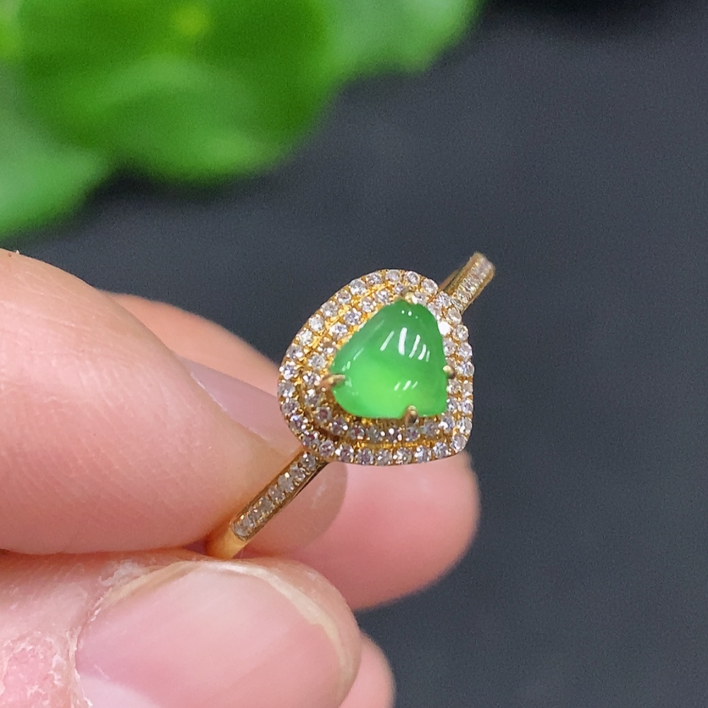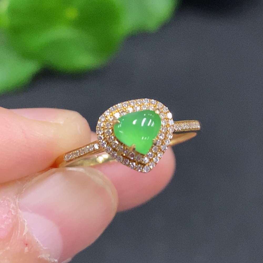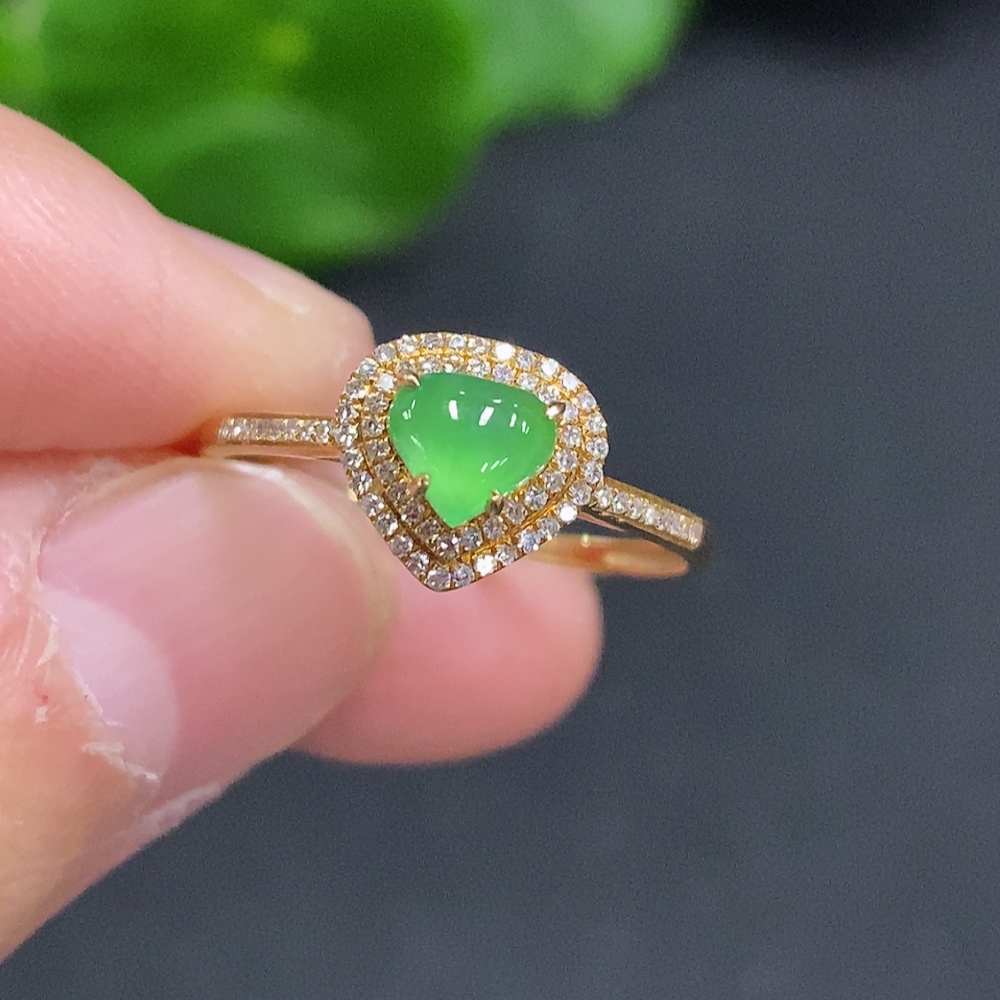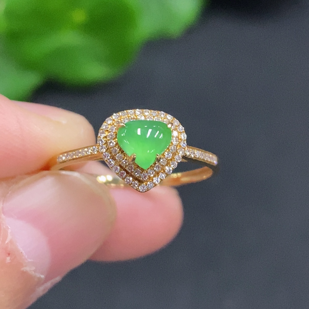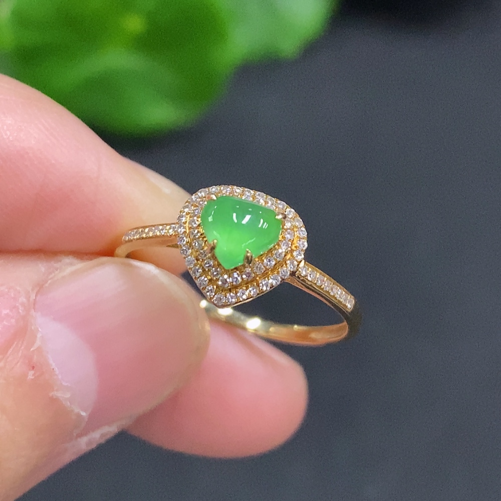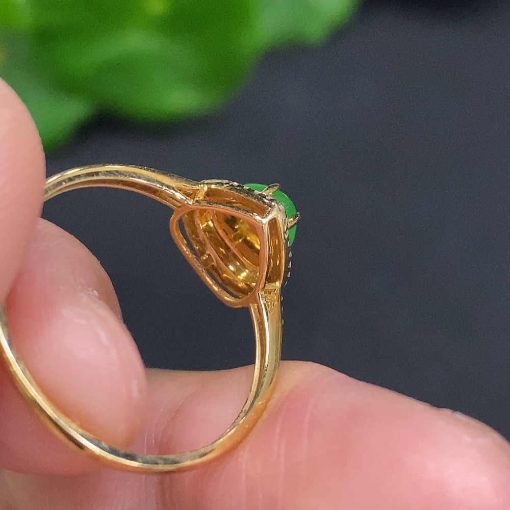 Jadeite Ring with 18K Gold Size 15 Total Weight Approx. 1.6g (Accented with Diamonds)