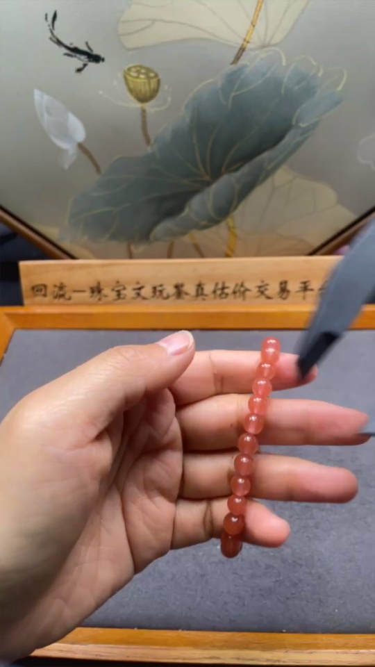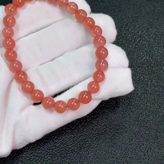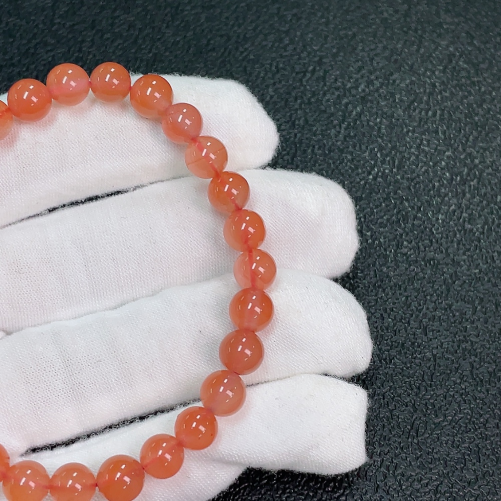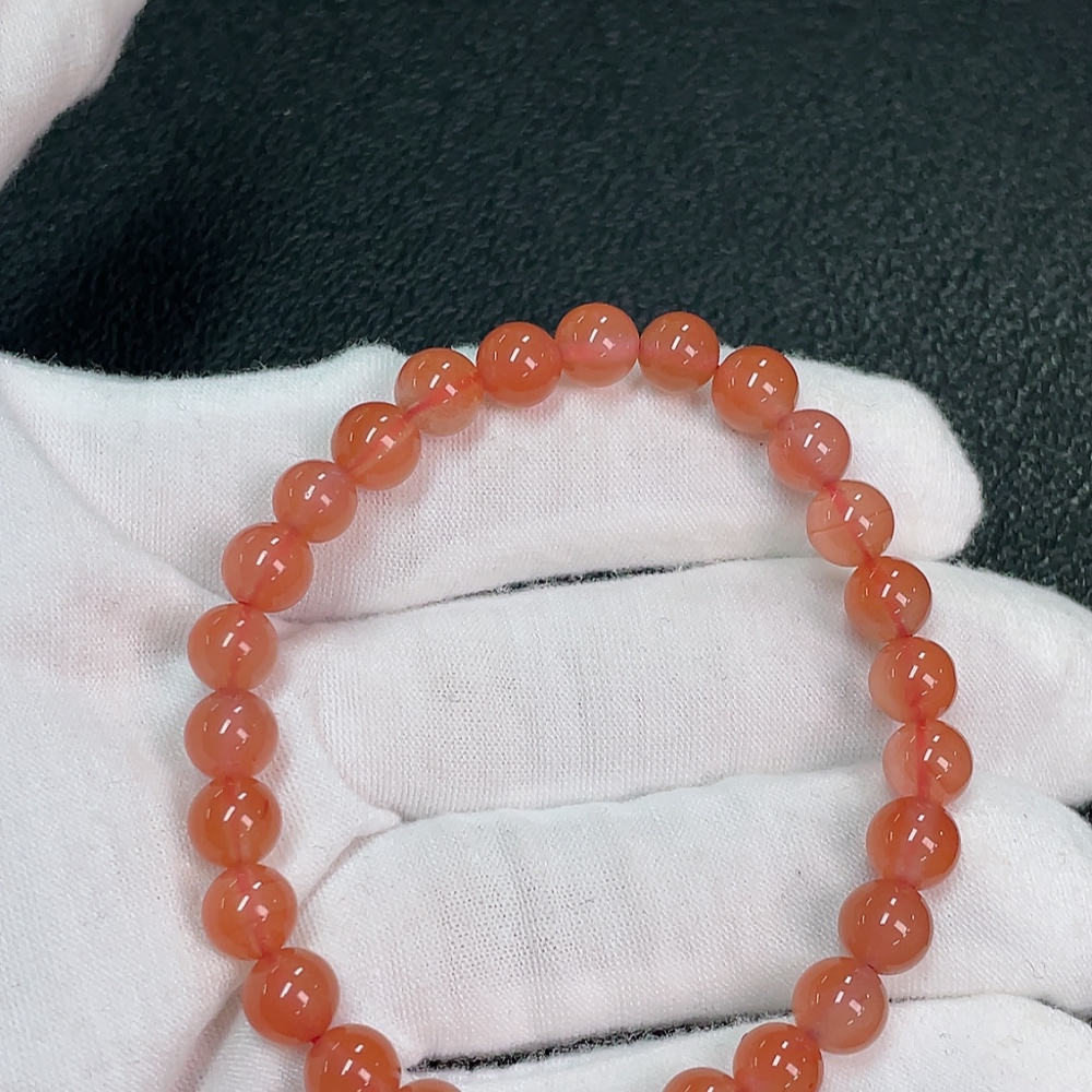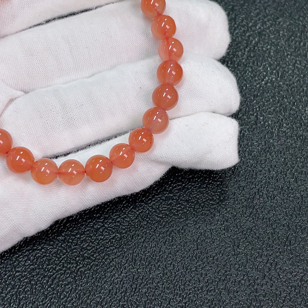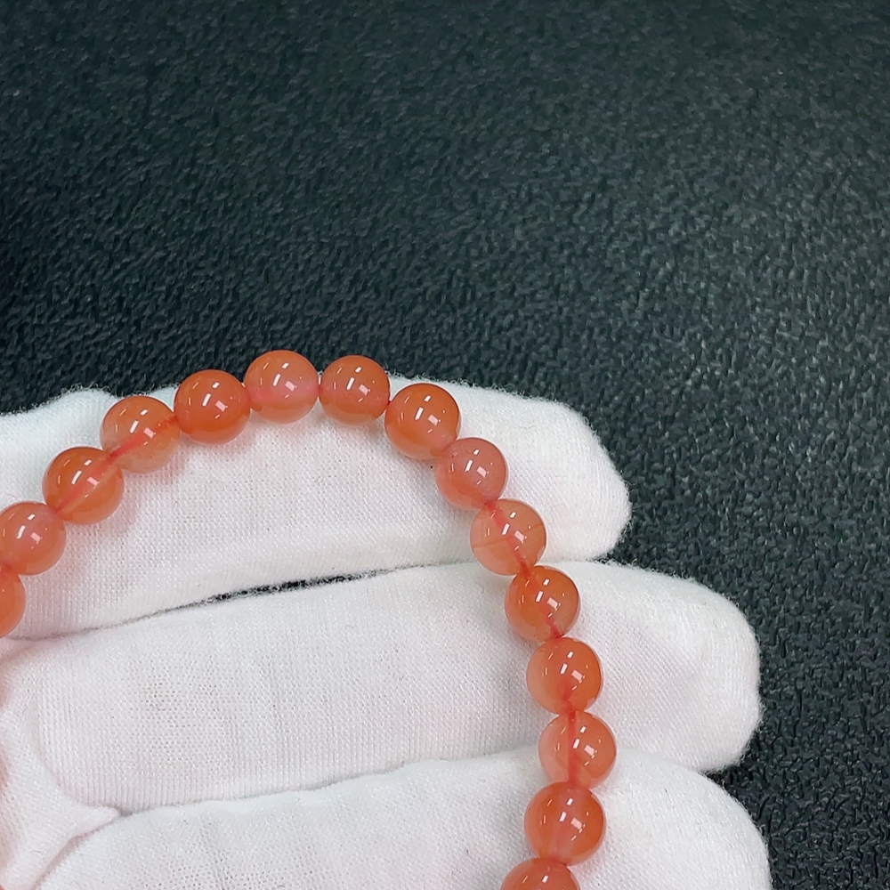 Red Agate Bracelet with Visible Organic Matter, Total Weight Approx. 11.31g, Size ~6.7mm
