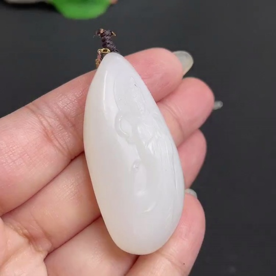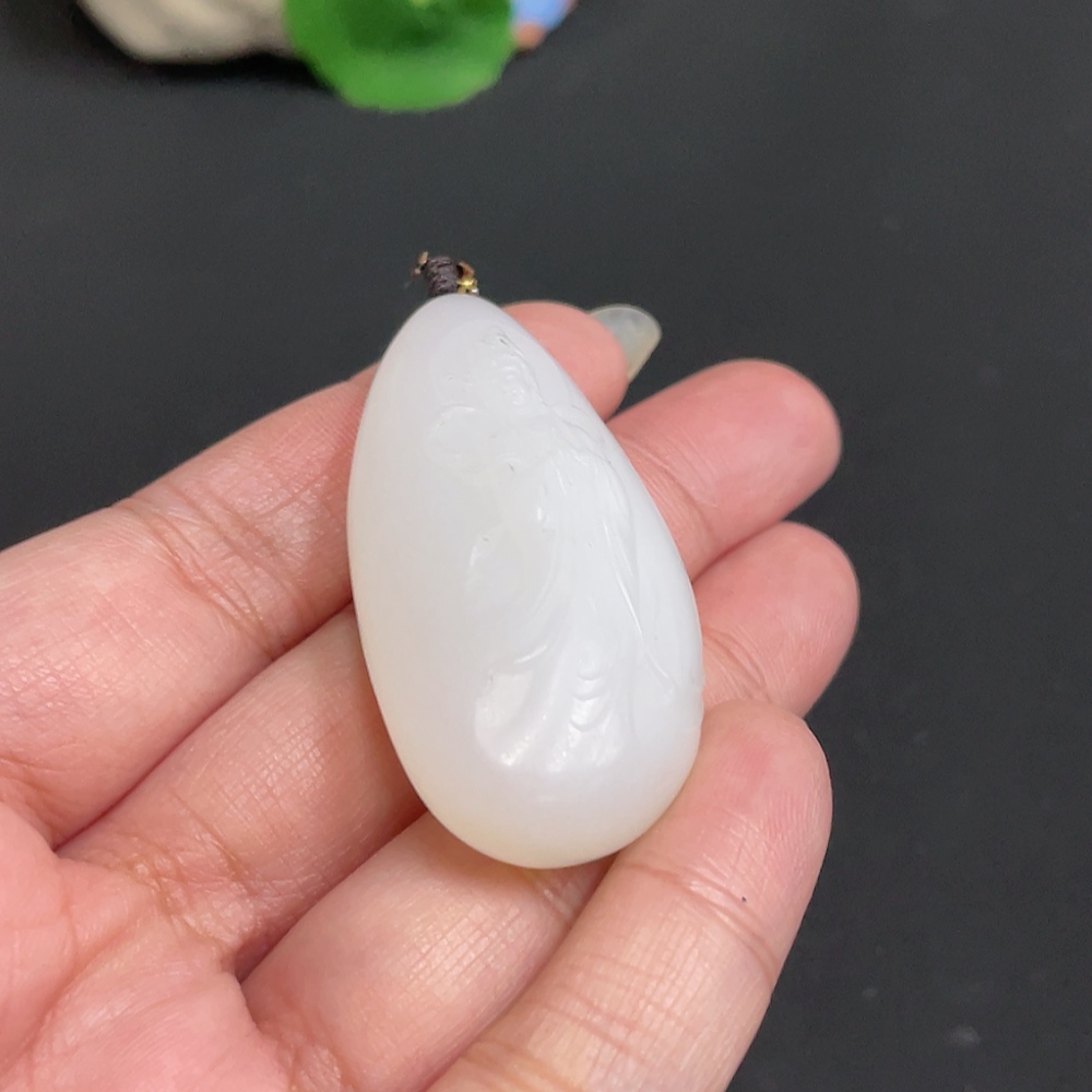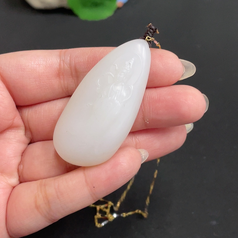 Hetian Jade Pendant Guanyin Total Weight Approx. [with chain] 33g 18k Undetermined Skin Color Origin