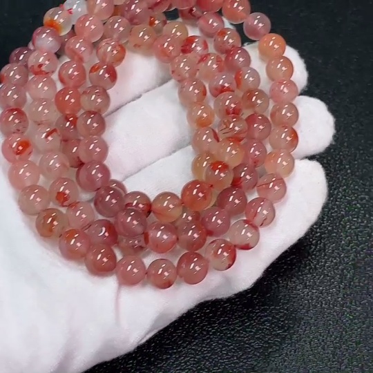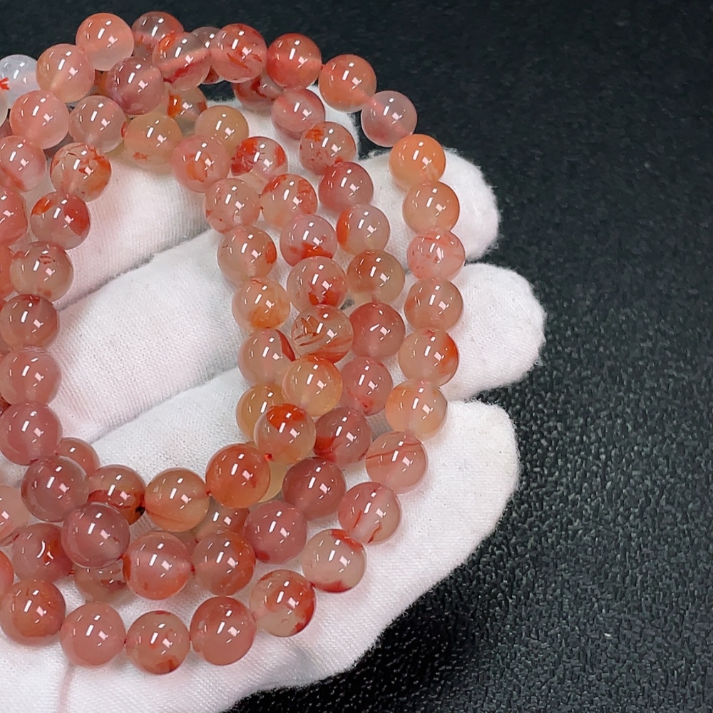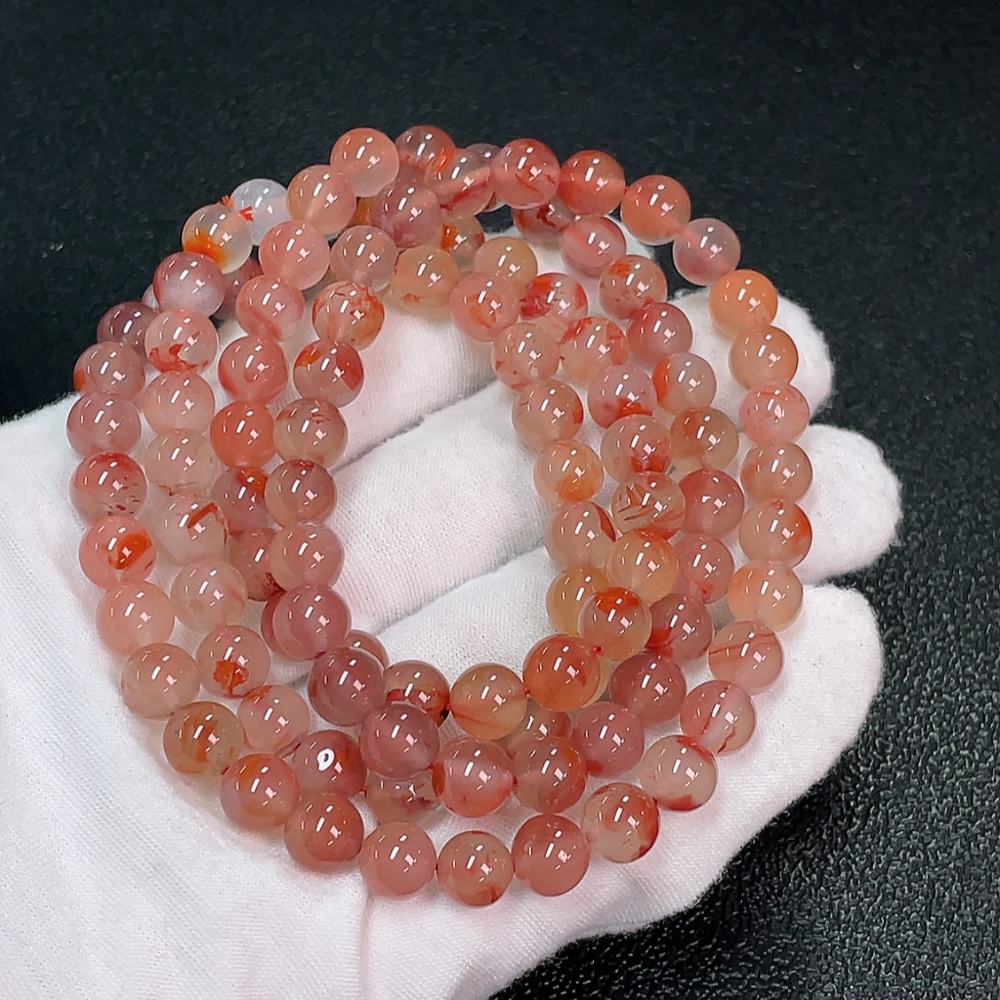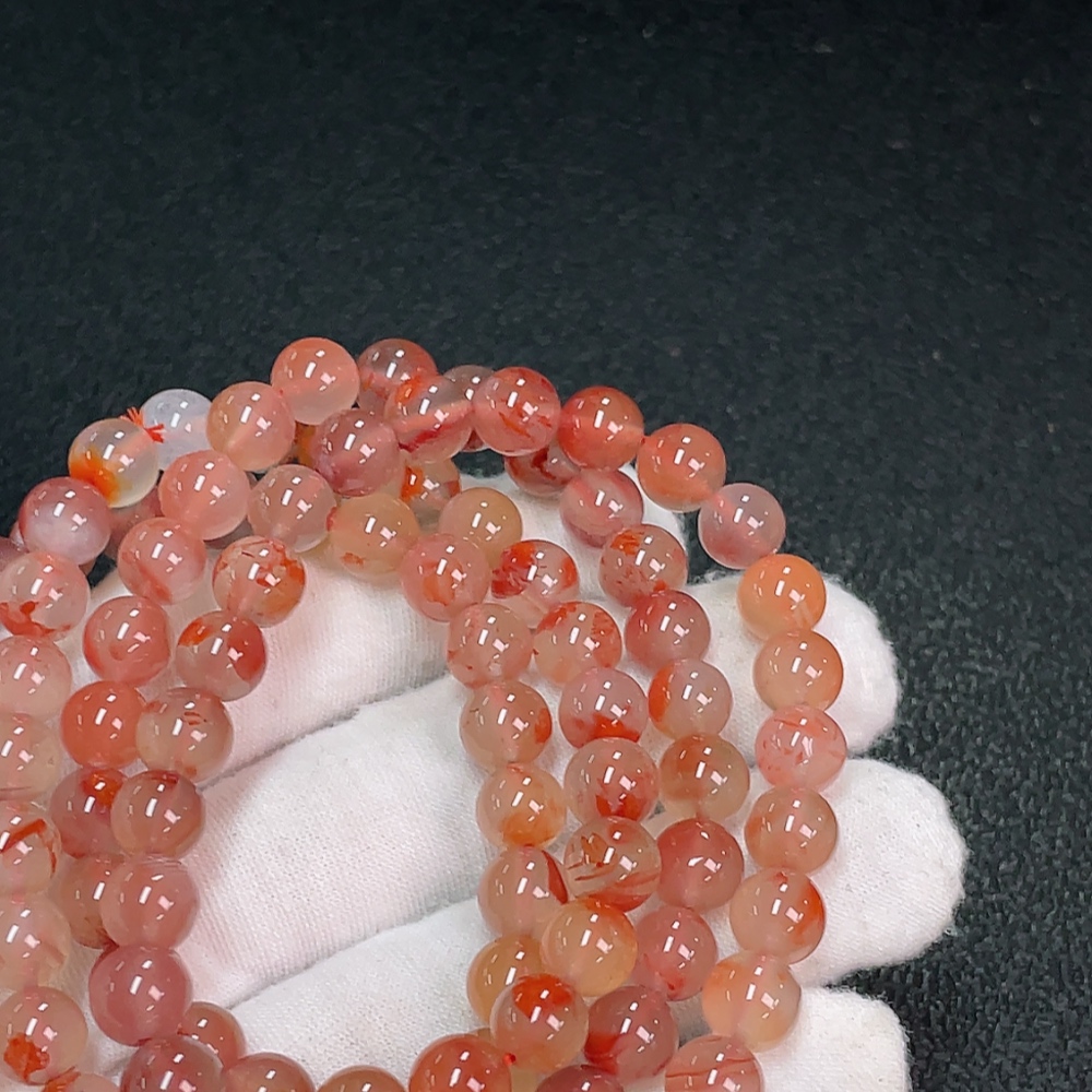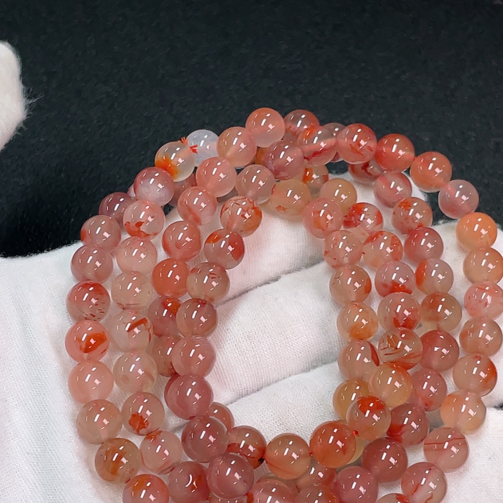 South Red Agate Bead Strand with Visible Organic Matter, Total Weight Approx. 64.05g, Size About 7.3mm