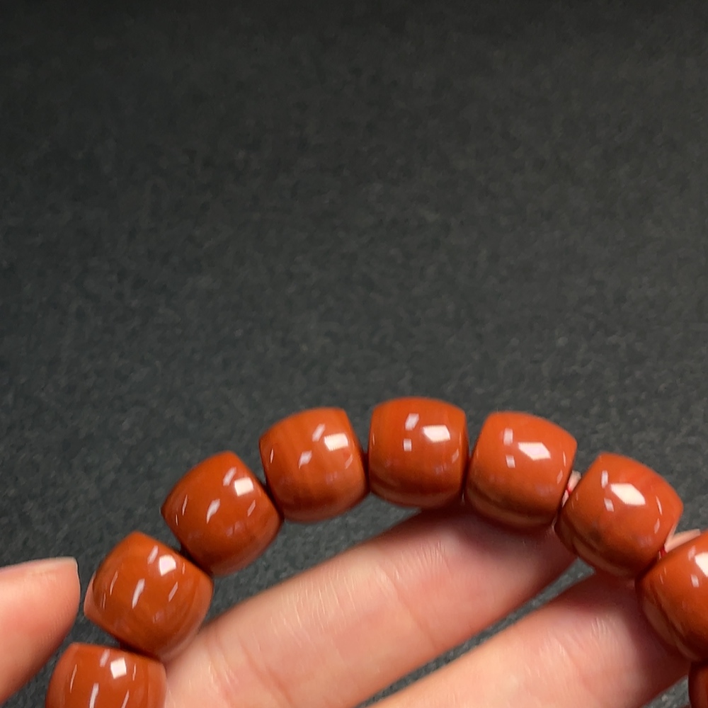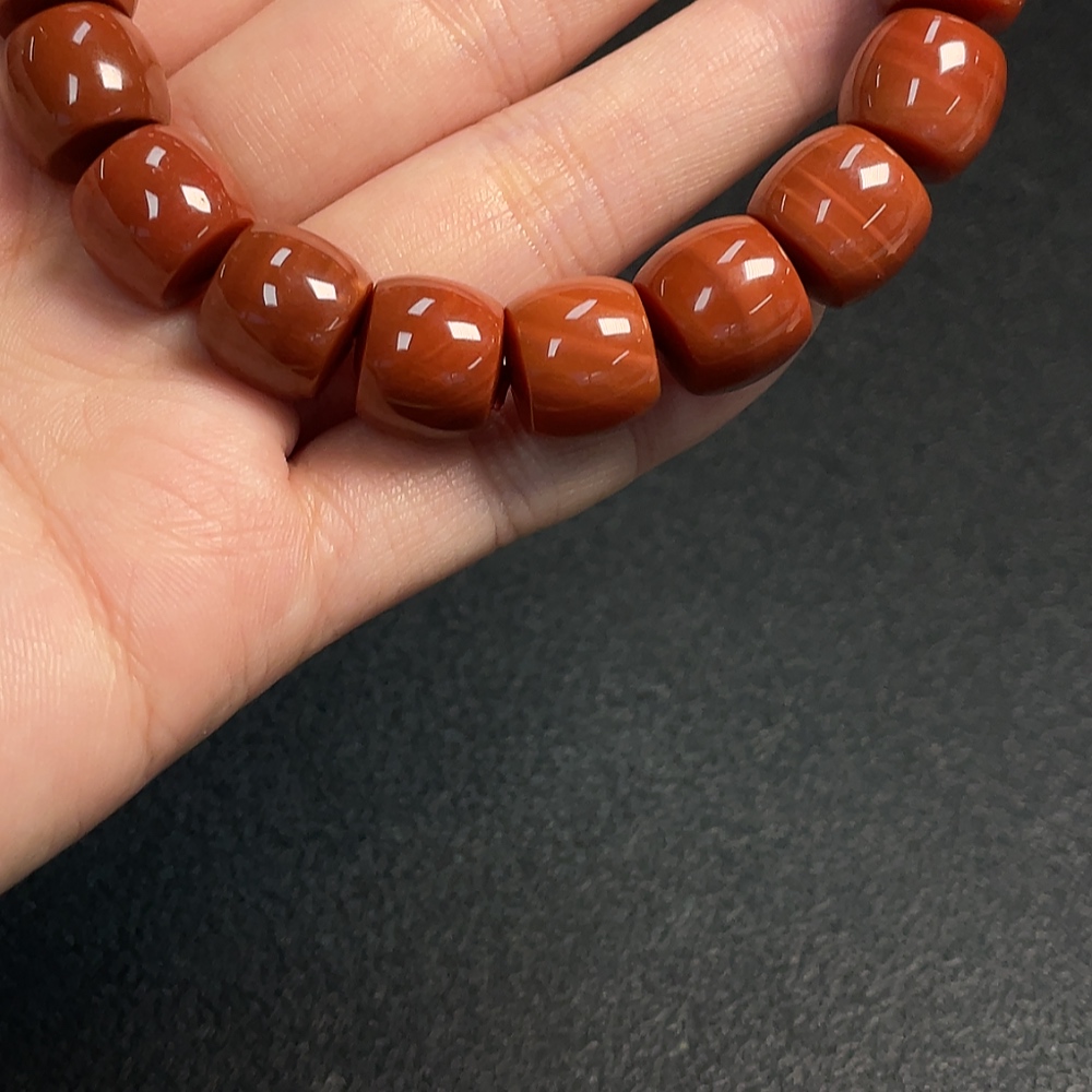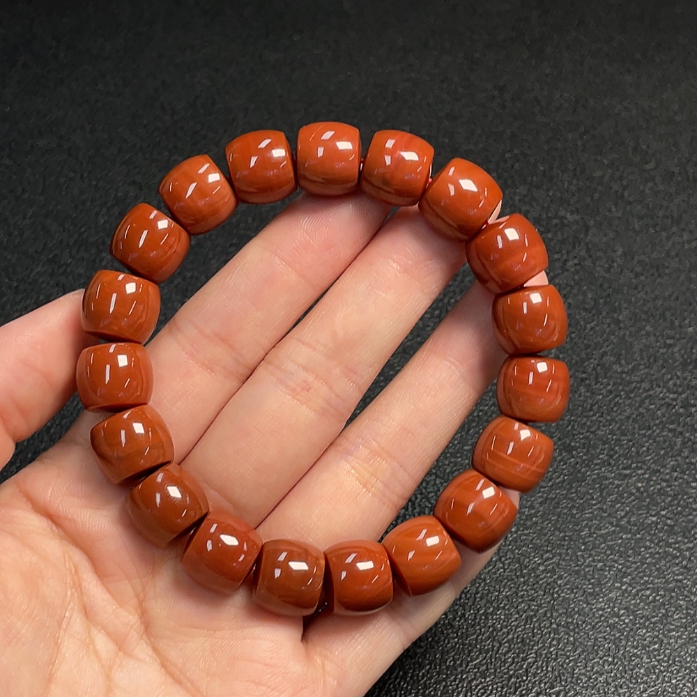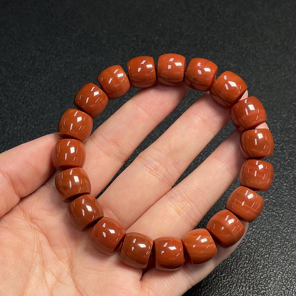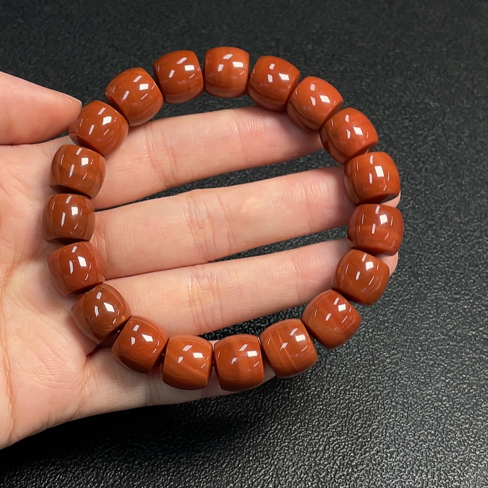 Red Agate Bracelet with Visible Organic Matter, Total Weight Approximately 52.63g, Size About 12.5mm