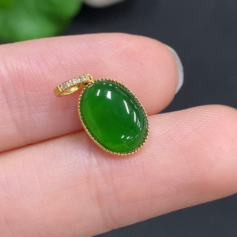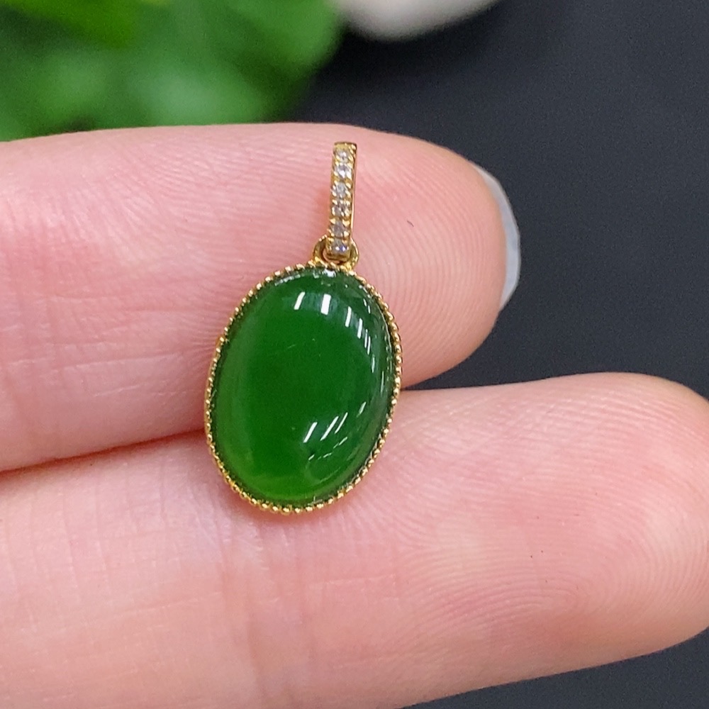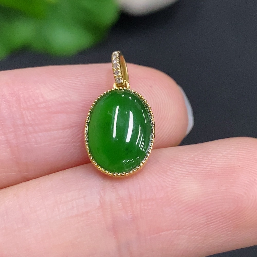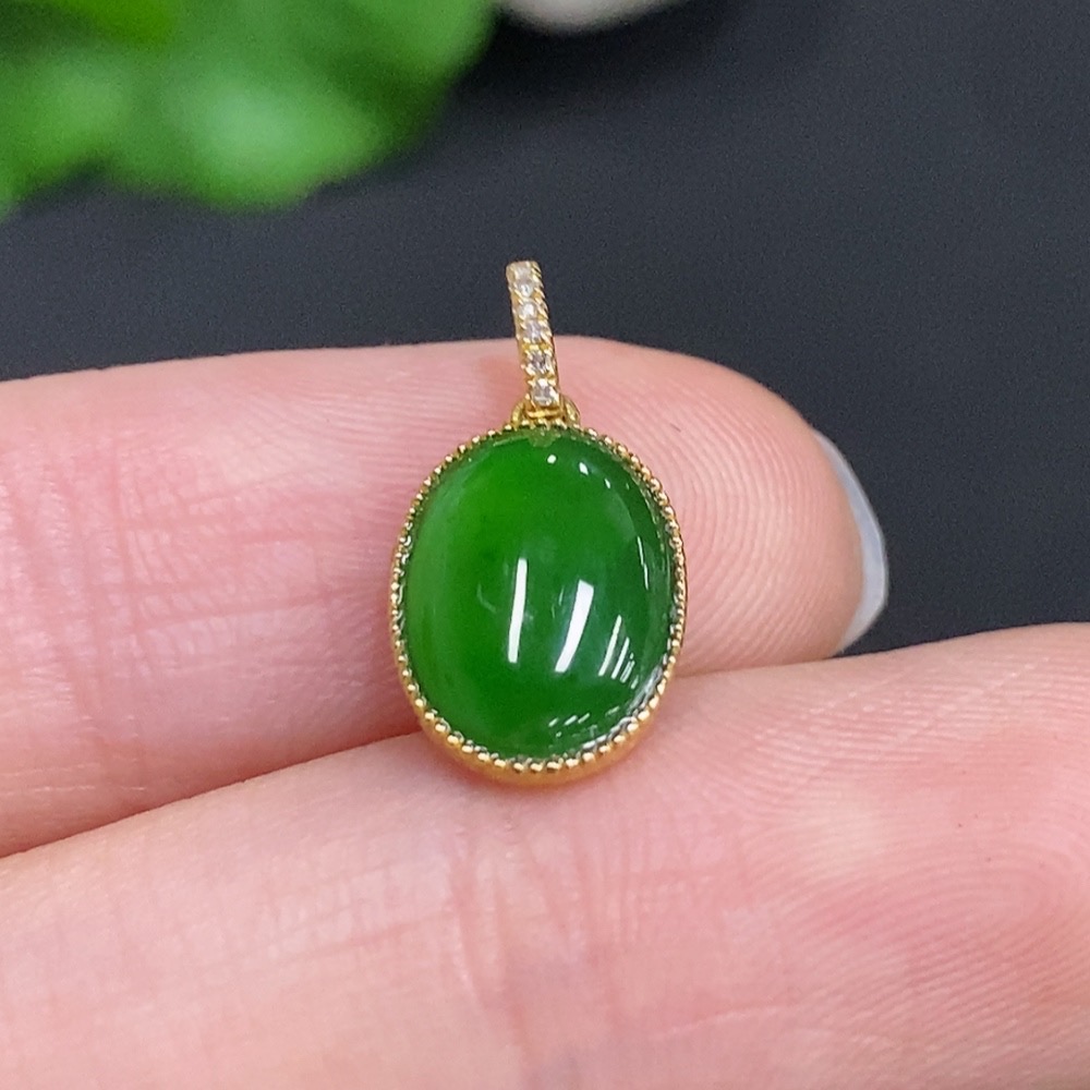 Jadeite cabochon pendant in 18k gold, total weight approx. 0.9g, non-diamond