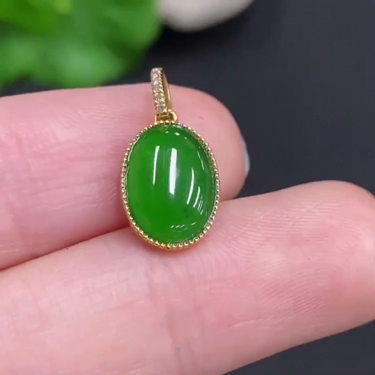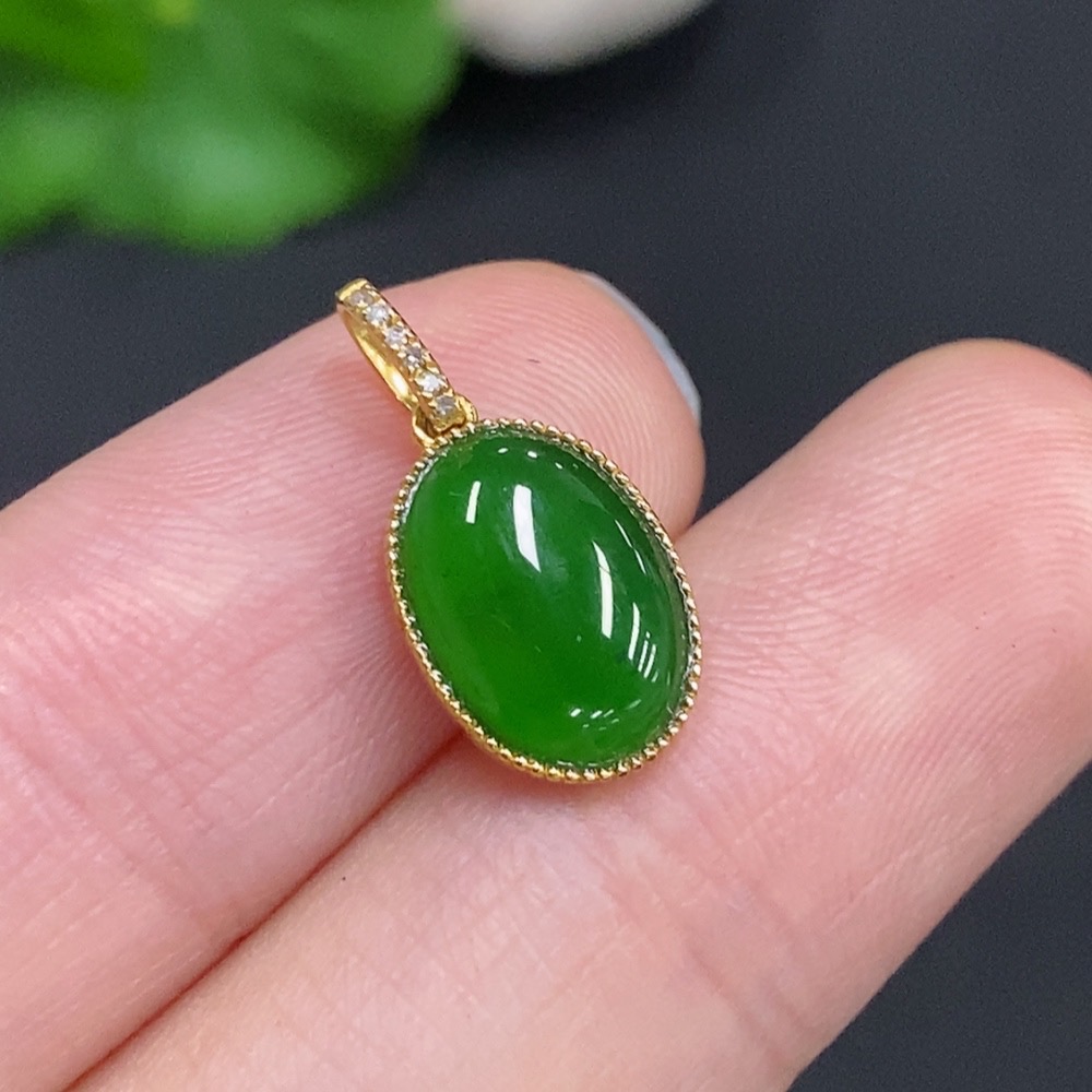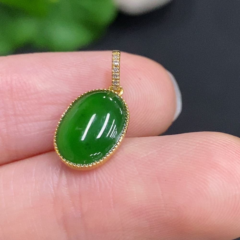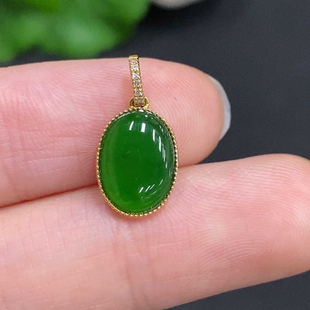 Jadeite cabochon pendant in 18k gold, total weight approx. 0.9g, non-diamond