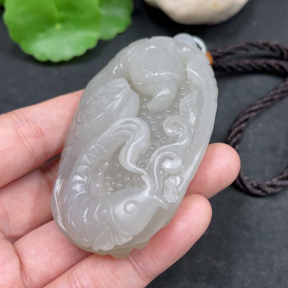 Hetian Jade Handheld Piece Seize the Opportunity with Matching Hetian Jade Beads