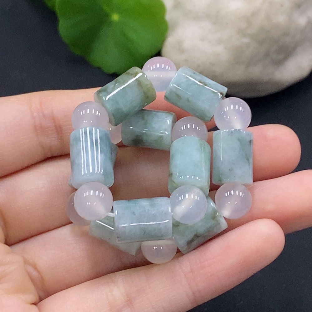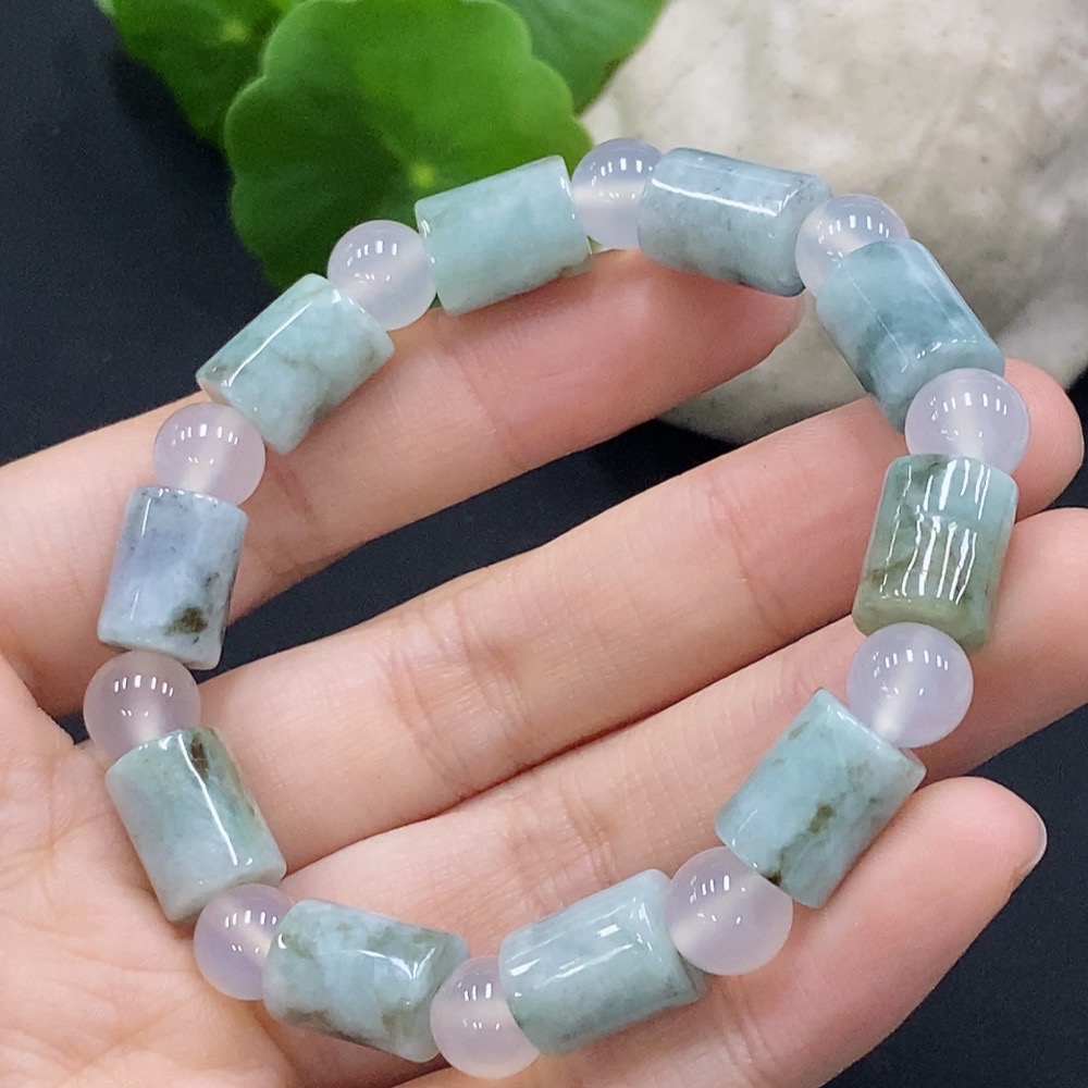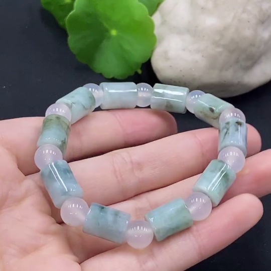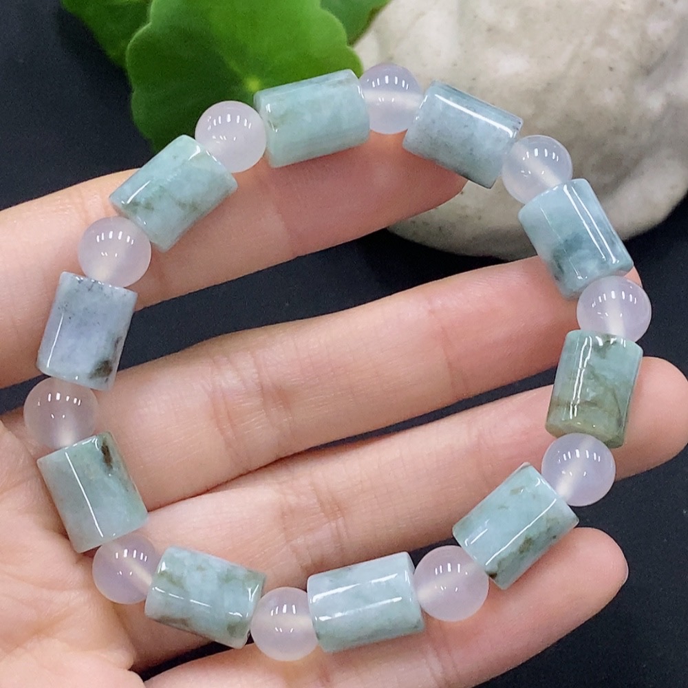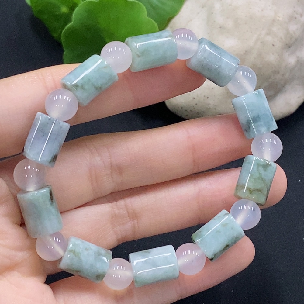 Jadeite Beads Bracelet Approx. 8.7mm Total Weight Approx. 27.5g (Including Other Mineral Components) (Beads Not Grade A)