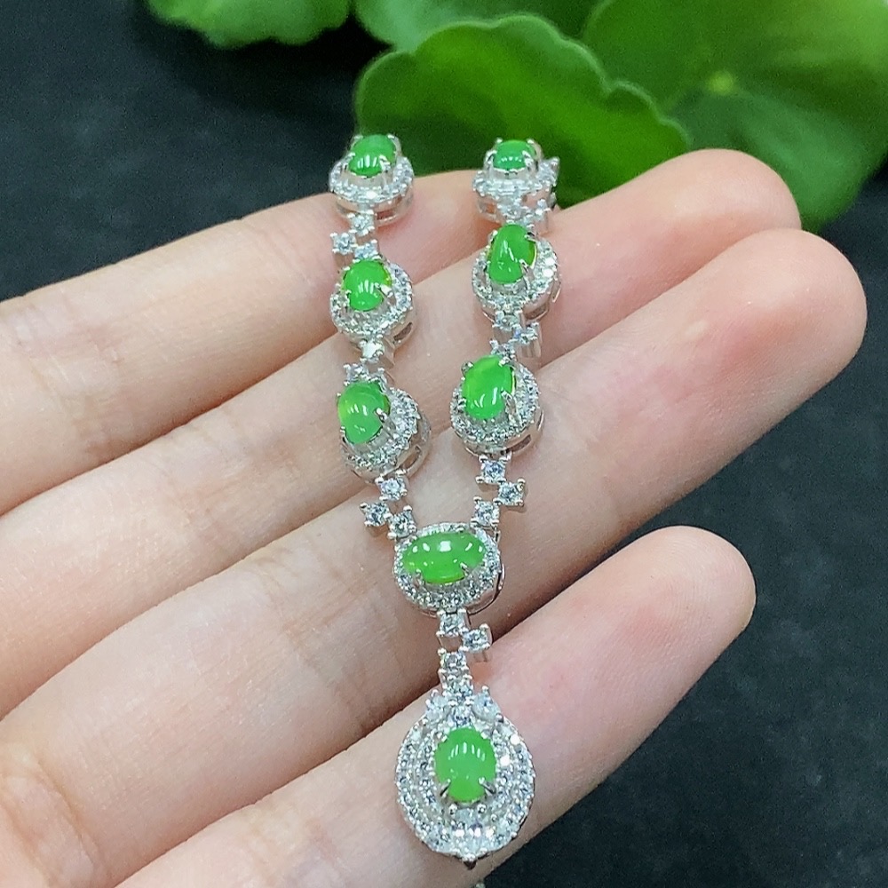 Jadeite Cabochon Pendant Necklace Non-Gold Setting Total Weight Approx. 7.81g