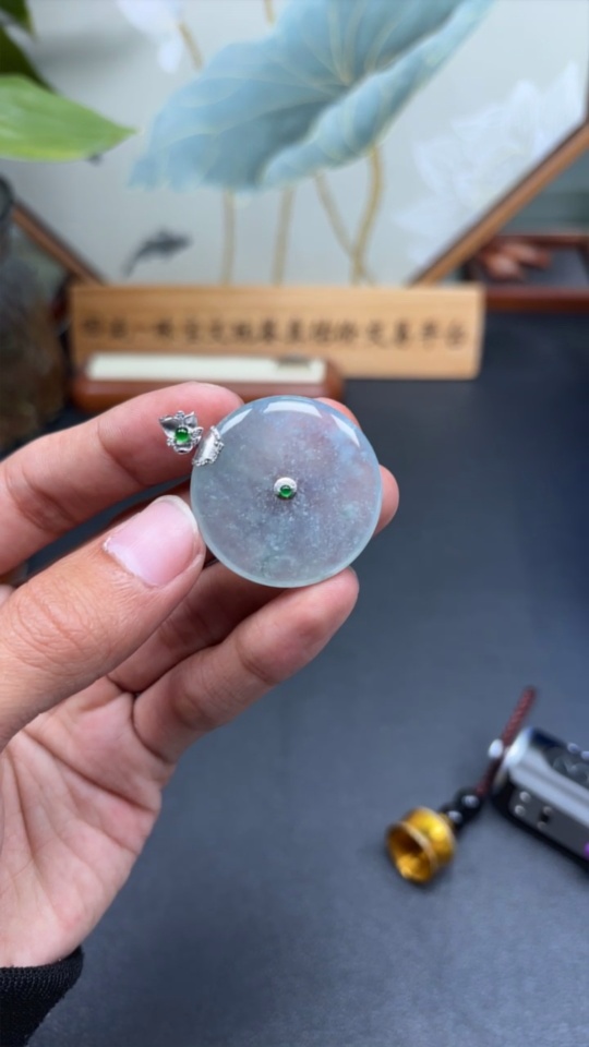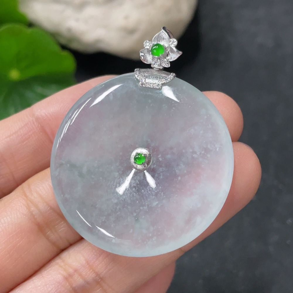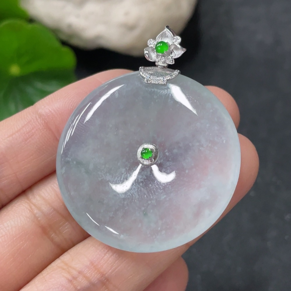 Jadeite Pendant Peace Knot 18k with Diamond Accents Total Weight Approx. 12.83g