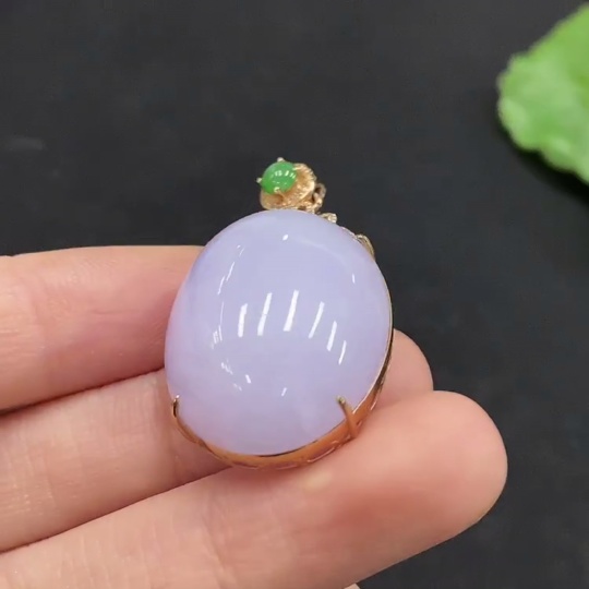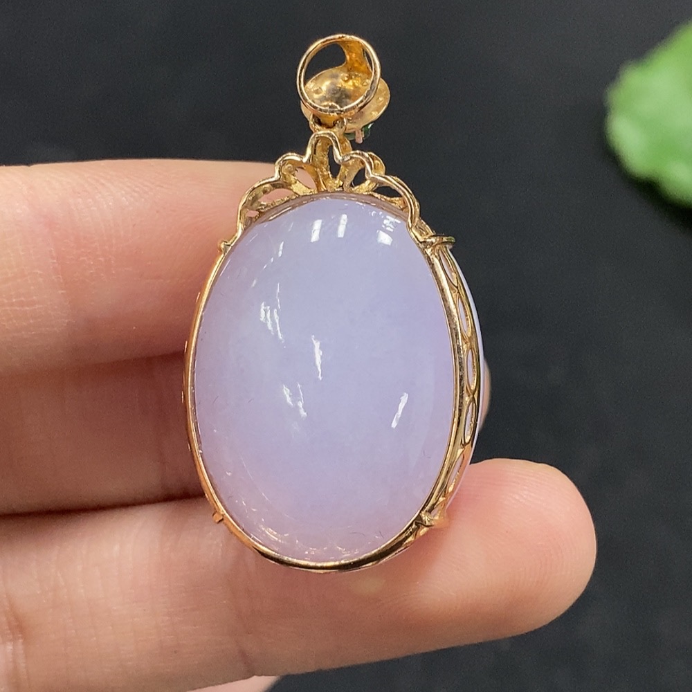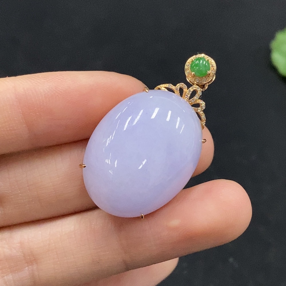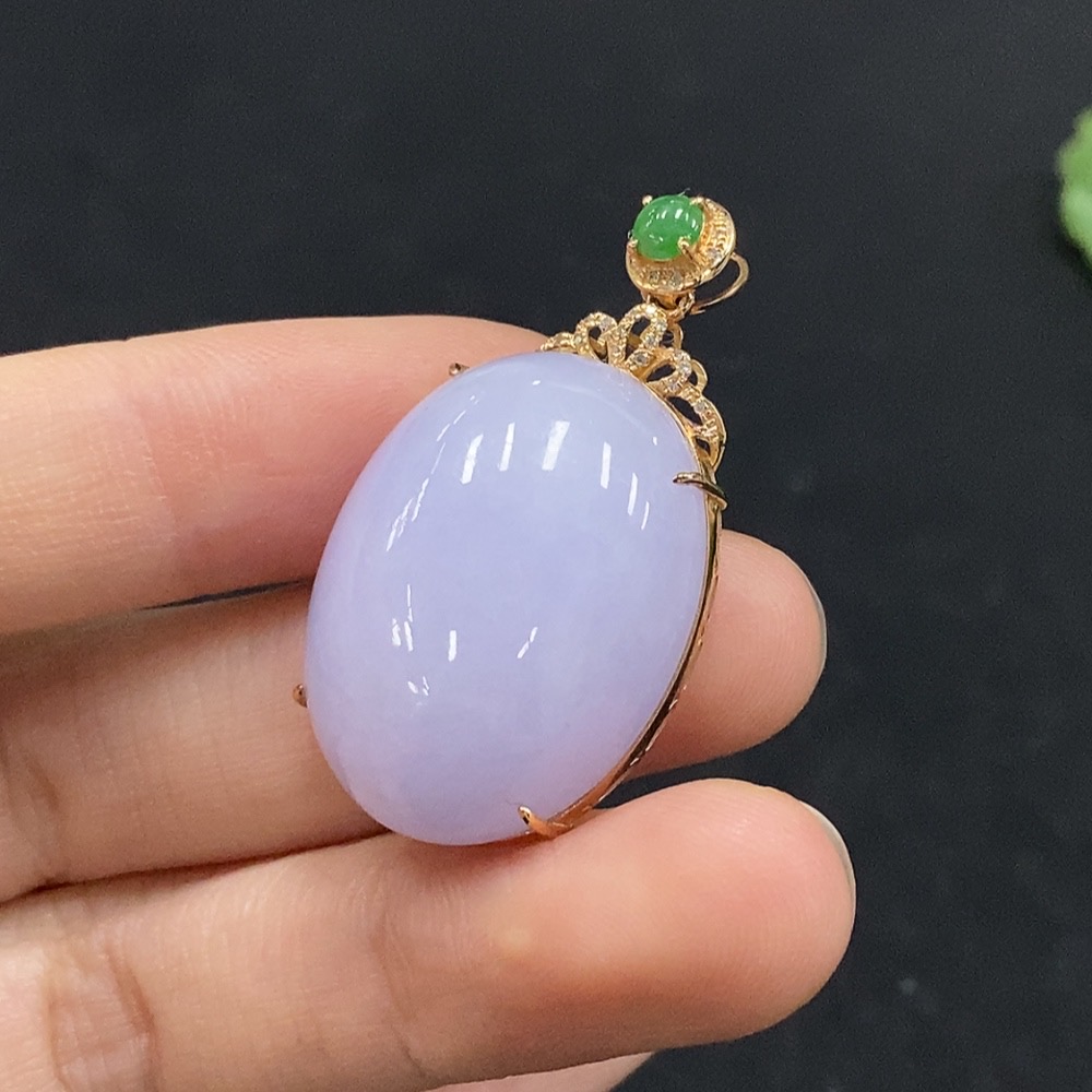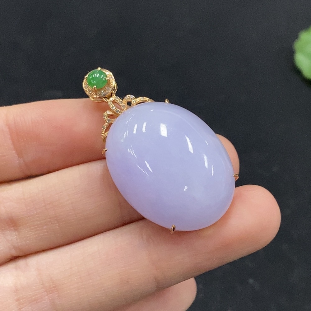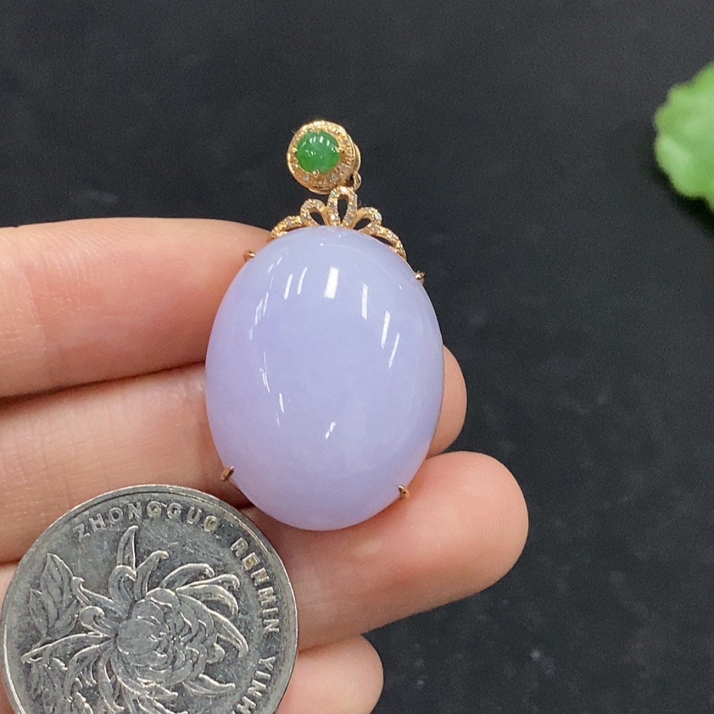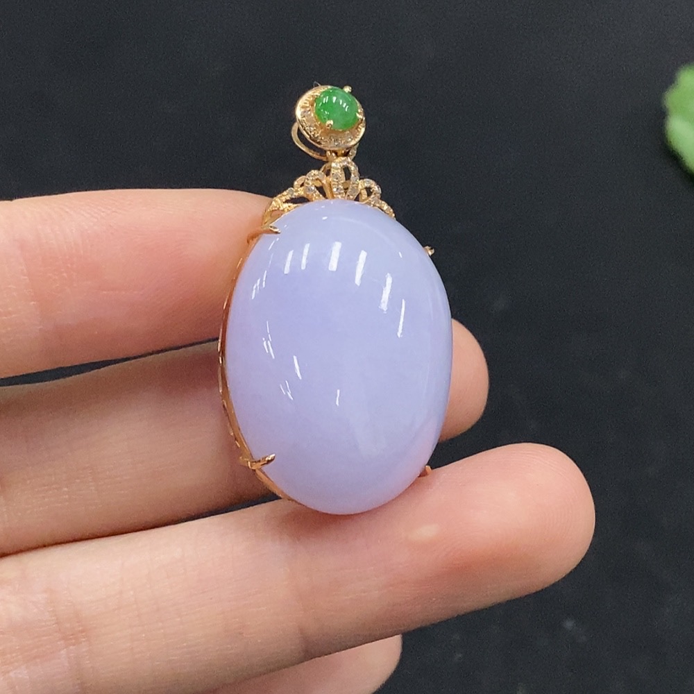 Jadeite Cabochon Pendant with 18K Gold and Diamond Accents, Total Weight Approx. 12.44g
