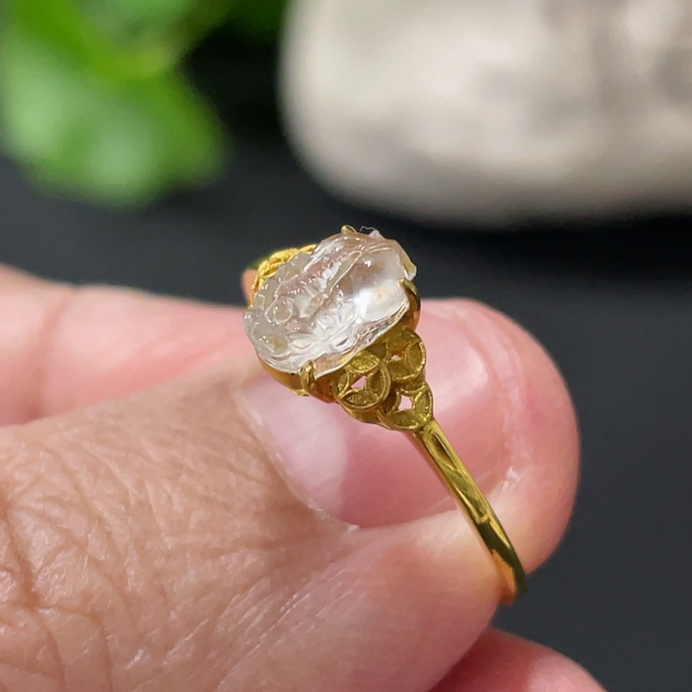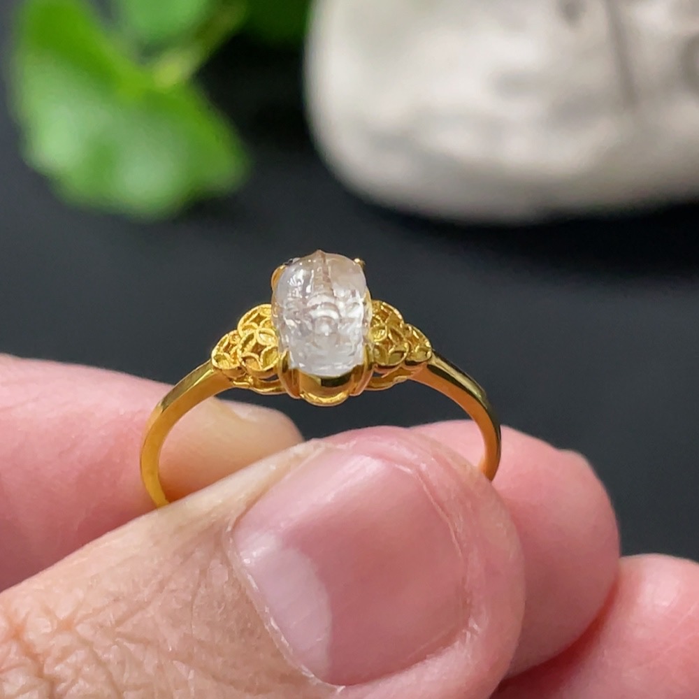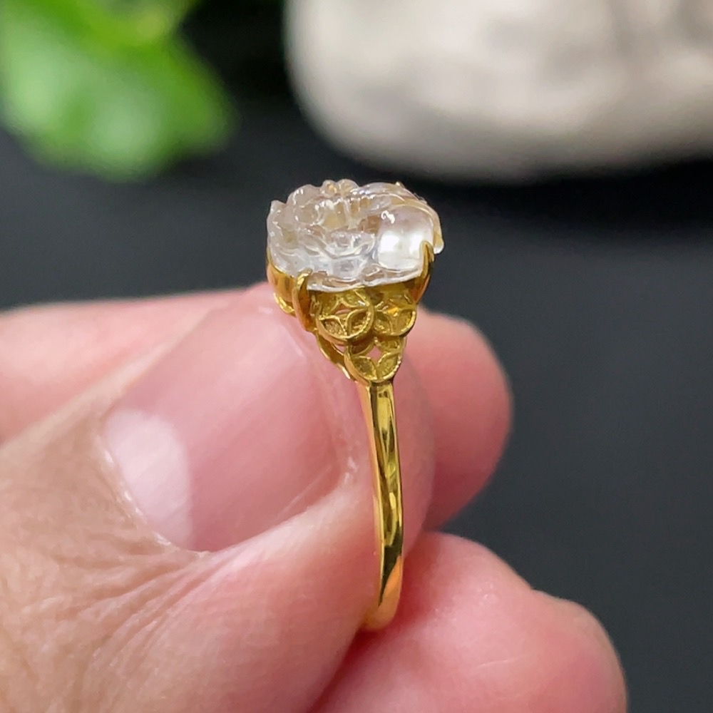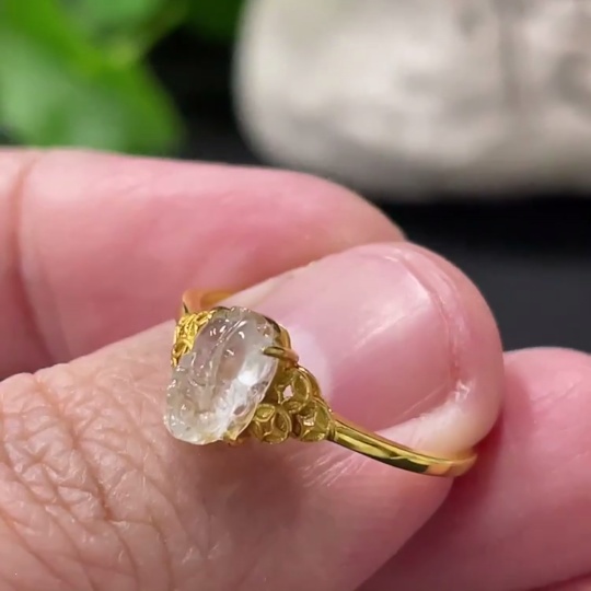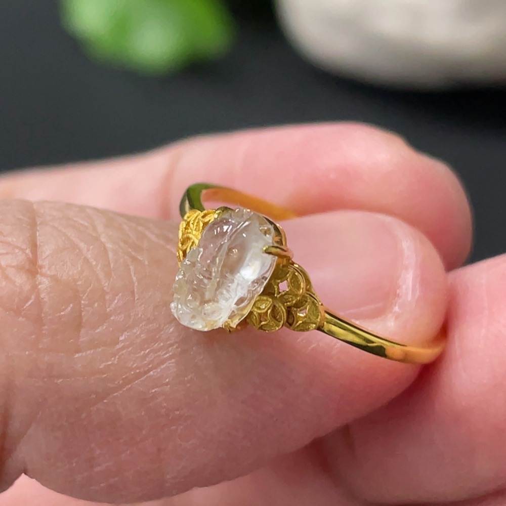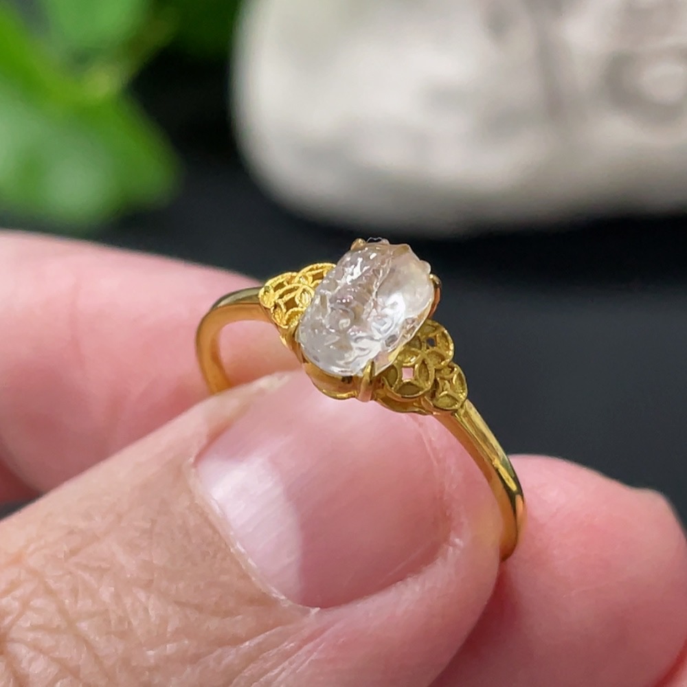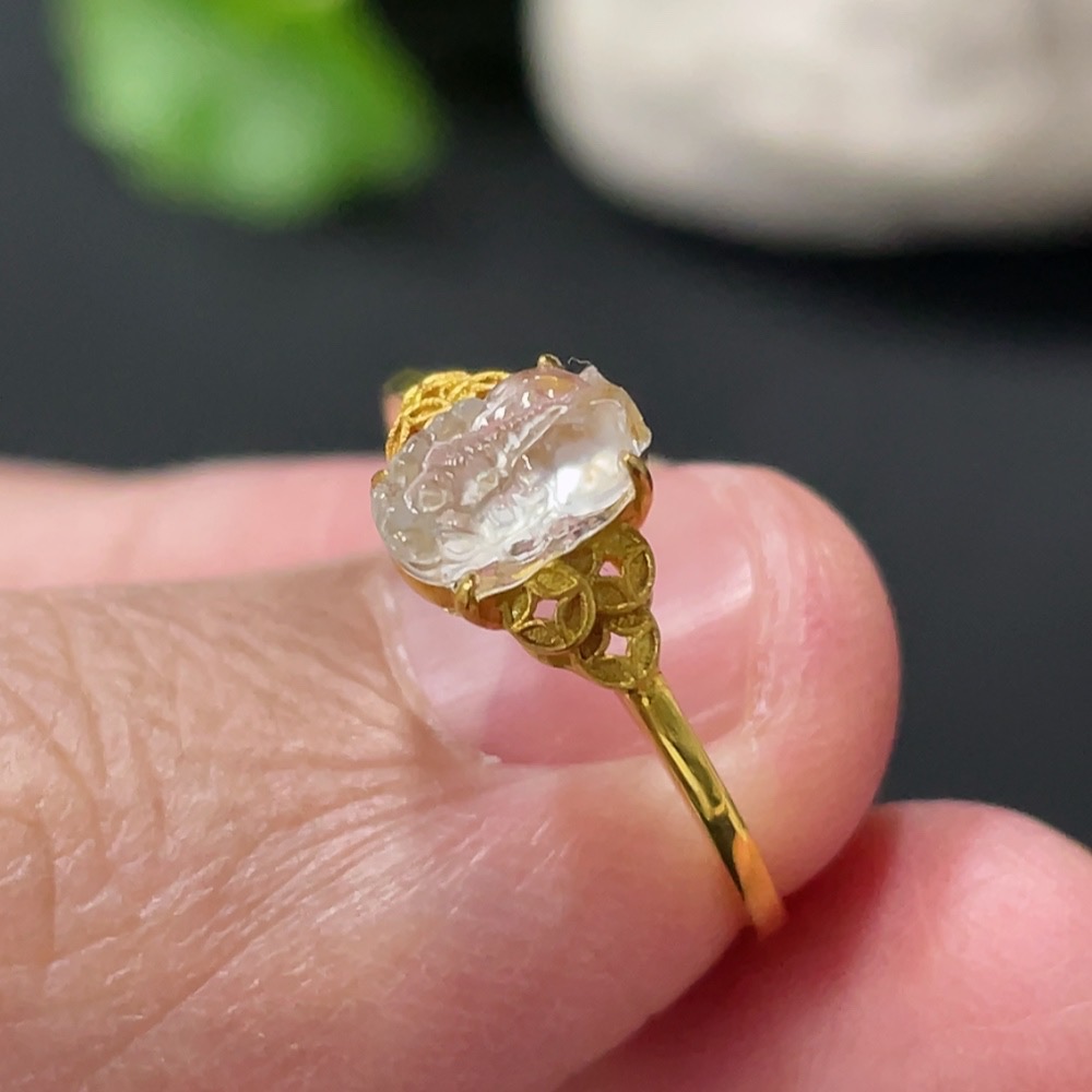Jadeite Pixiu Inlaid Ring 18k Gold Setting Size 14 Total Weight Approx. 1.3g