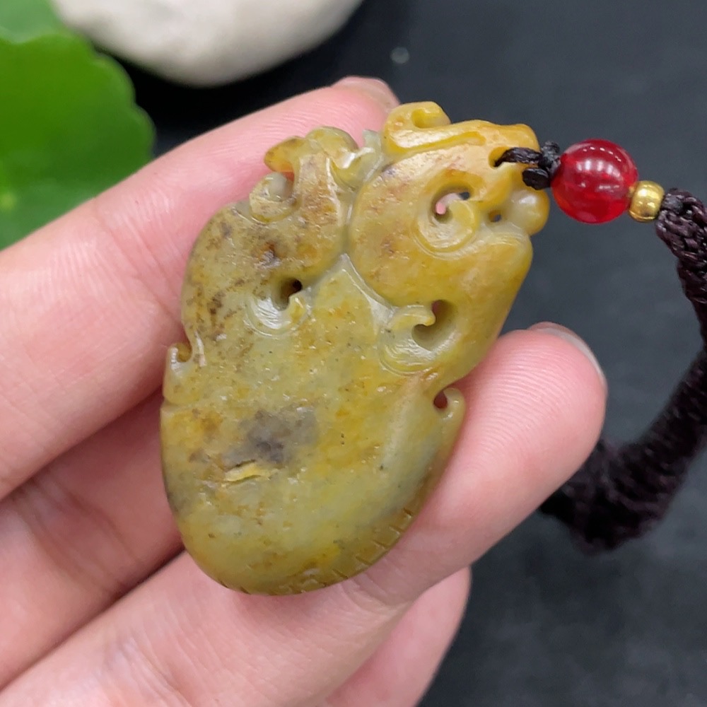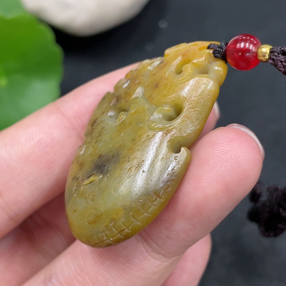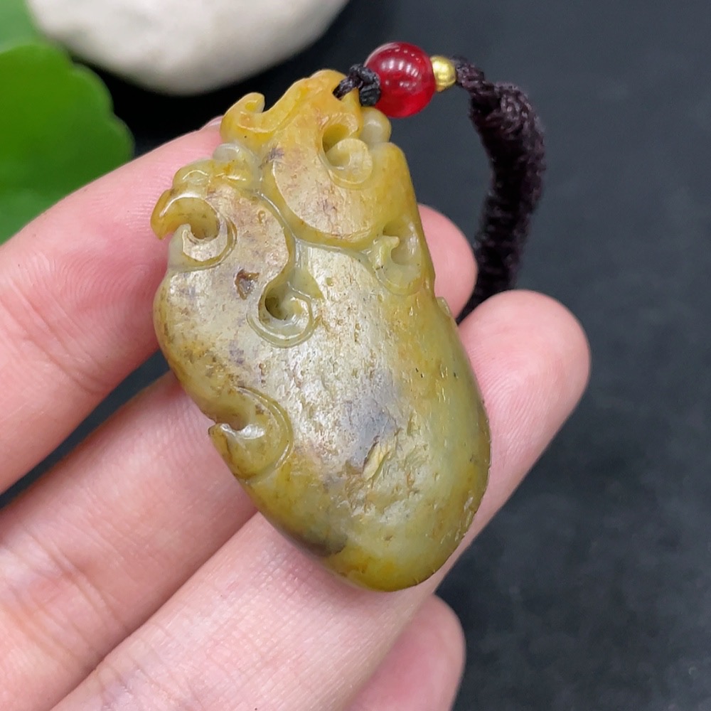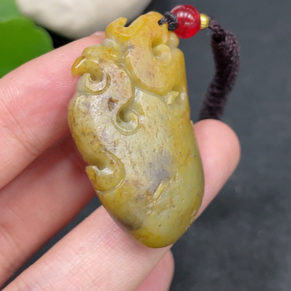 Hetian Jade Pendant Antique Imitation Undetermined Skin Color Origin Total Weight Approx. (including rope) 15.3g