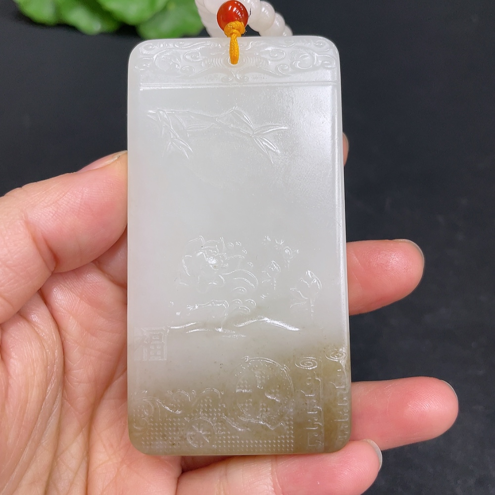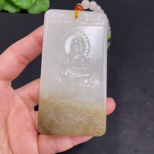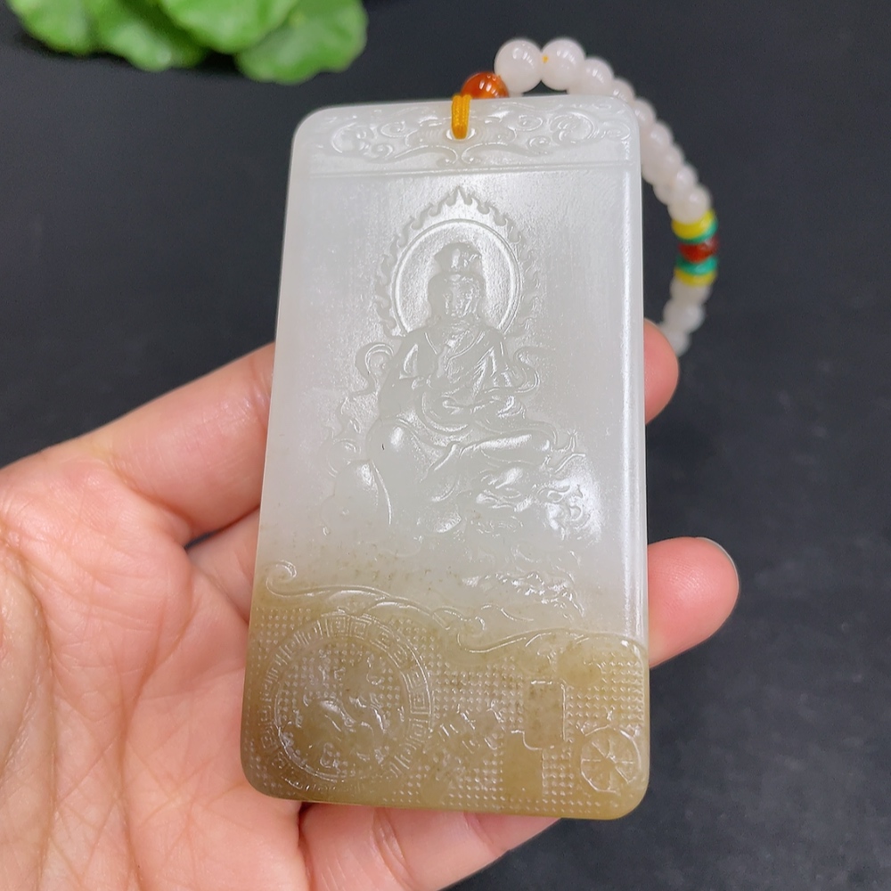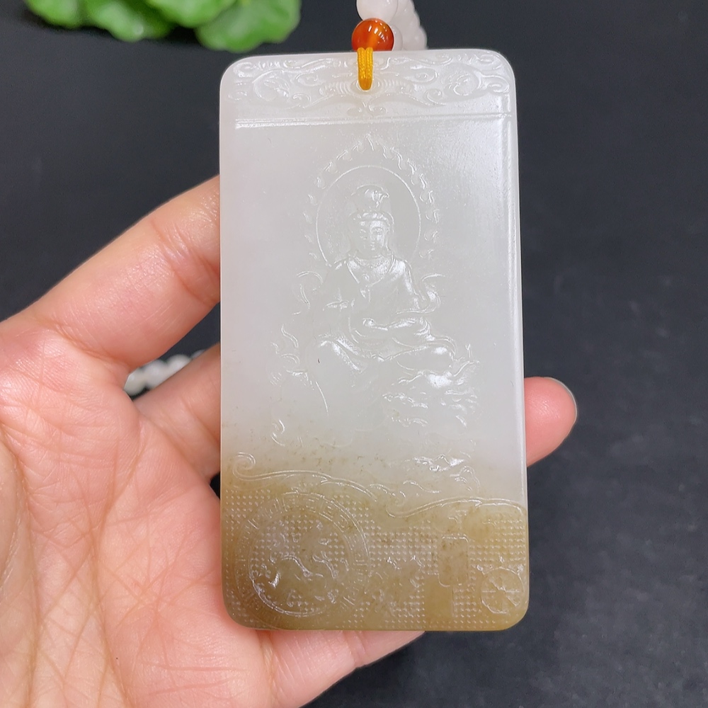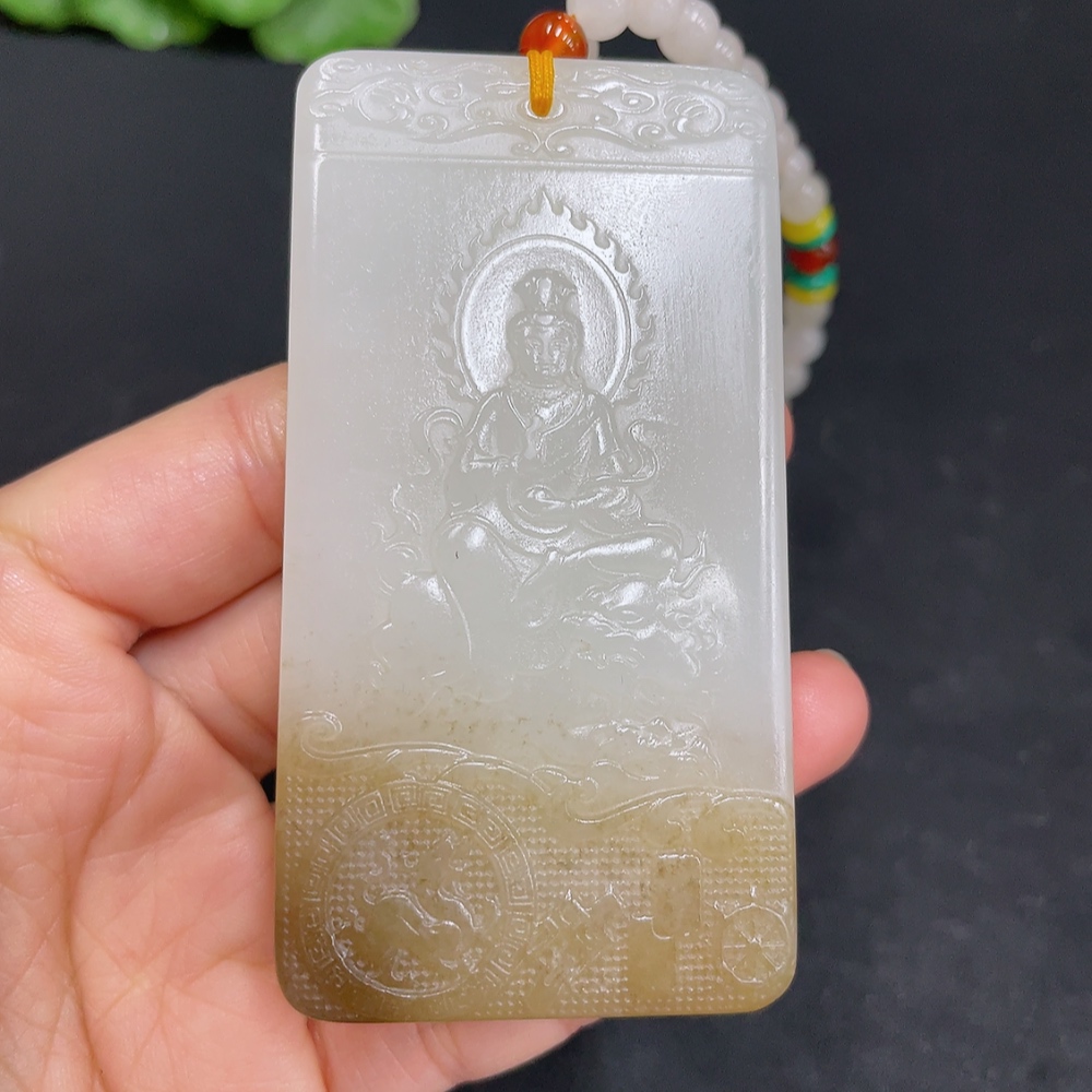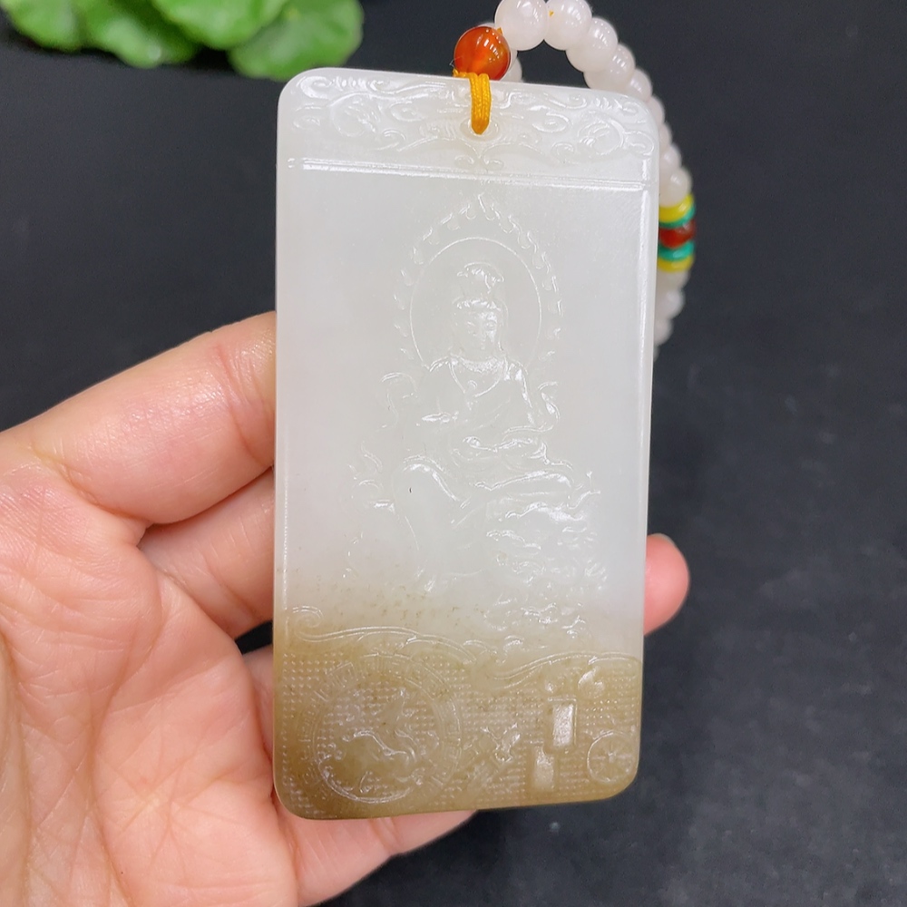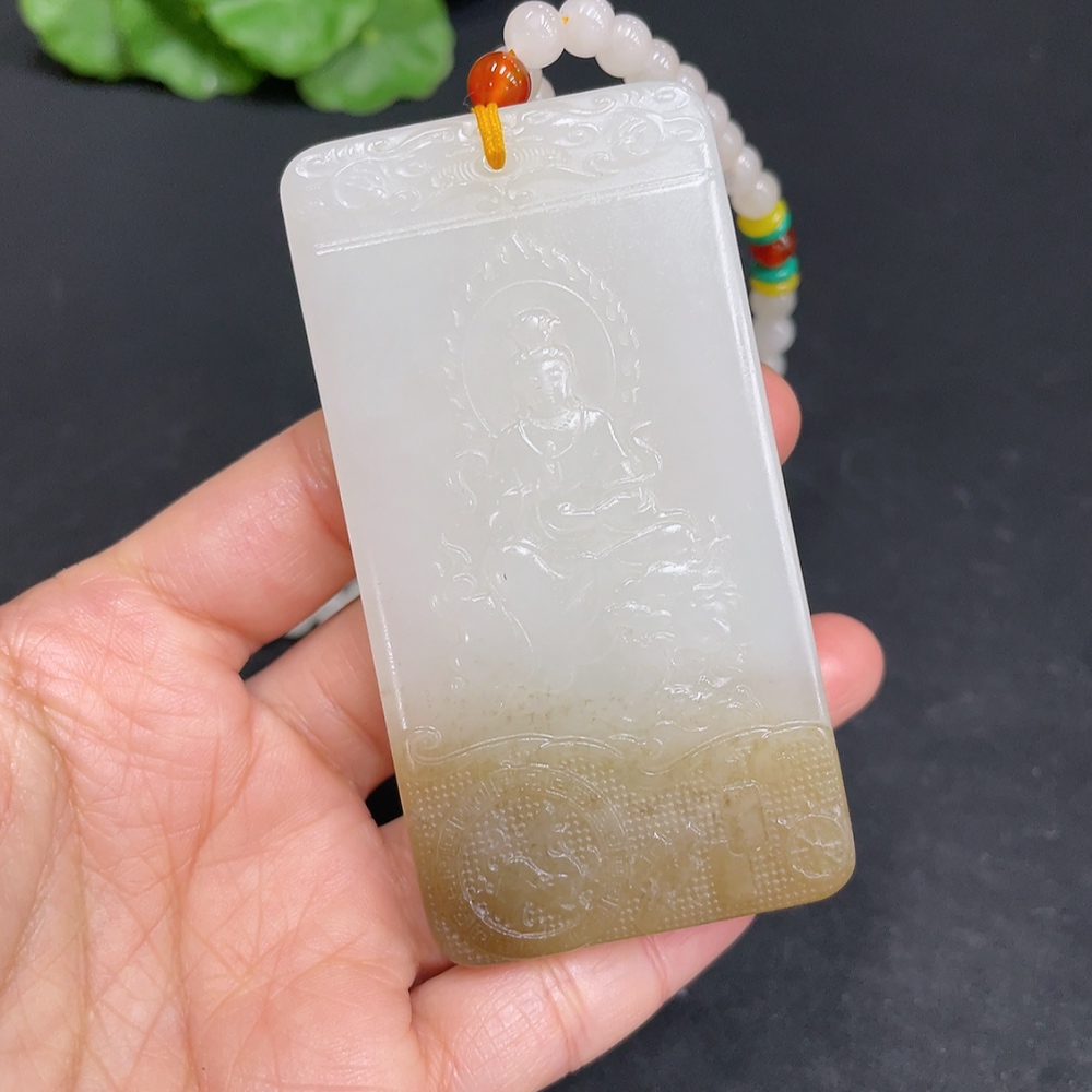 Hetian Jade Pendant Guanyin Total Weight (including chain) 122.7g with non-Hetian Jade beads