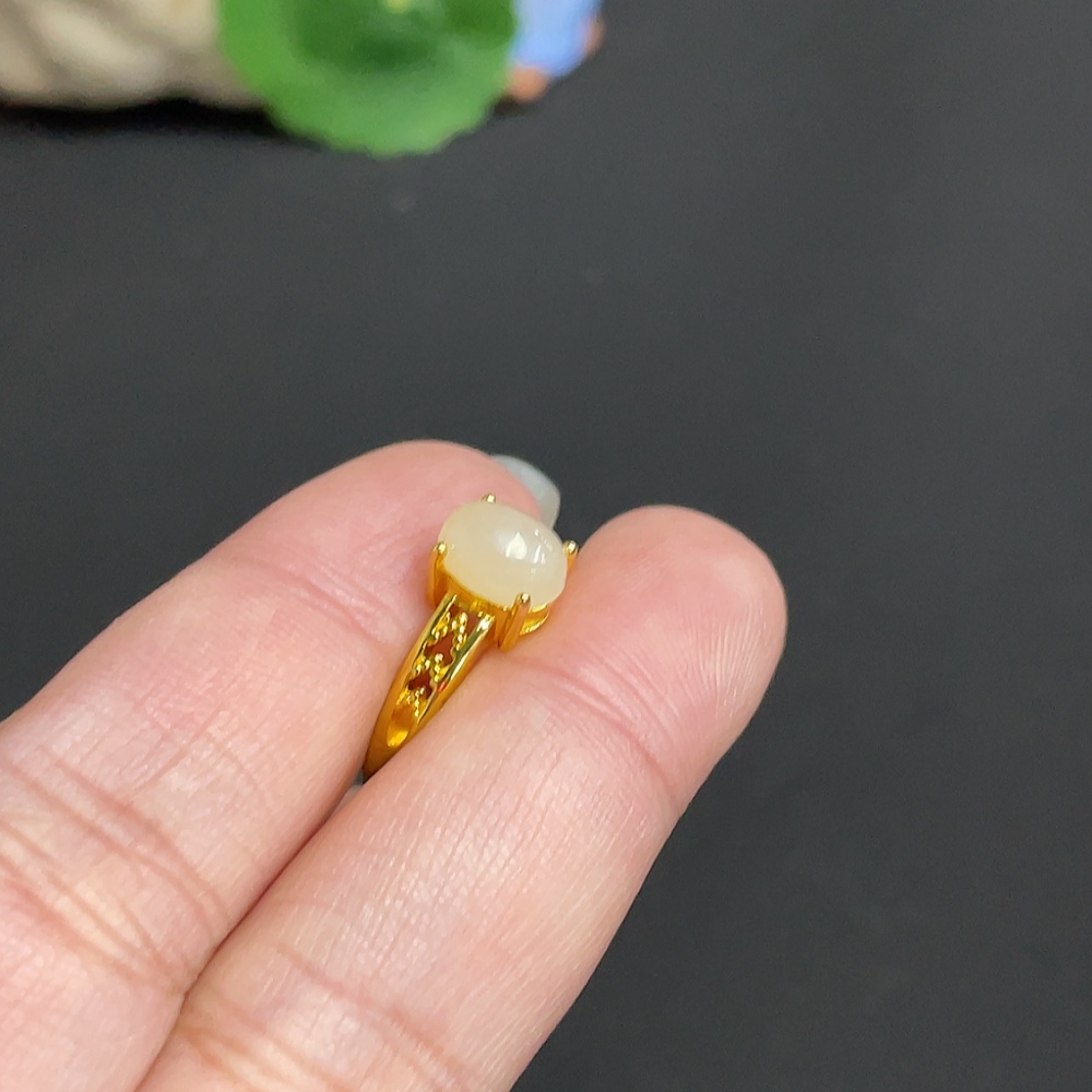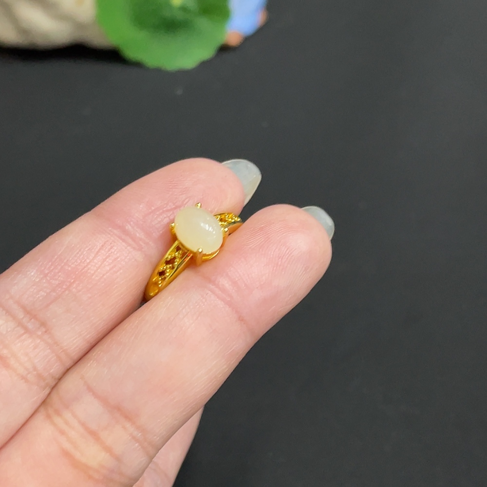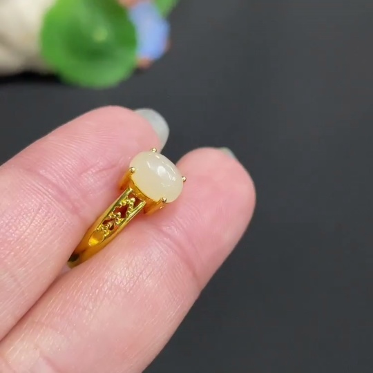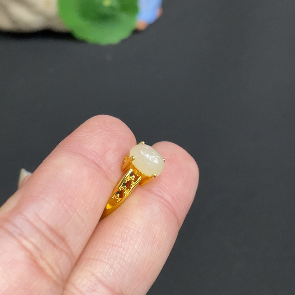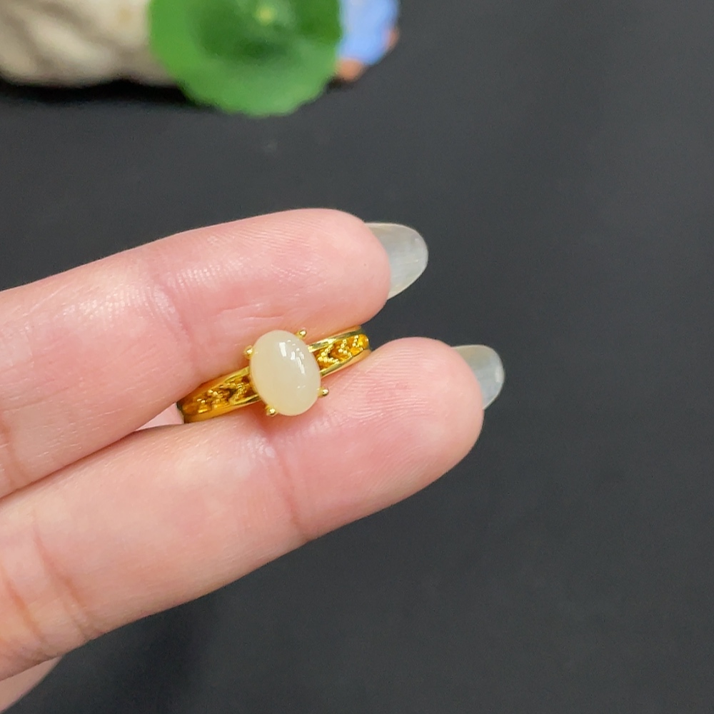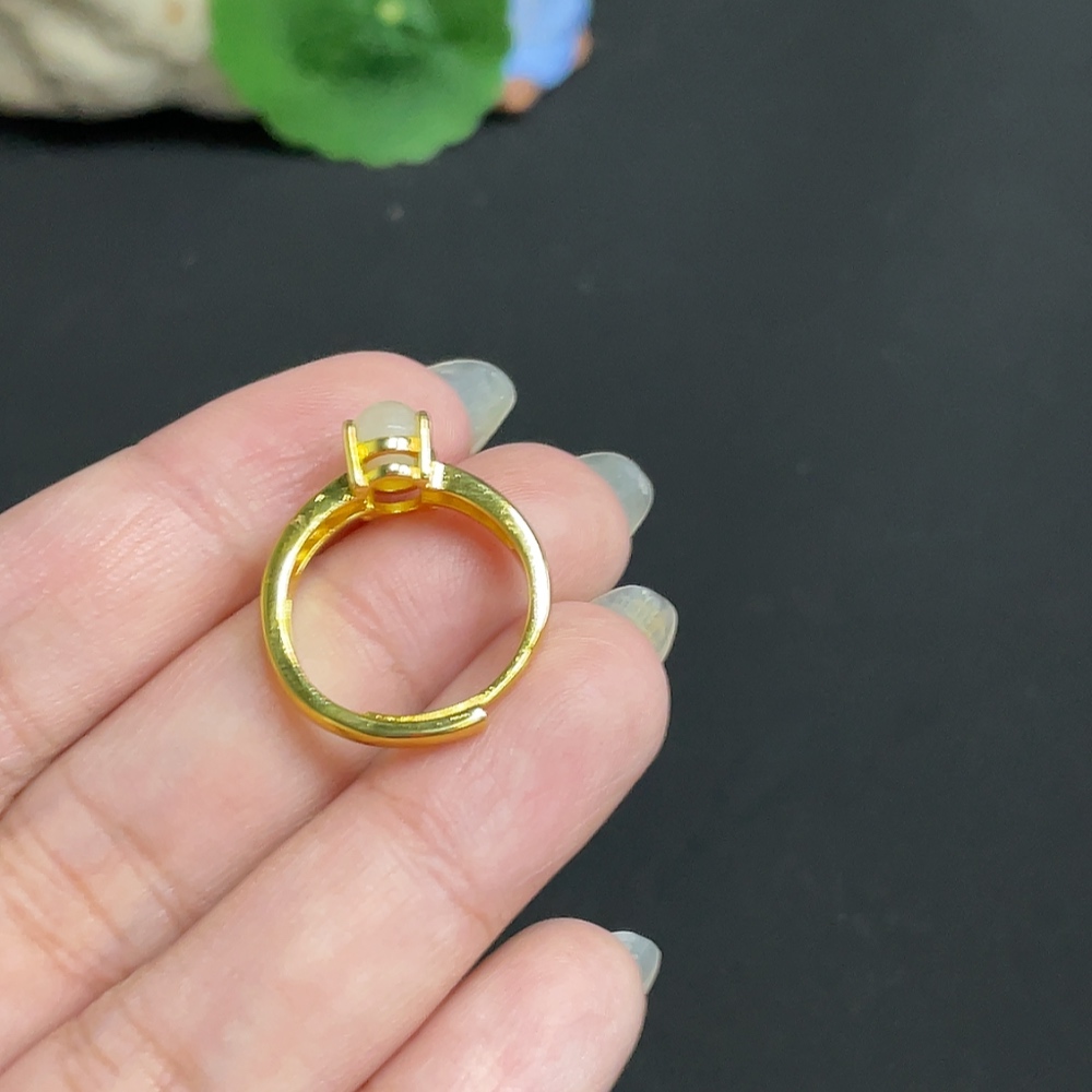 Hetian Jade inlaid adjustable ring, total weight about 2.2g, non-gold