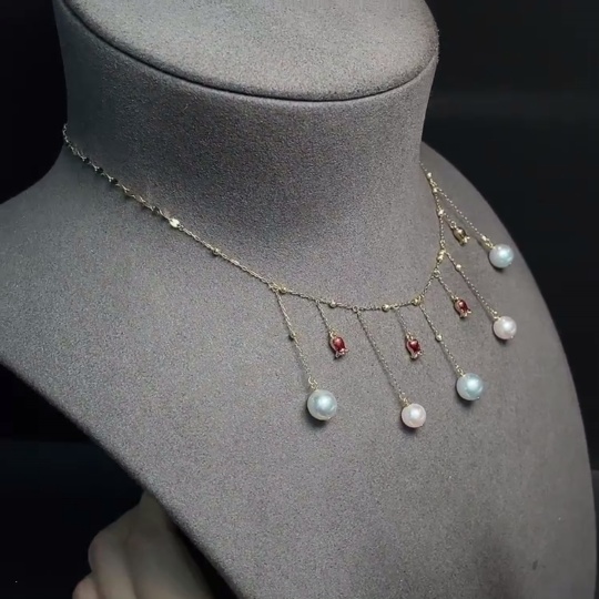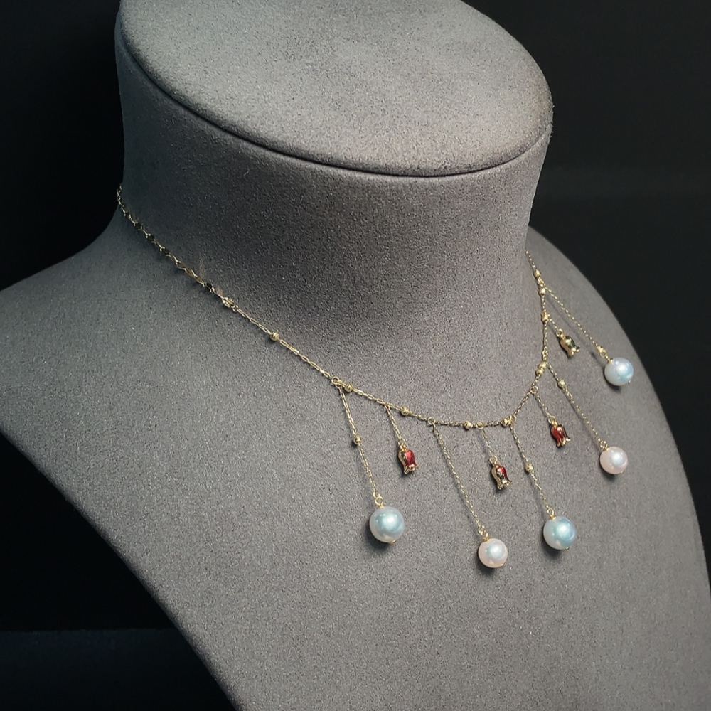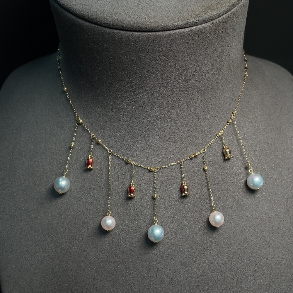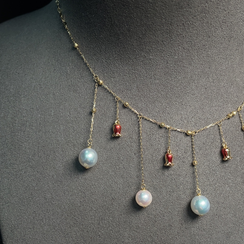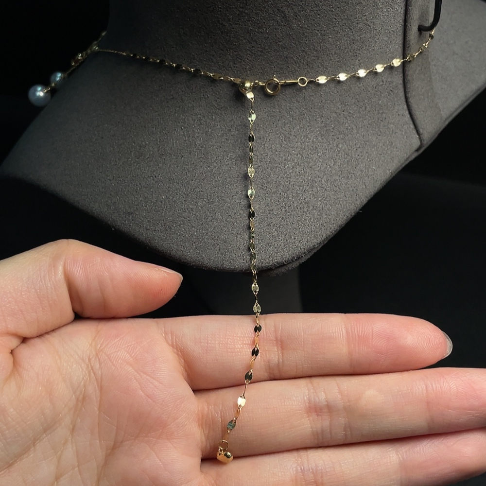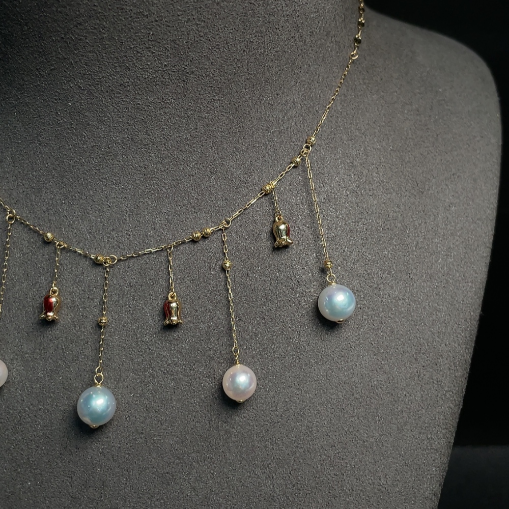 Seawater Pearl Necklace Suspected Gold-Plated in Marked Red Areas, 18K in Others, Total Weight Approx. 4.86g, Size About 7.4mm
