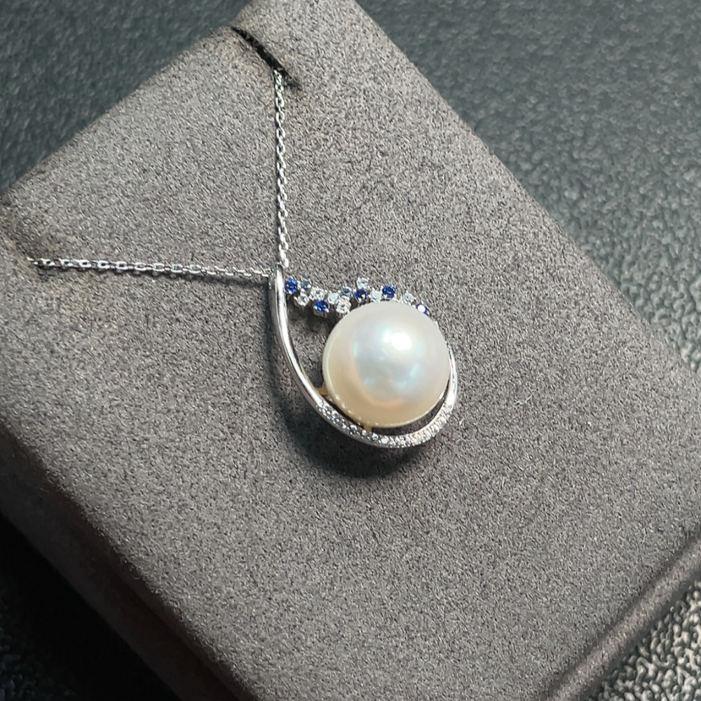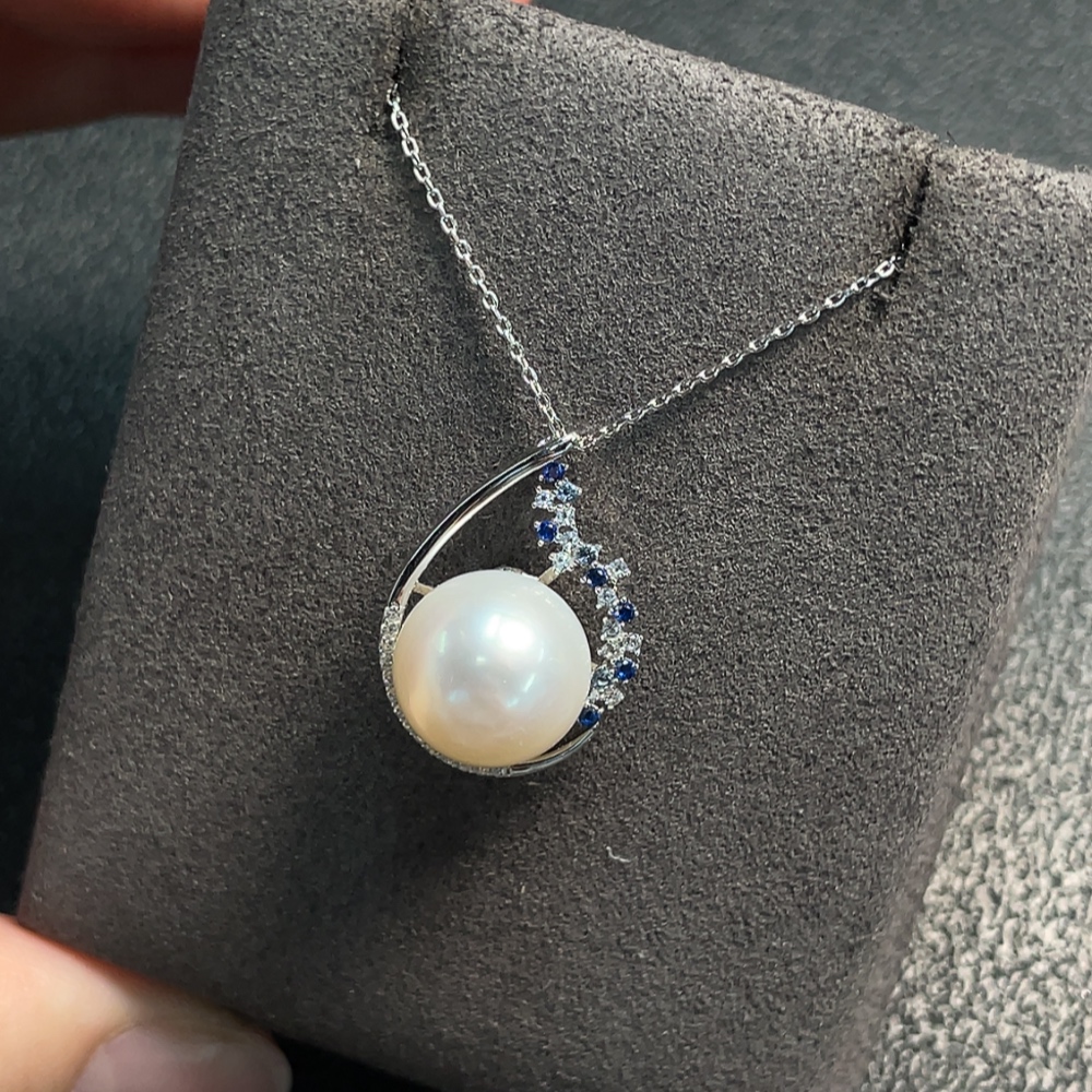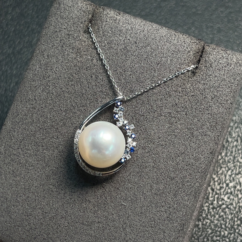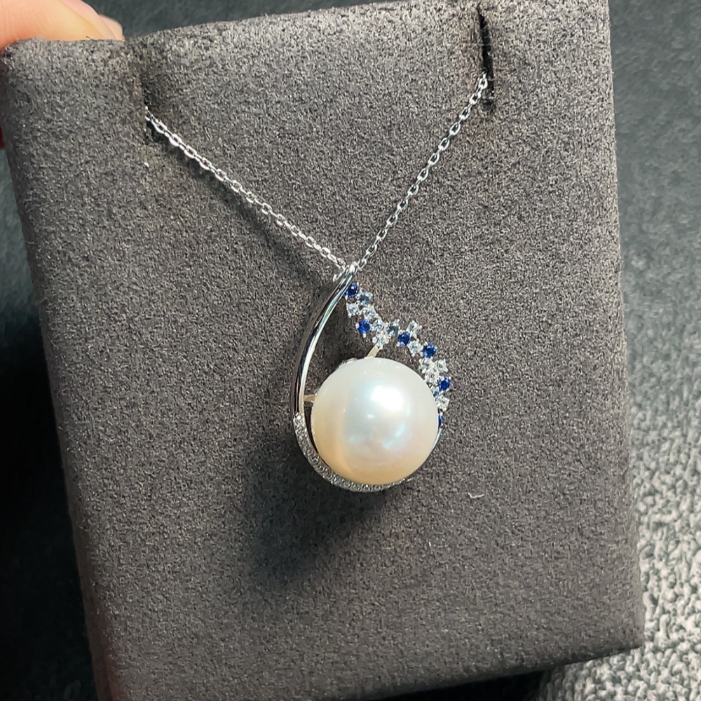 Seawater Pearl Necklace with Non-Natural Gemstones, Non-Gold, Total Weight Approx. 4.41g, Size About 11.7mm