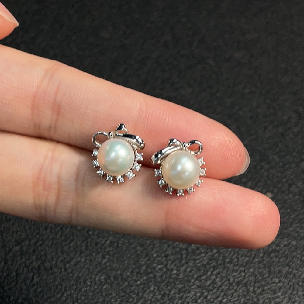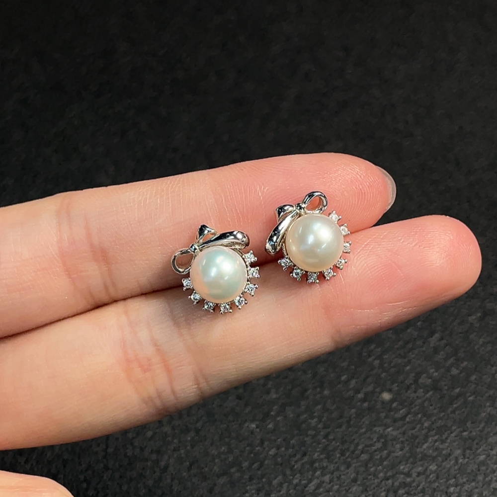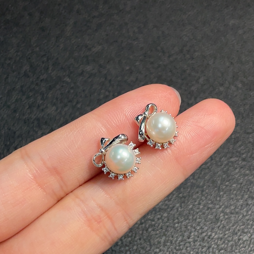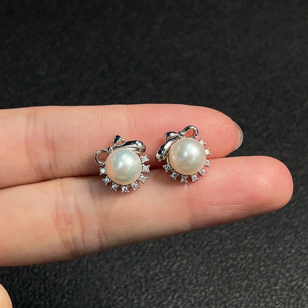 Pearl Earrings Non-Gold Stones May Be Non-Natural Total Weight Approx. 2.87g Size About 7.4mm