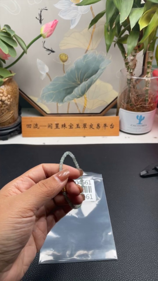 Jadeite Bracelet Approx. 4mm Beads Non-Gold Total Weight Approx. 5.52g