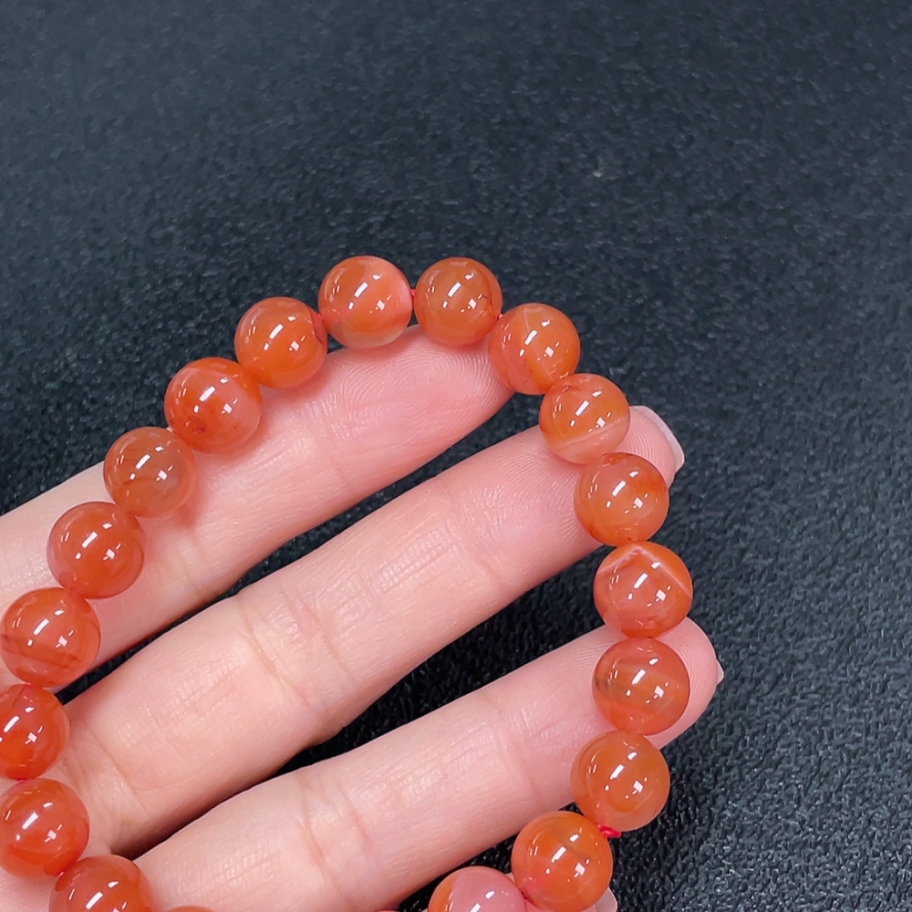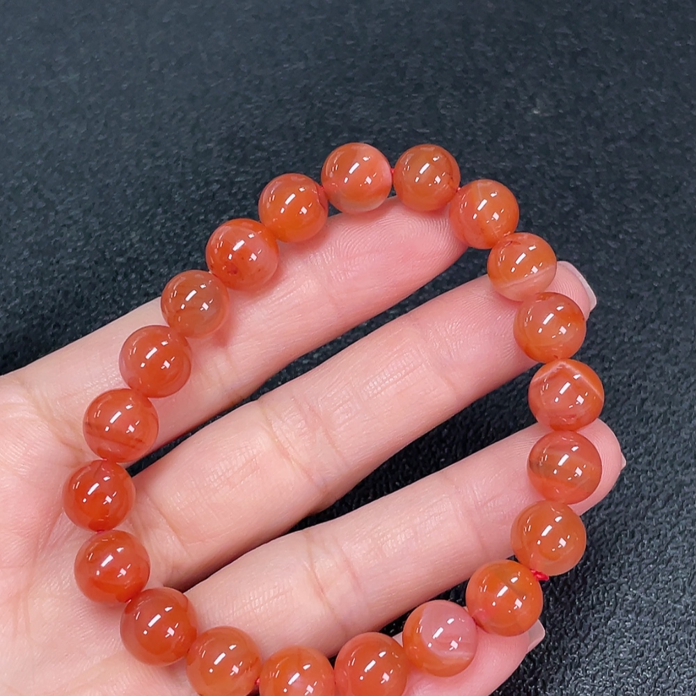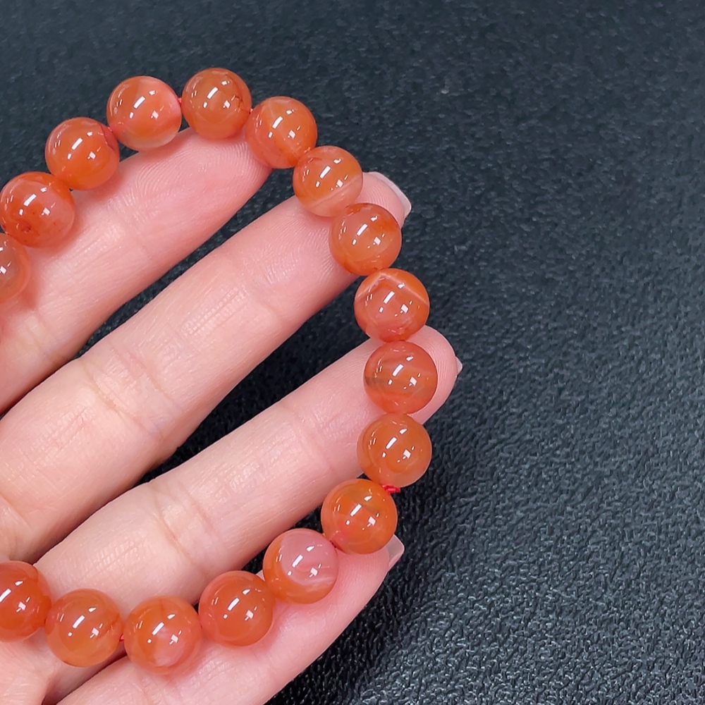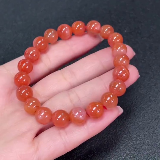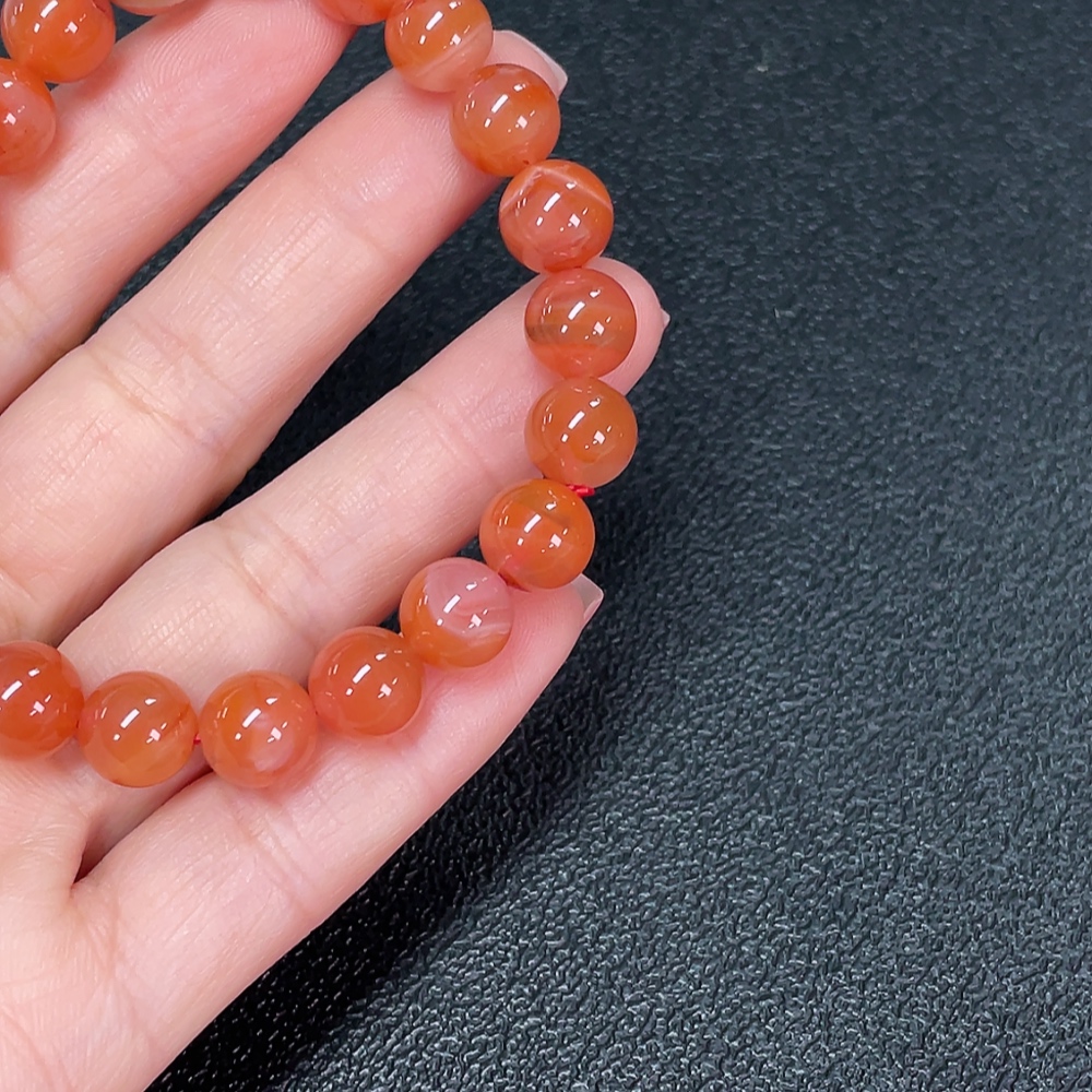 Red Agate Bracelet with Visible Organic Matter, Total Weight Approximately 22.46g, Bead Size About 9.3mm
