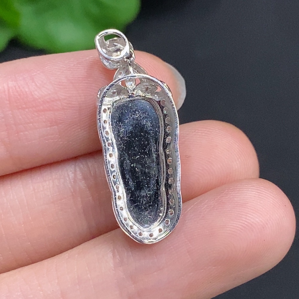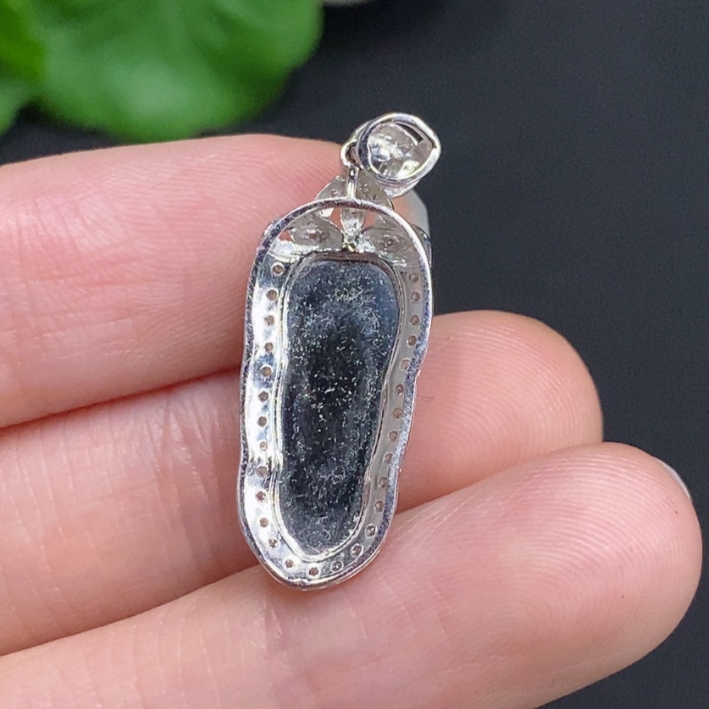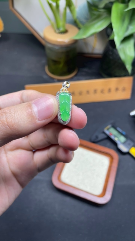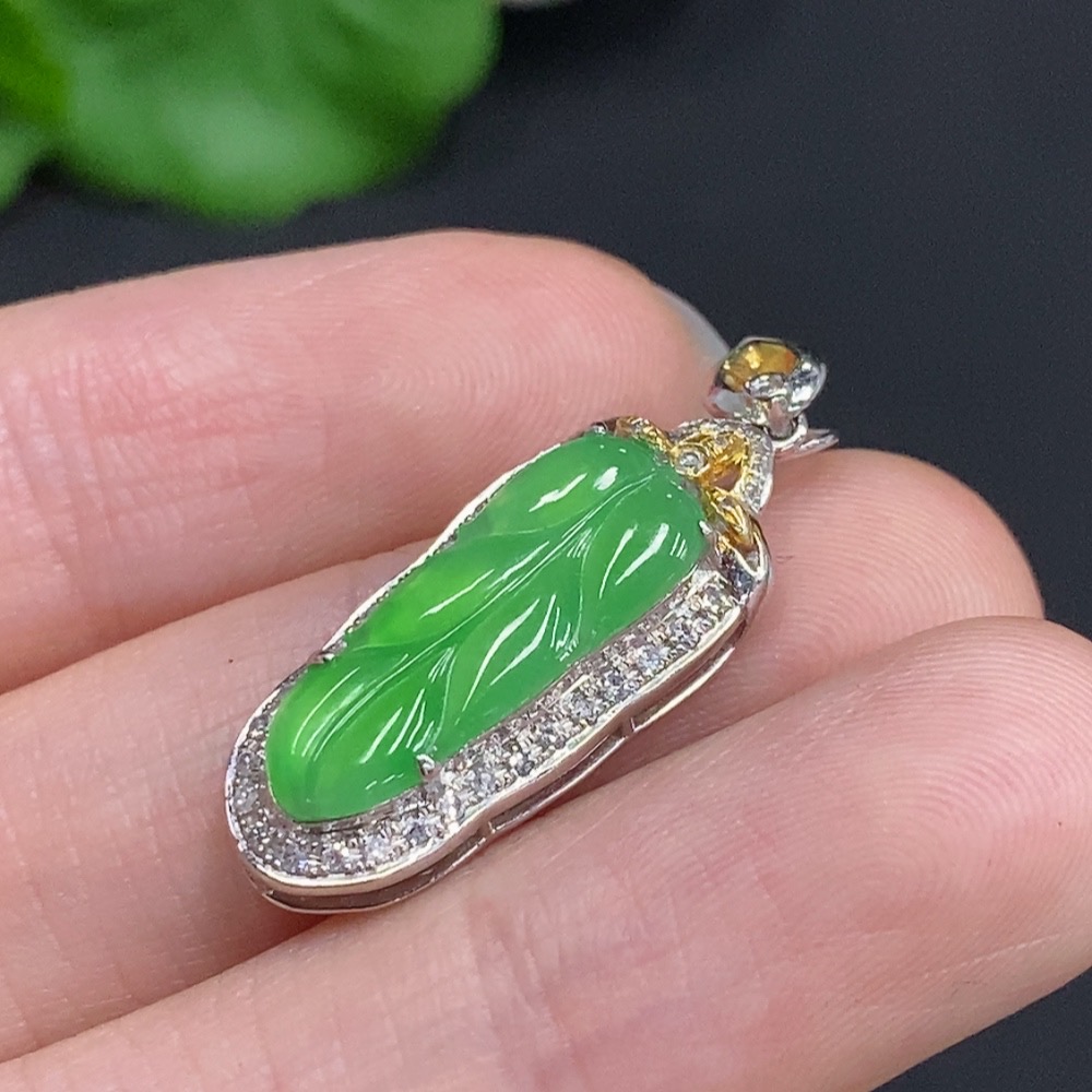 Jadeite Leaf Inlaid Pendant 18K Gold with Diamond Accents Total Weight Approx. 2.37g