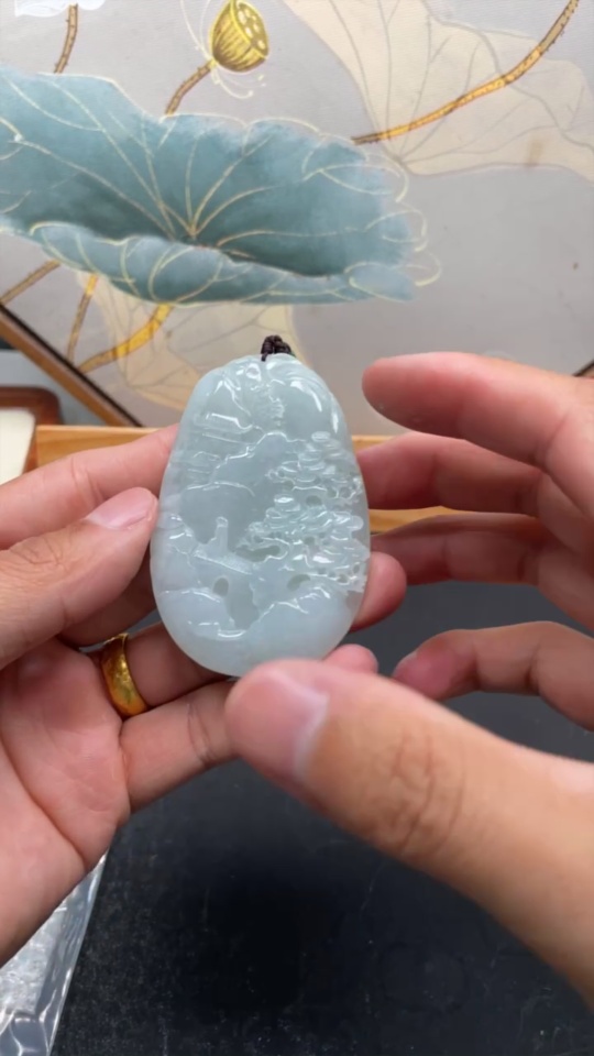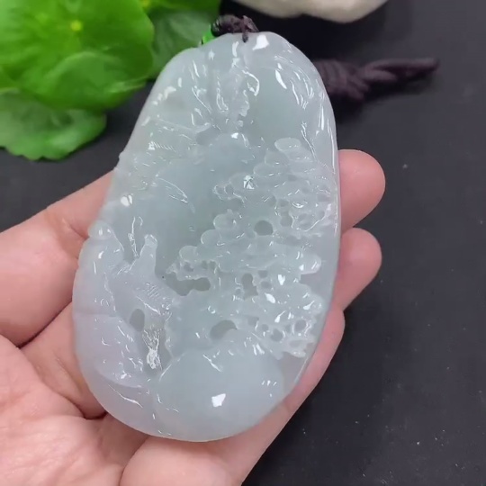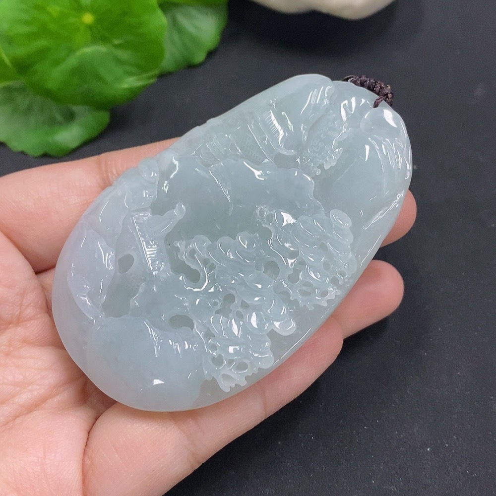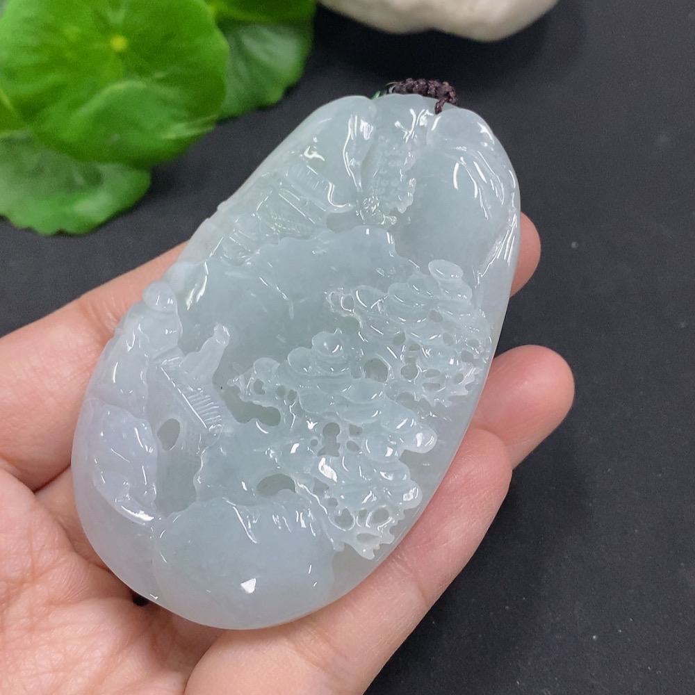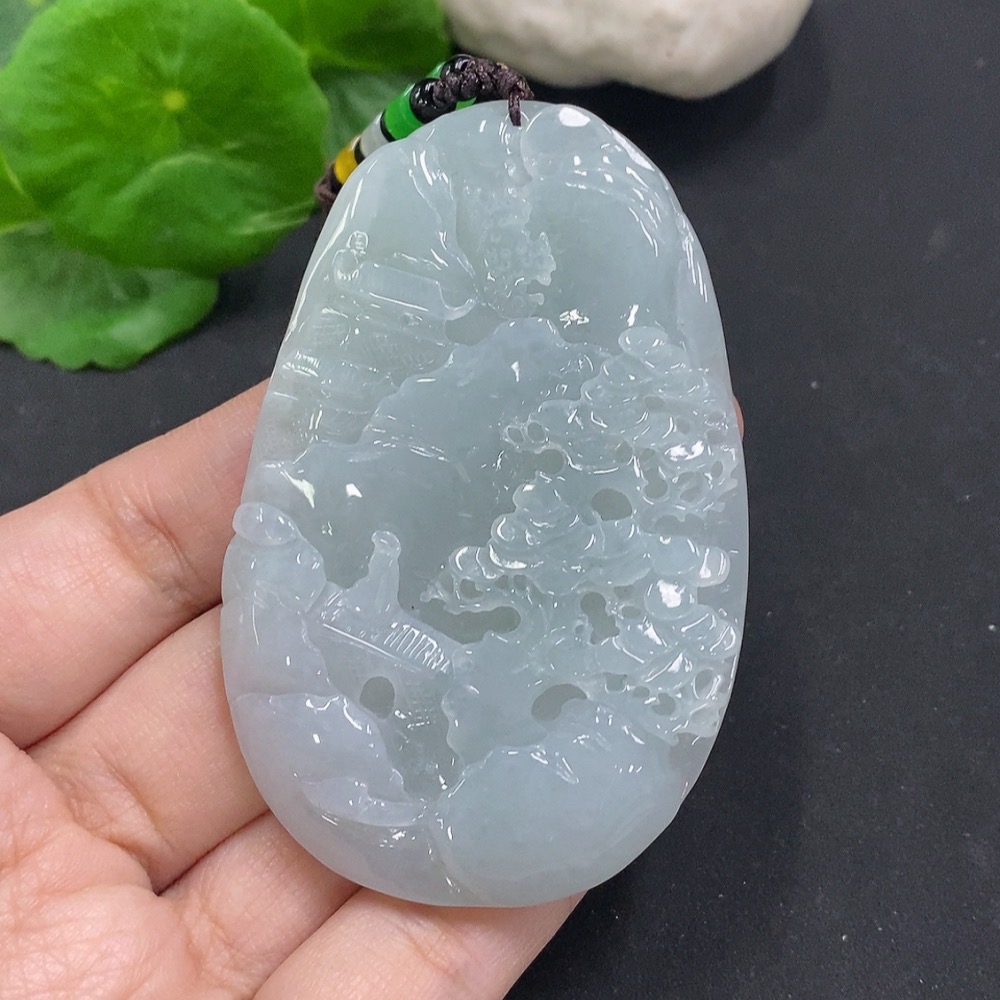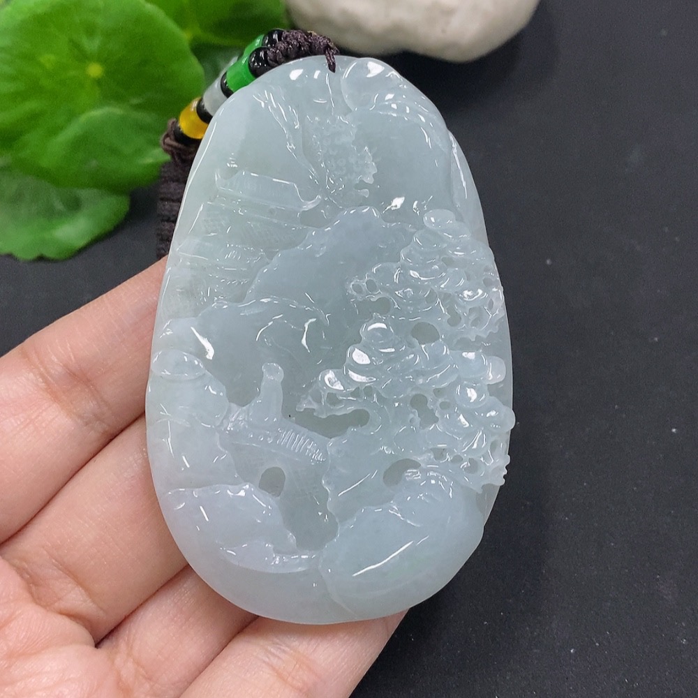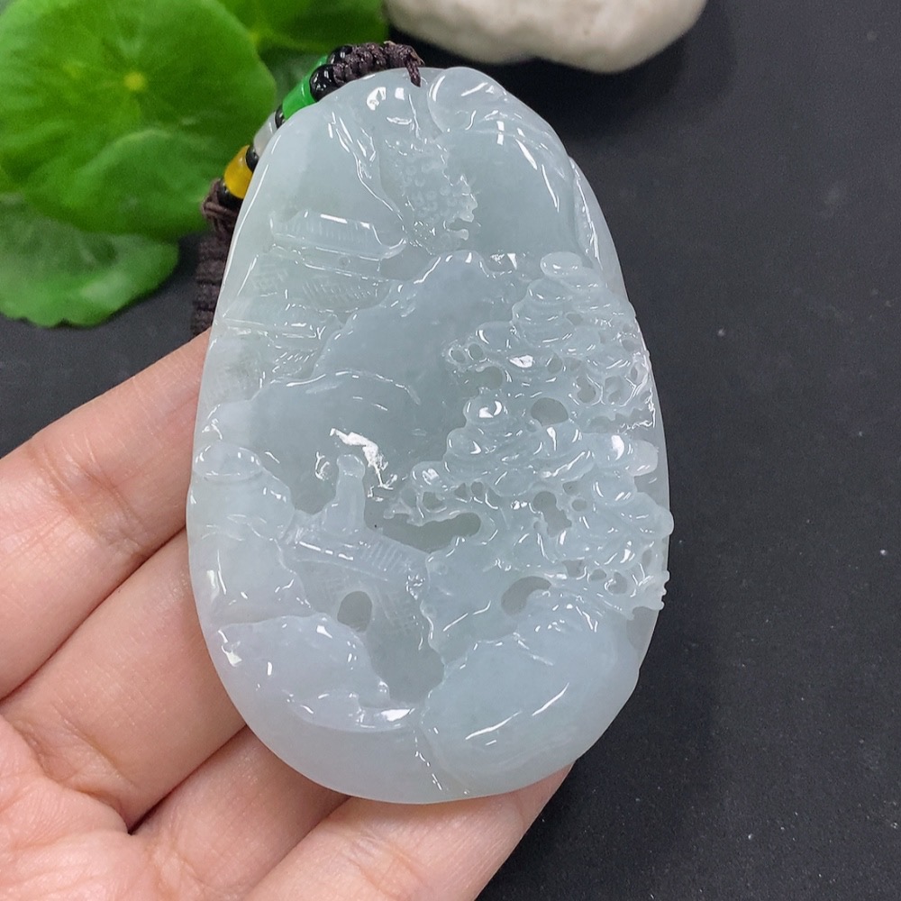 Jadeite Landscape Pendant Total Weight Approx. 65.7g (including rope weight) Non-jadeite beads included
