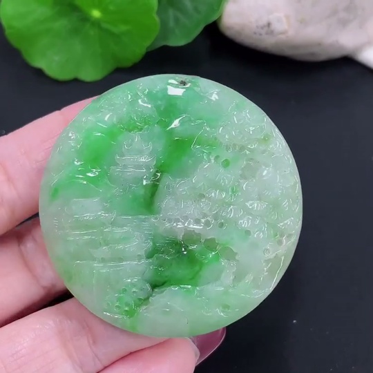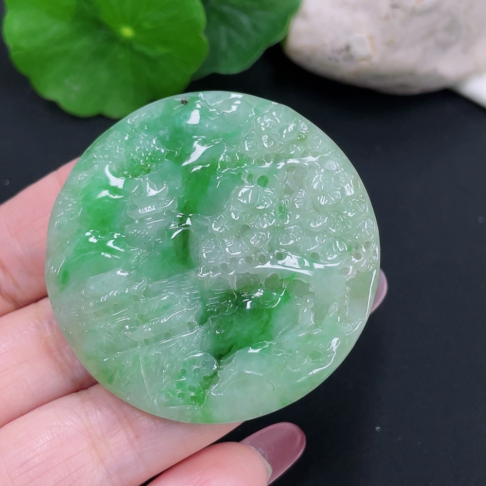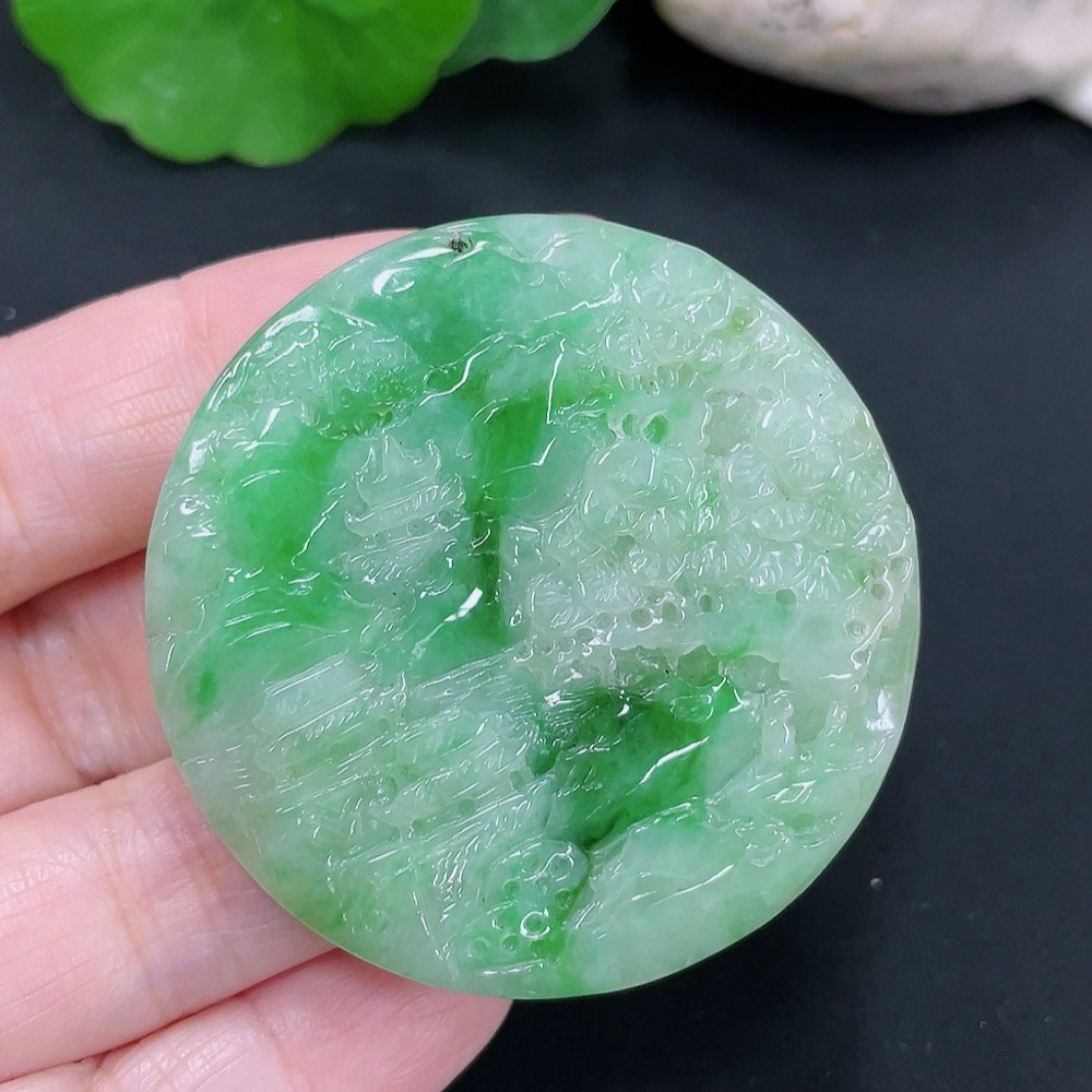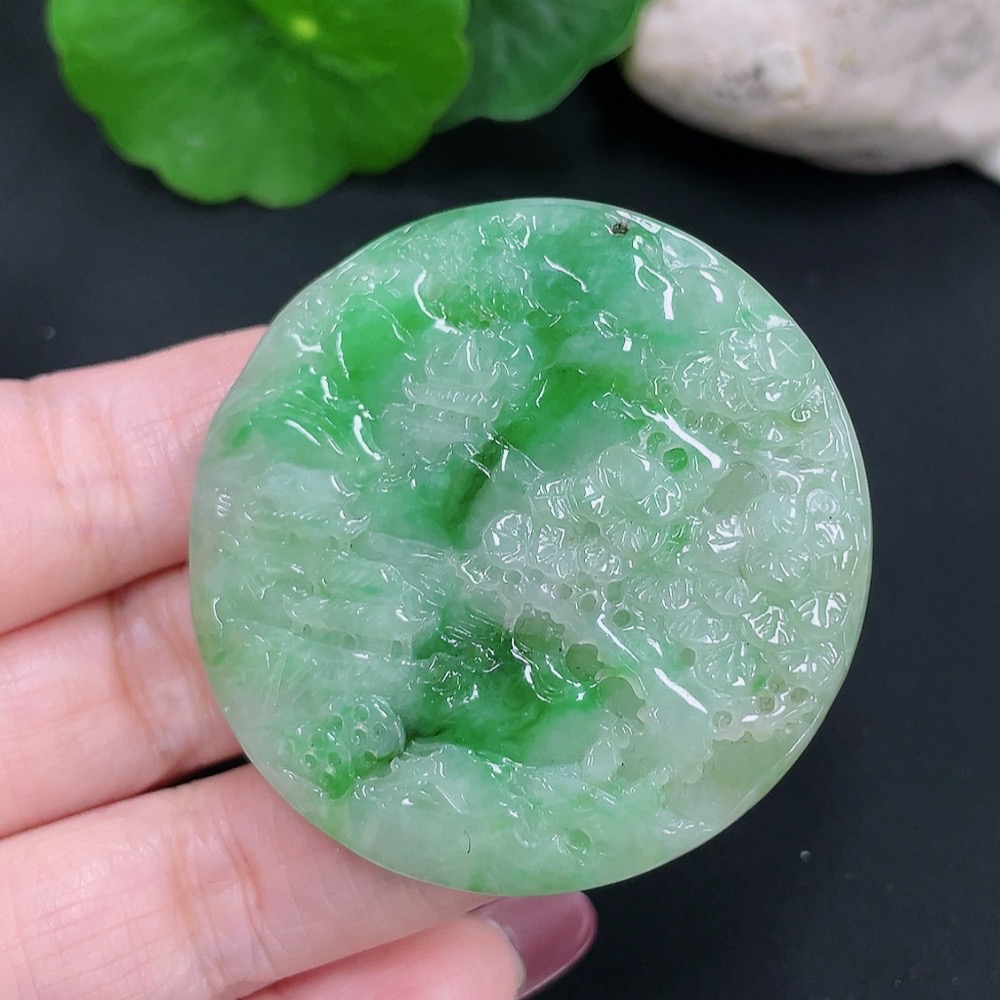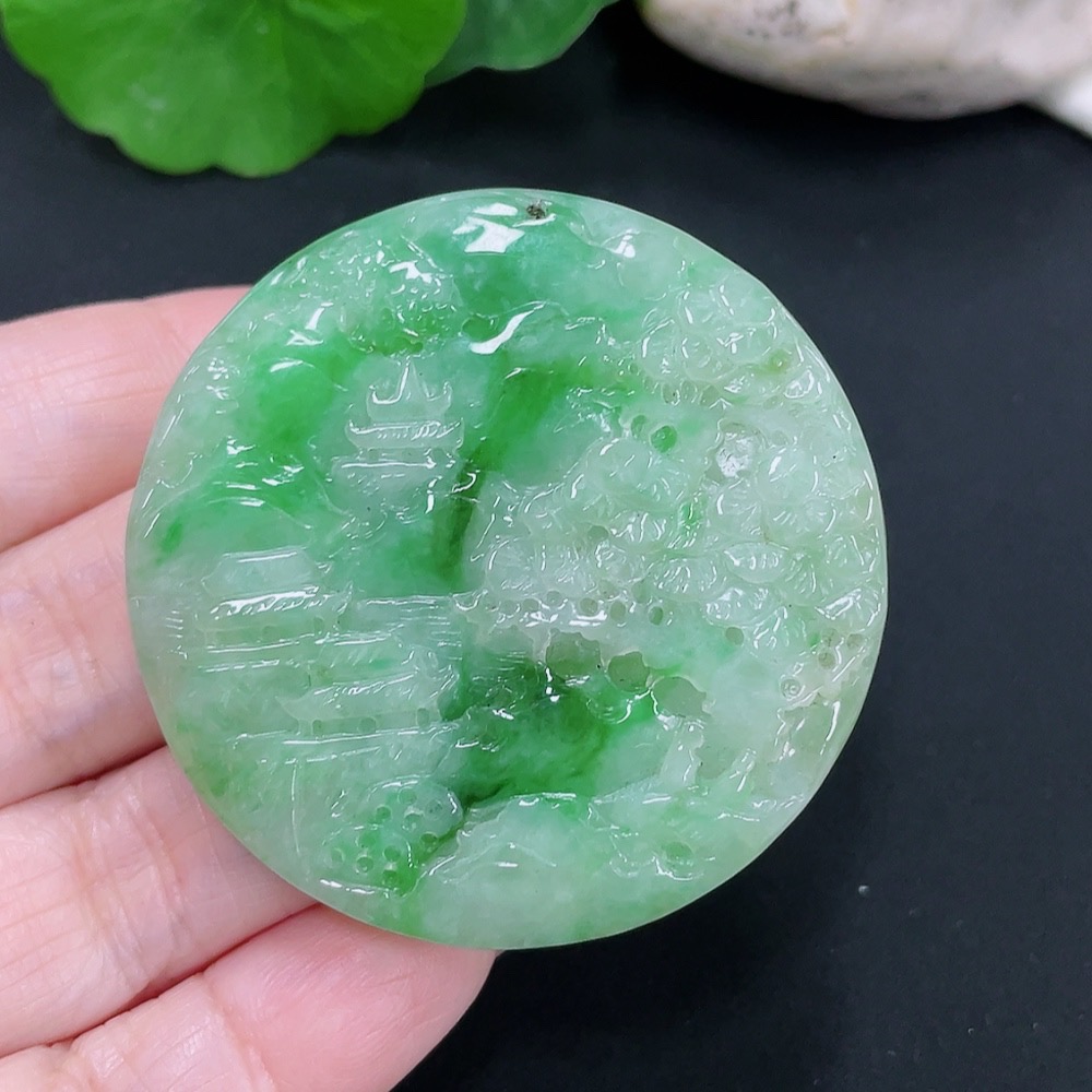 Jadeite landscape plaque pendant with a total weight of approximately 25.7 grams (including other mineral components)