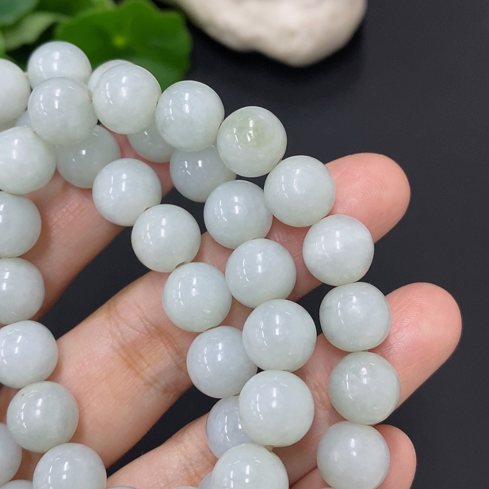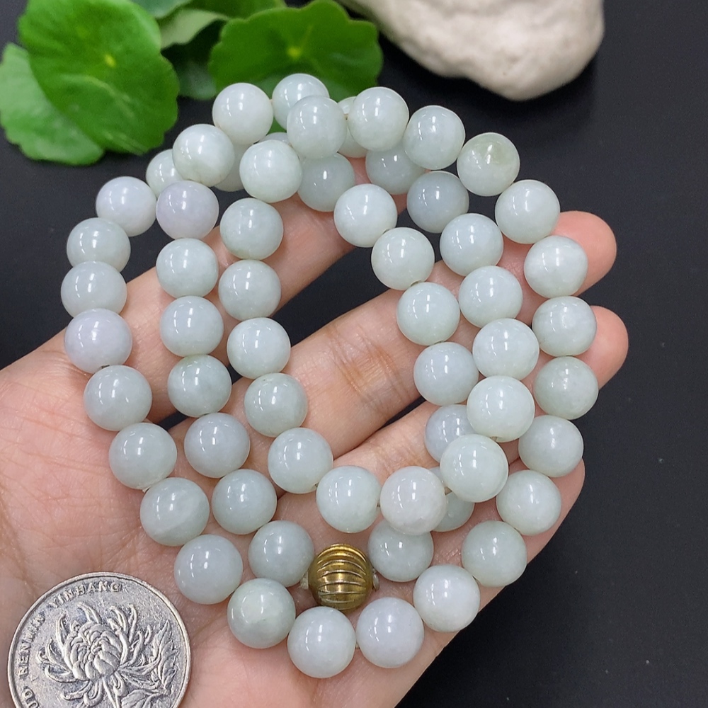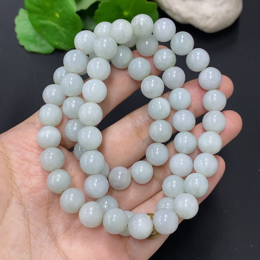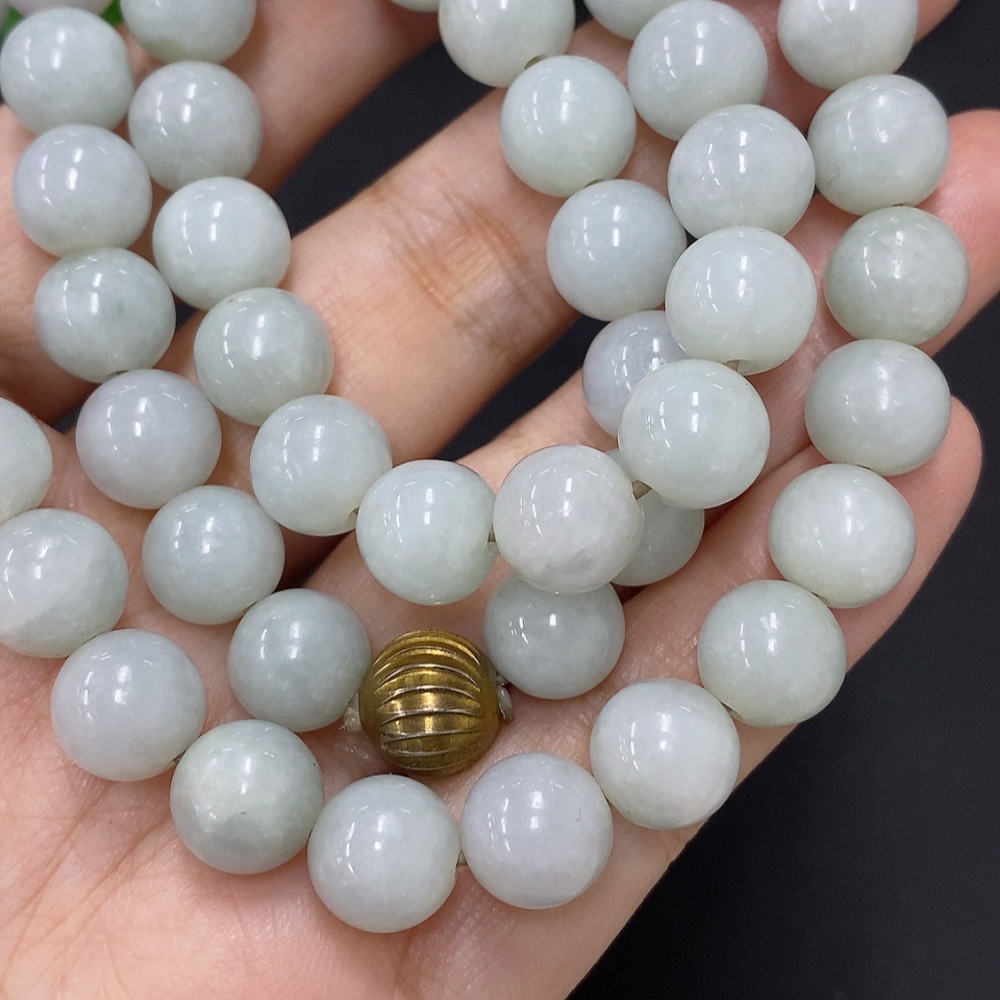 Jadeite Bead Necklace Approx. 9.5mm Non-Gold Total Weight Approx. 93.4g