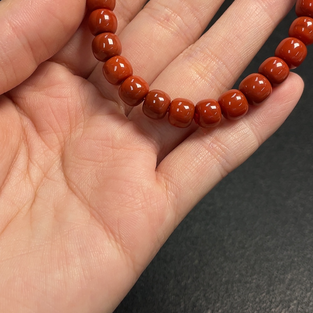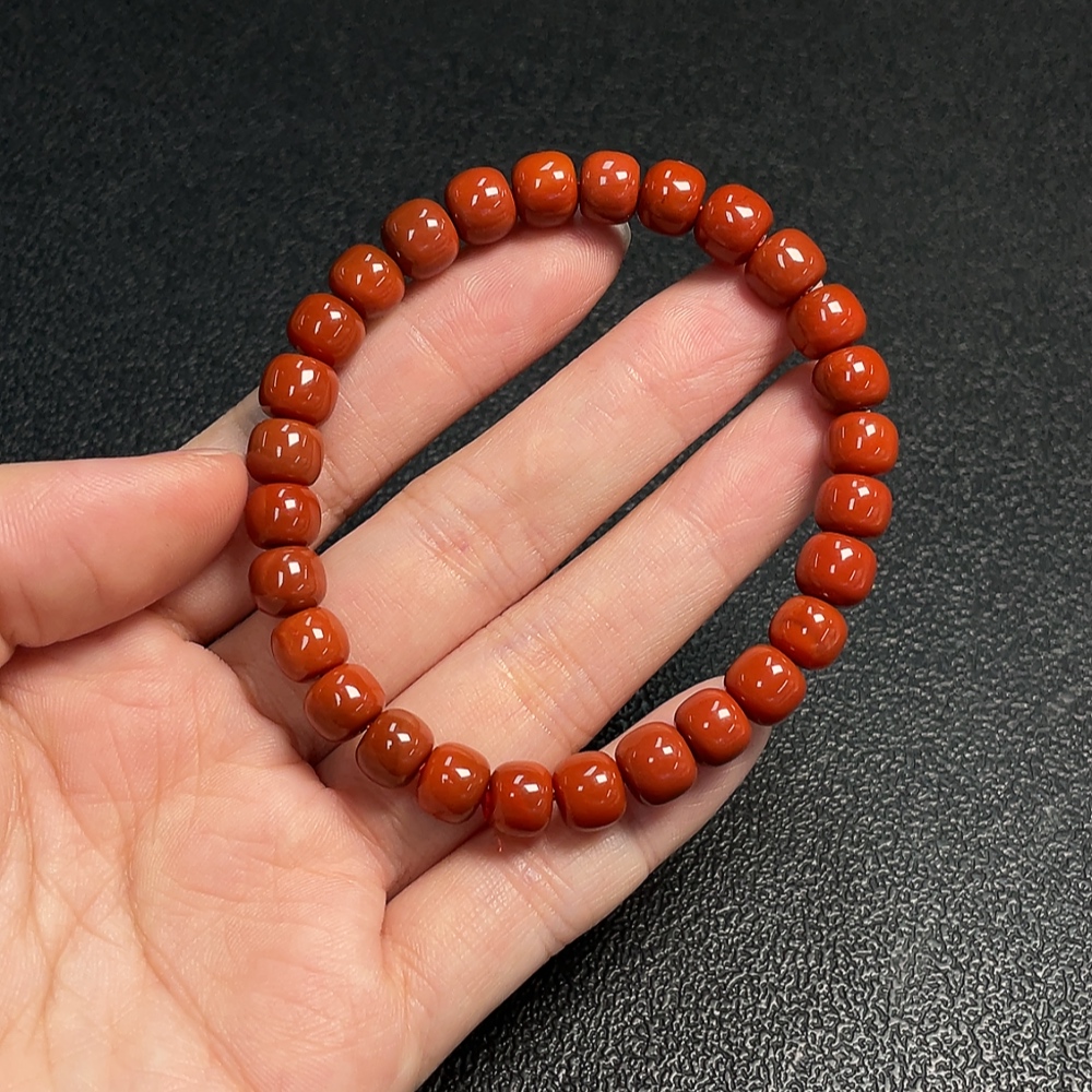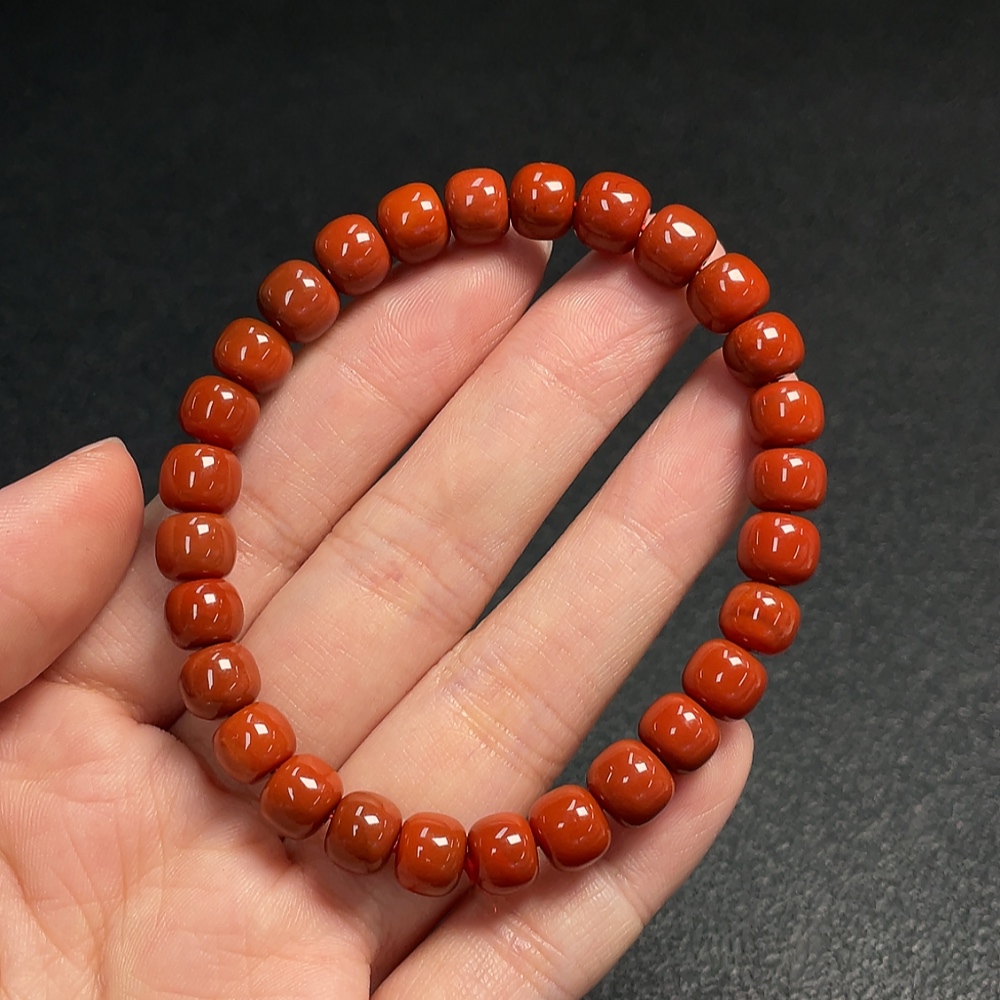 South Red Agate Bracelet with Visible Organic Matter, Total Weight Approx. 17.53g, Size About 7.9mm