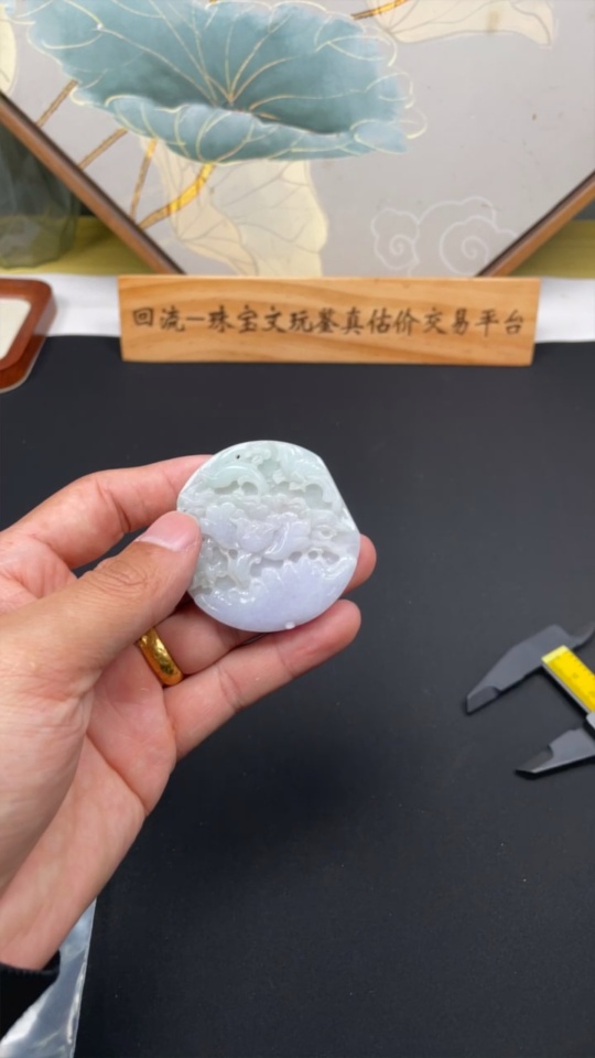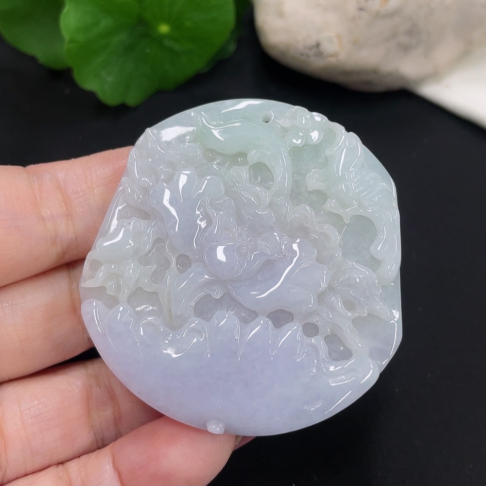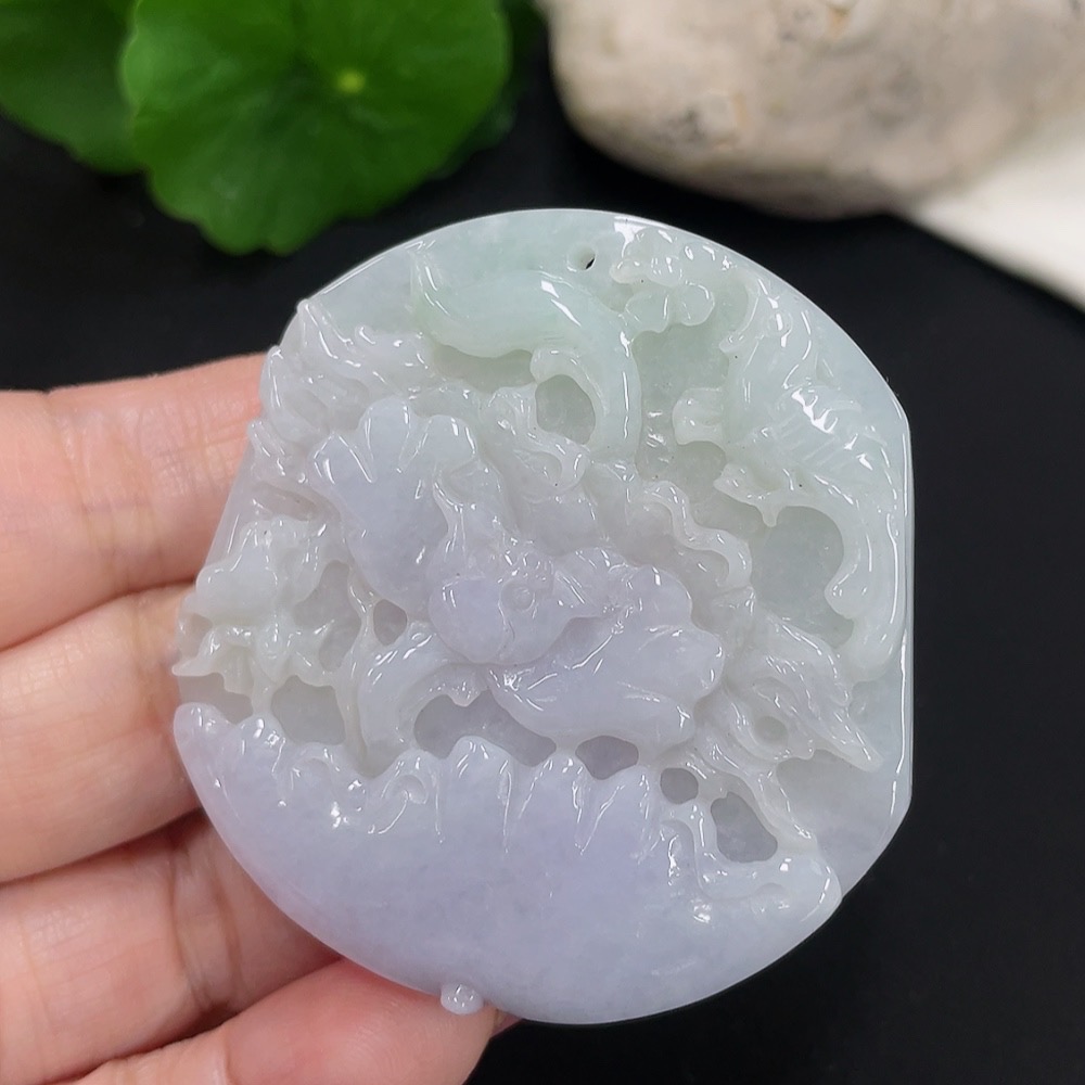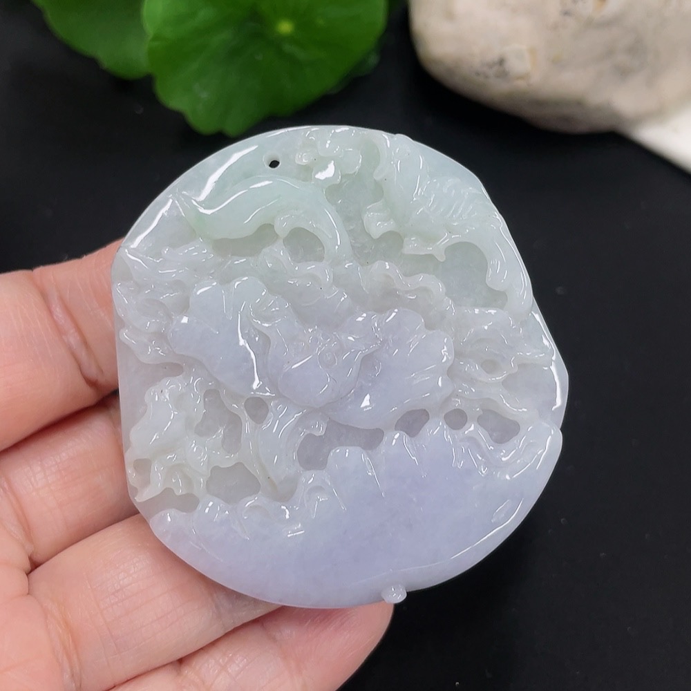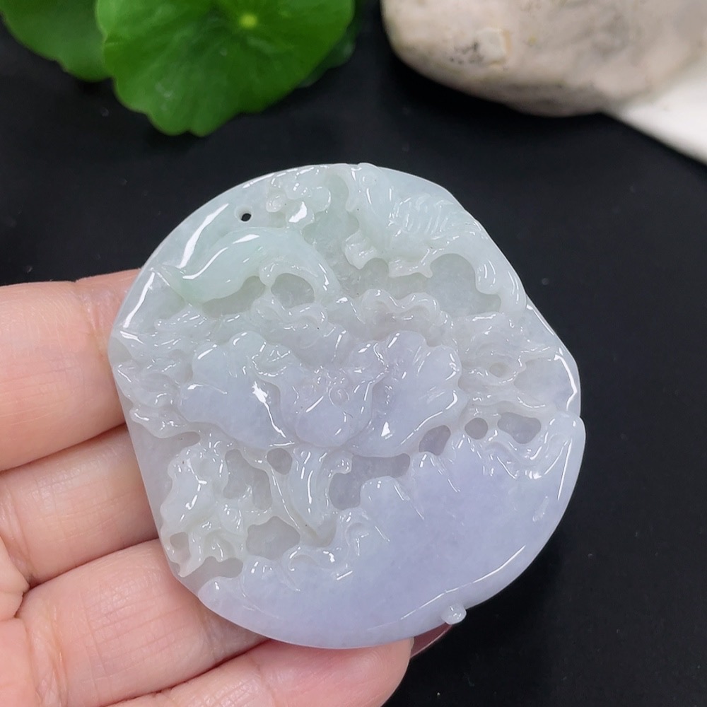 Jadeite Flower of Wealth and Honor Pendant, Total Weight Approximately 35.58g