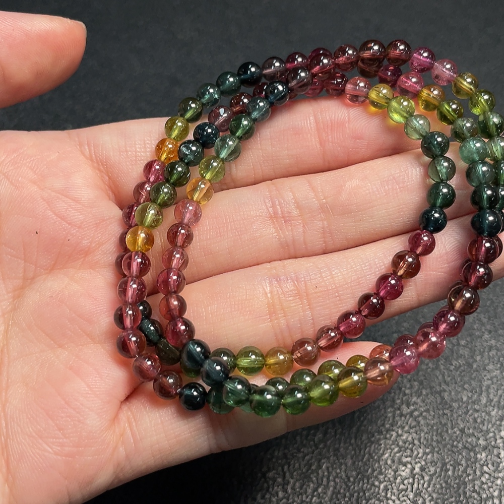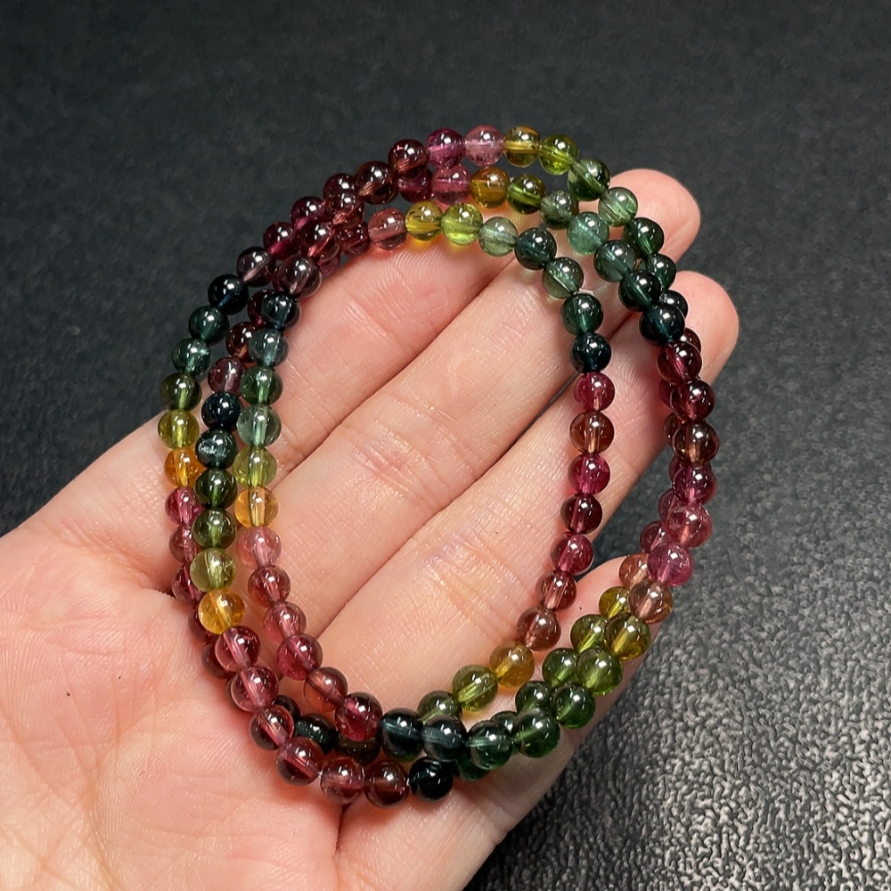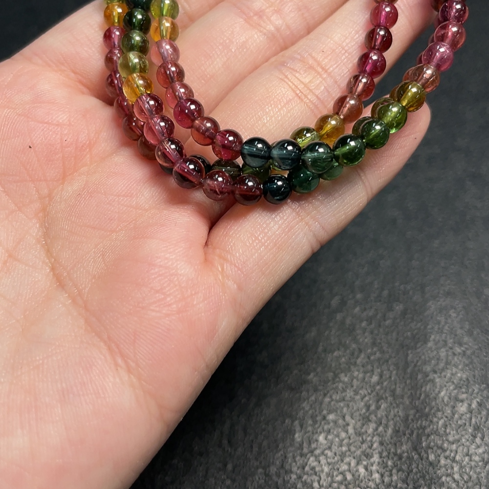 Tourmaline Bead Strand with Visible Organic Matter, Total Weight Approx. 19.33g, Size About 4.7mm