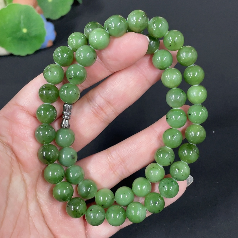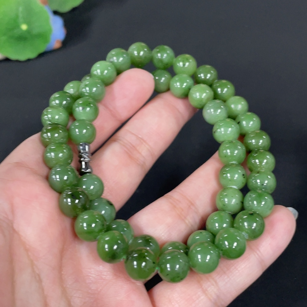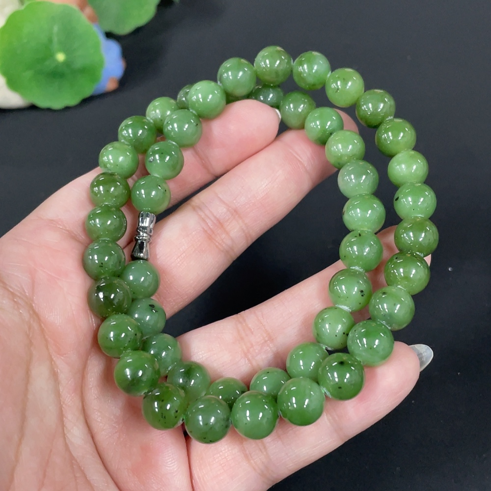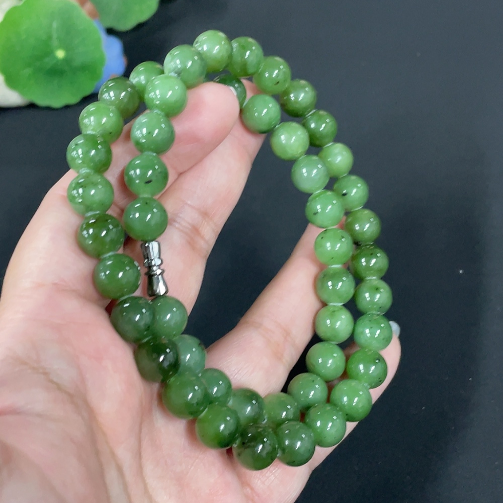 Hetian Jade Jasper Bead Necklace Approx. 9.3mm Total Weight Approx. 64.6g