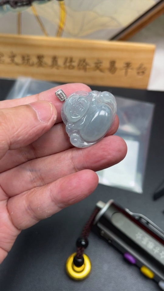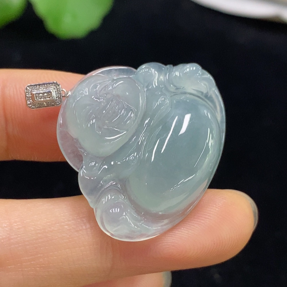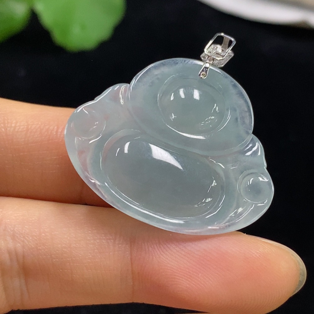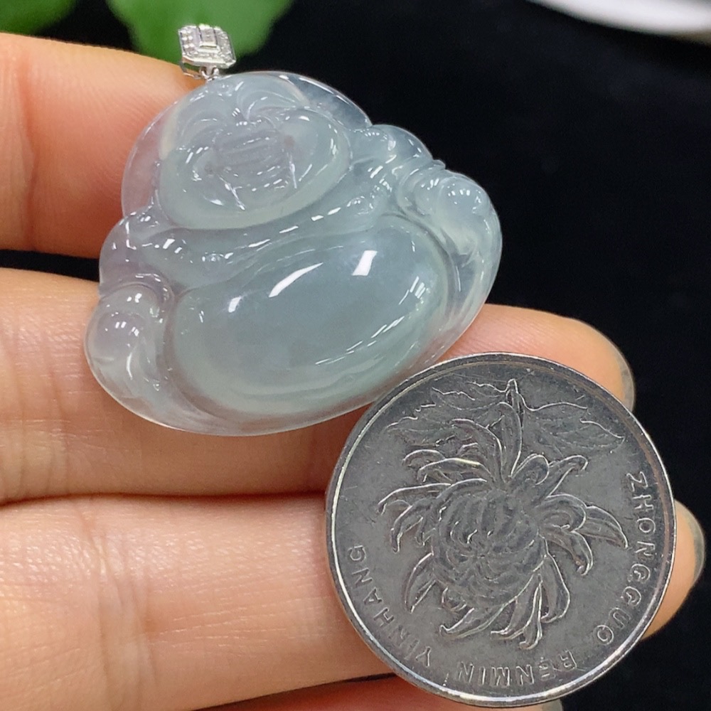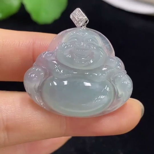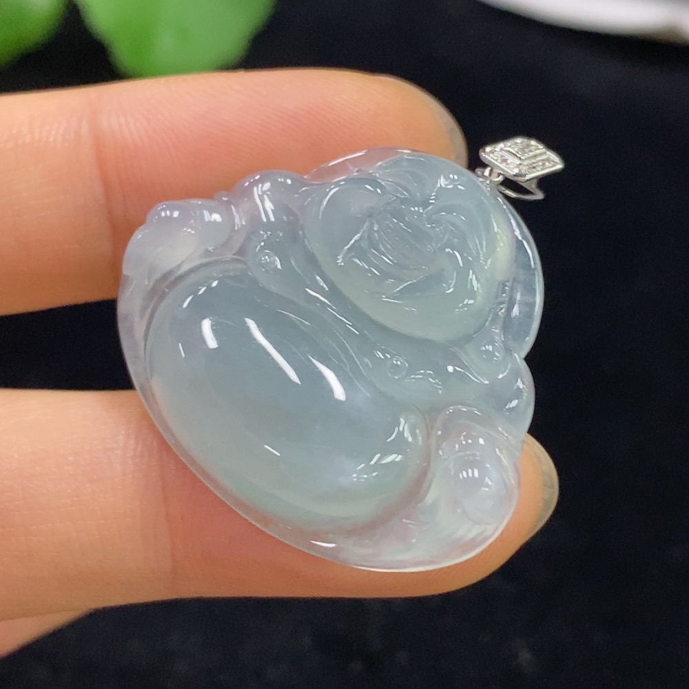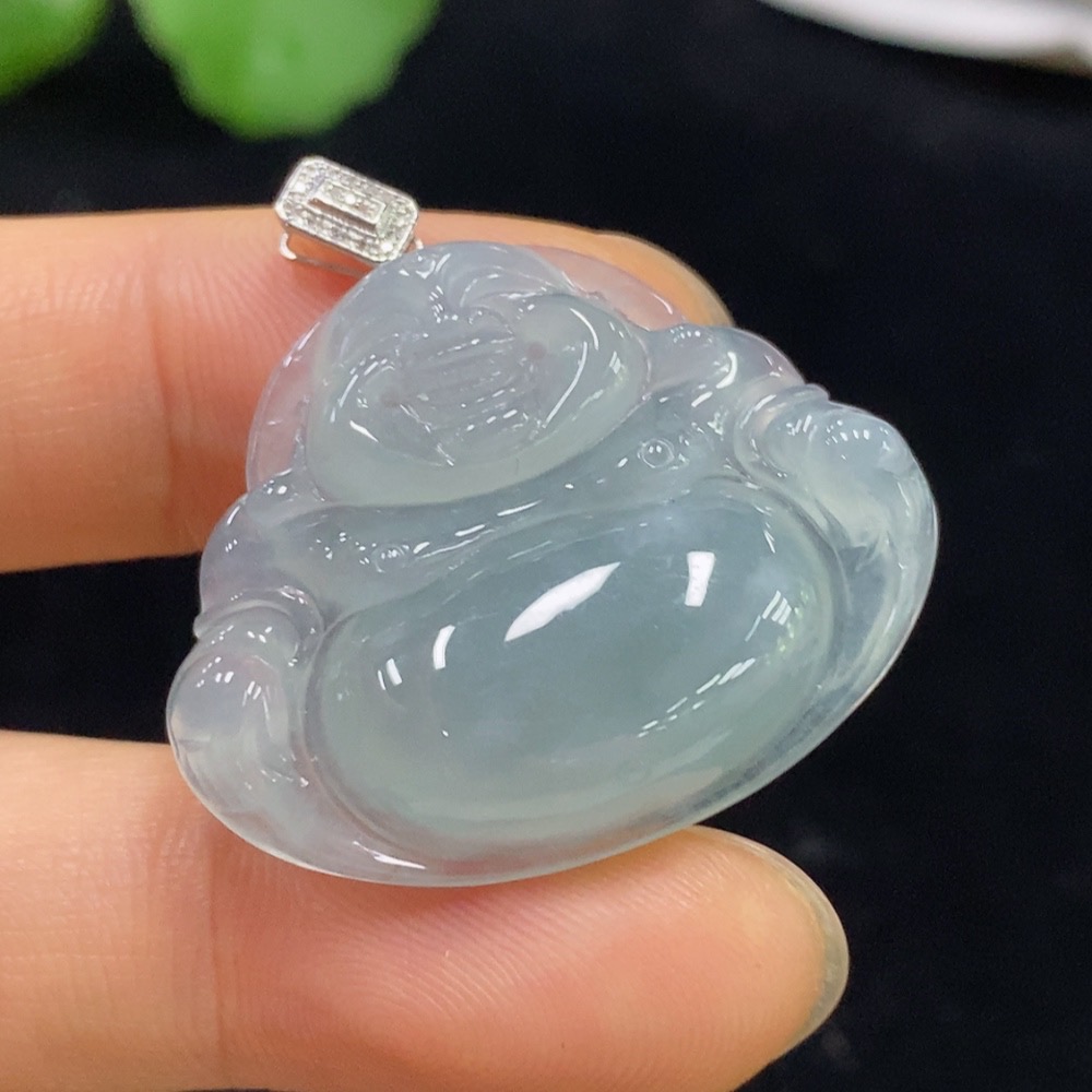 Jadeite Buddha Pendant with 18K Gold and Diamond Accents, Total Weight Approximately 7.17g