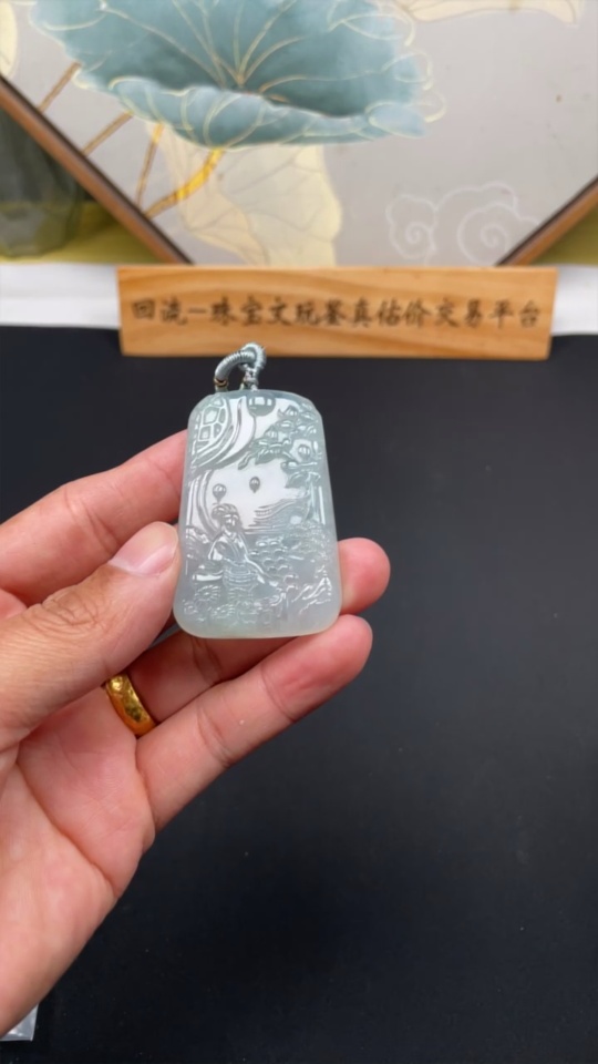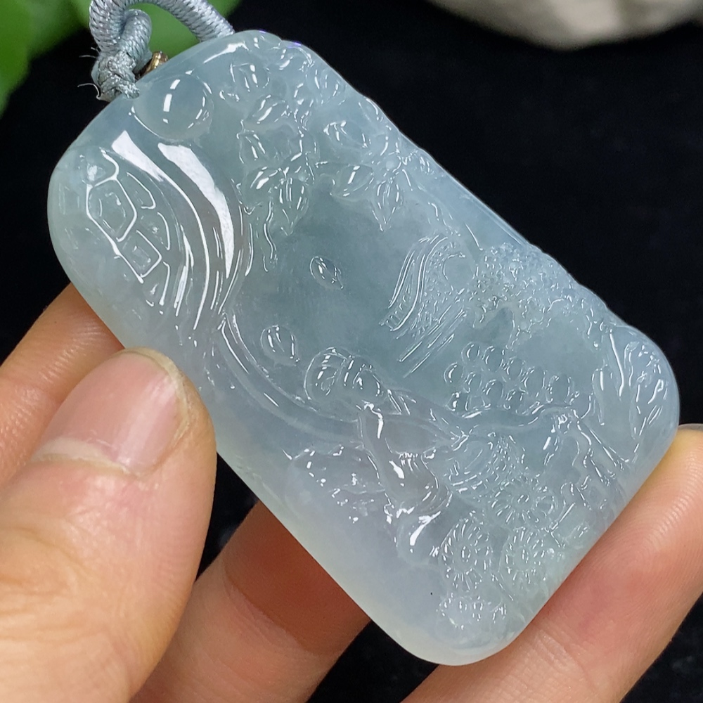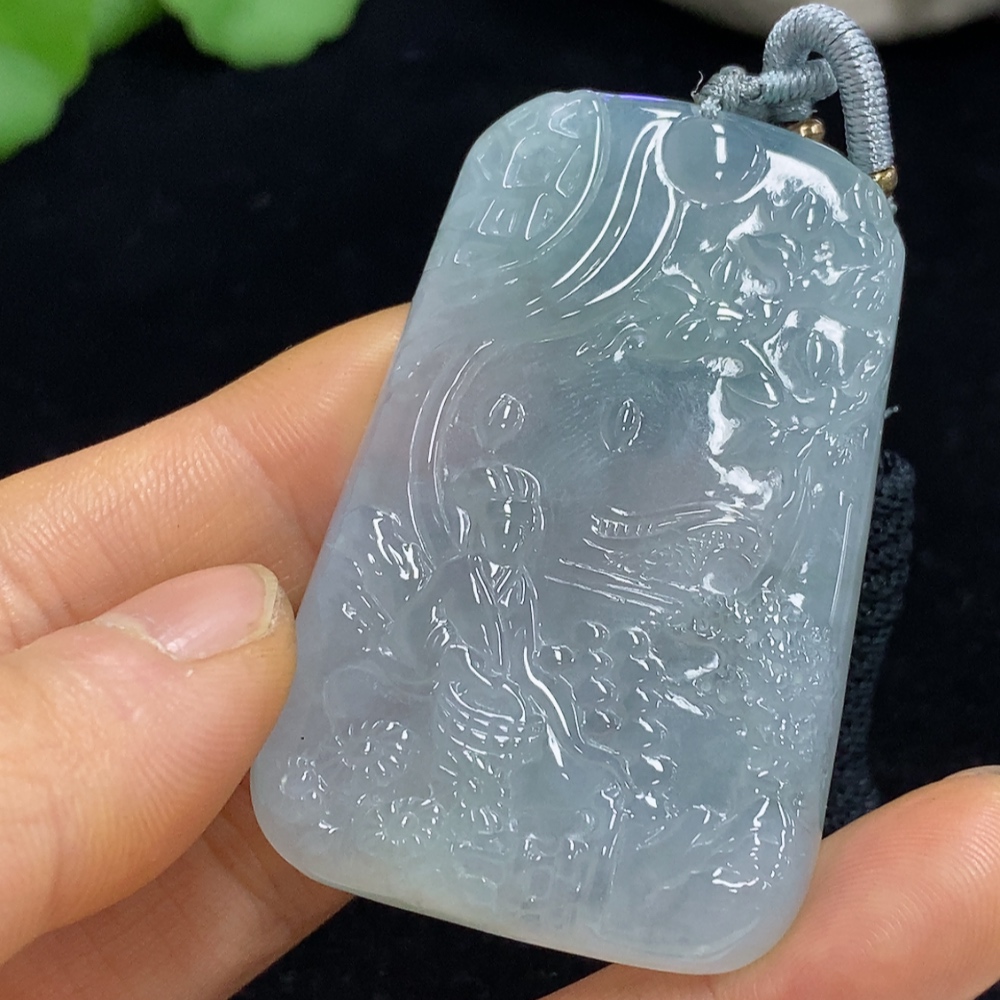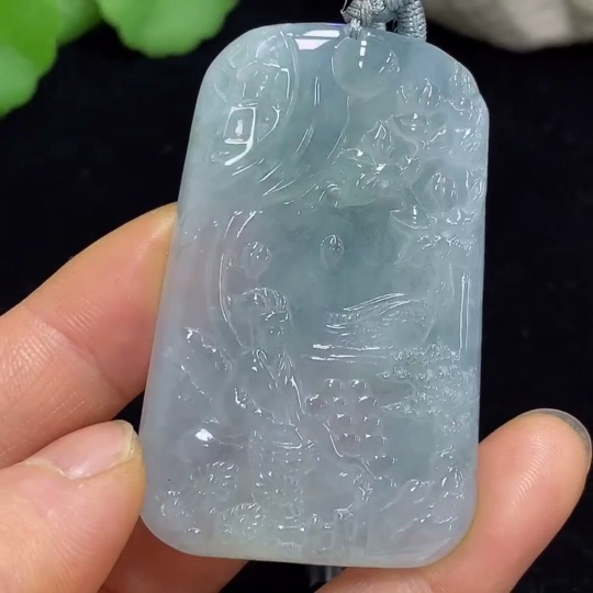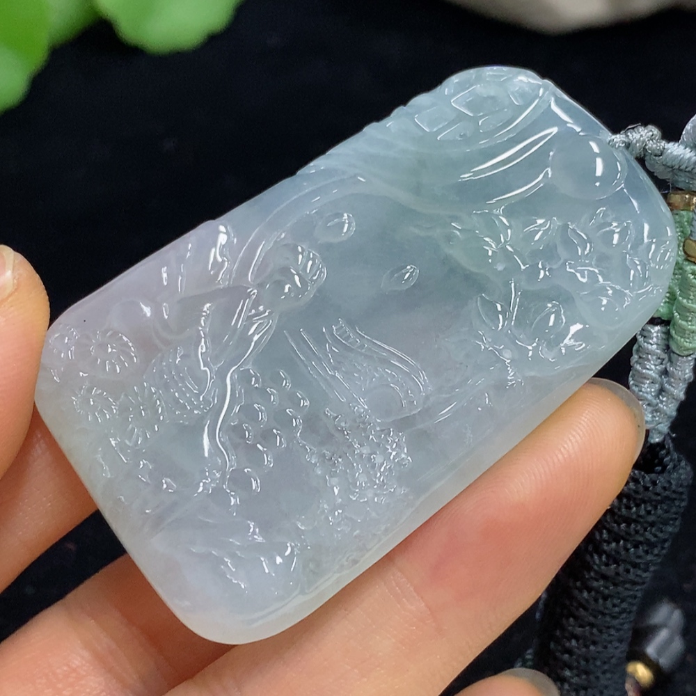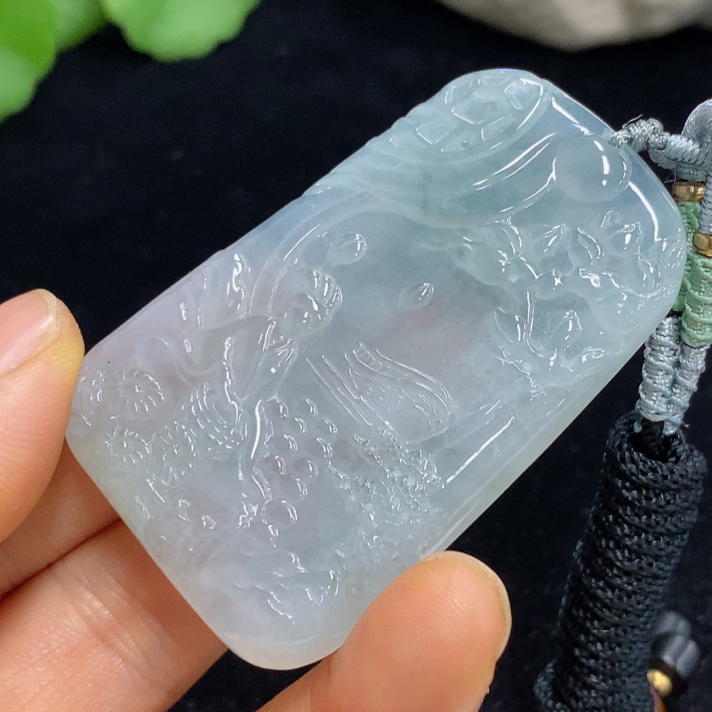 Jadeite Landscape Pendant Total Weight Approx. 37.09g (Including Rope Weight)