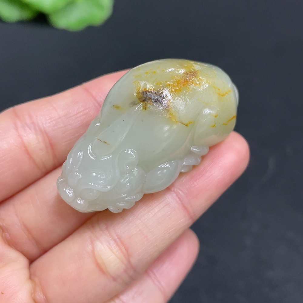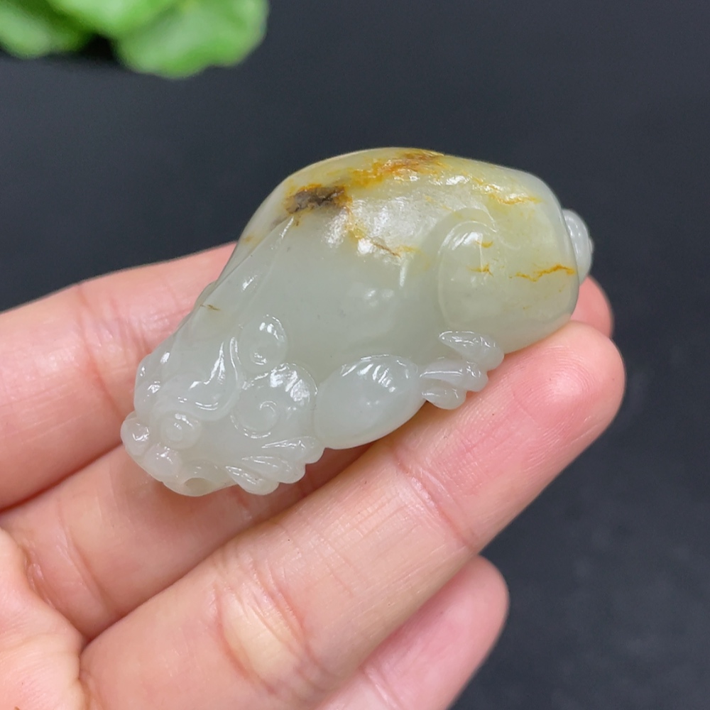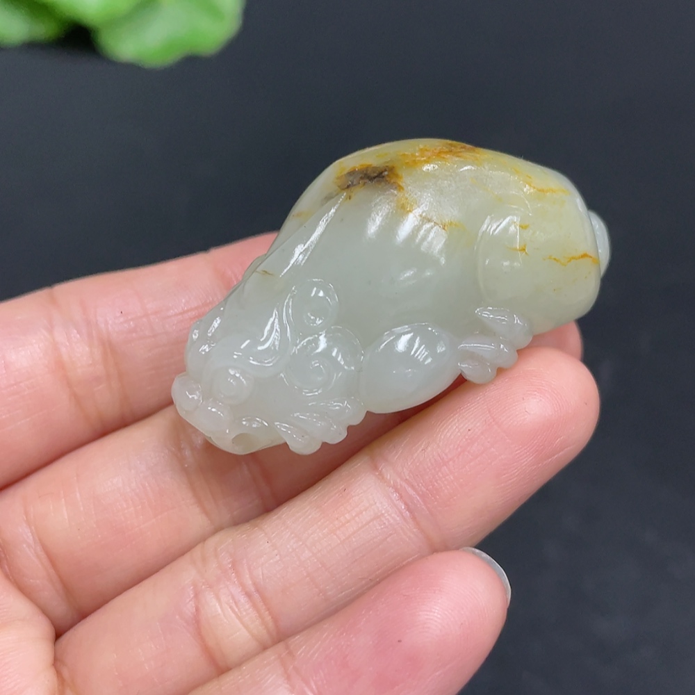 Hetian Jade Pendant, Auspicious Beast, Total Weight Approx. 33.1g, Undetermined Skin Color Origin