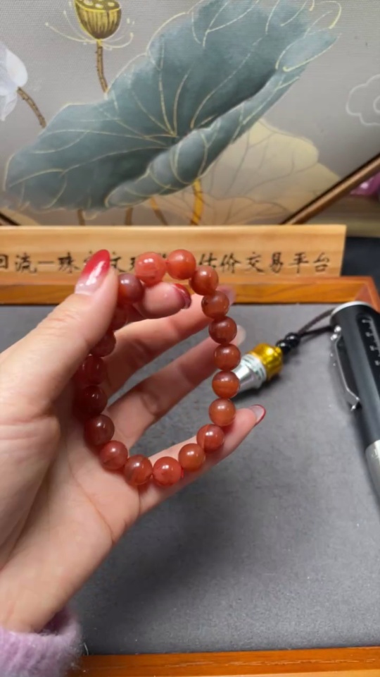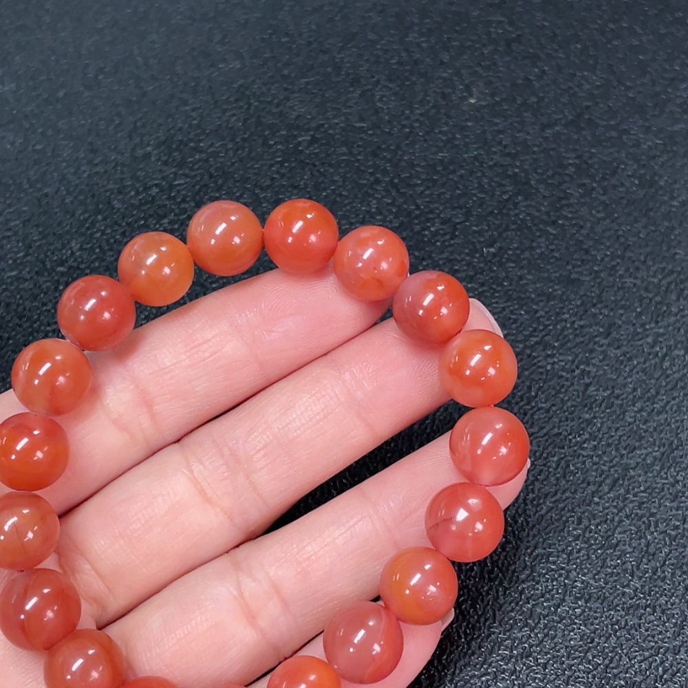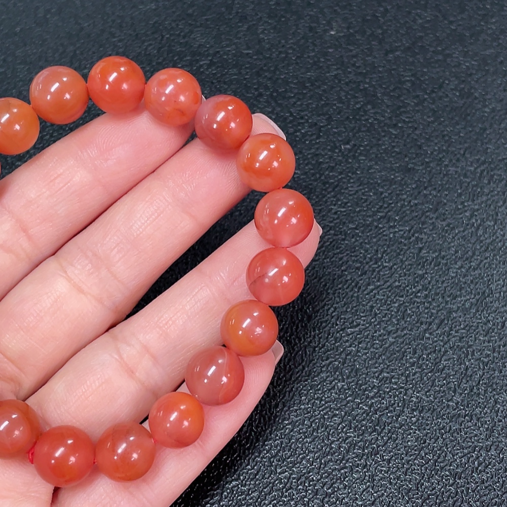 Red Agate Bracelet with Visible Organic Matter, Total Weight Approx. 27.53g, Size About 10.3mm