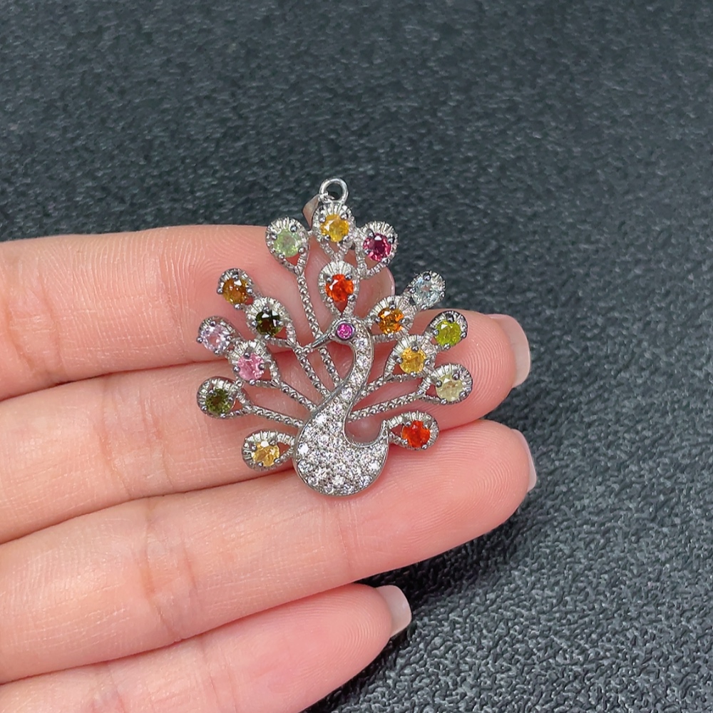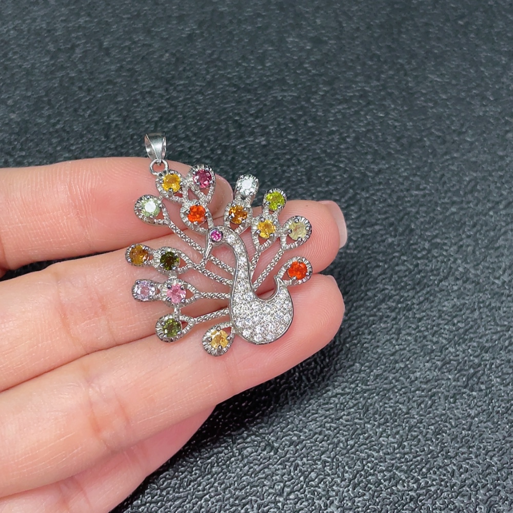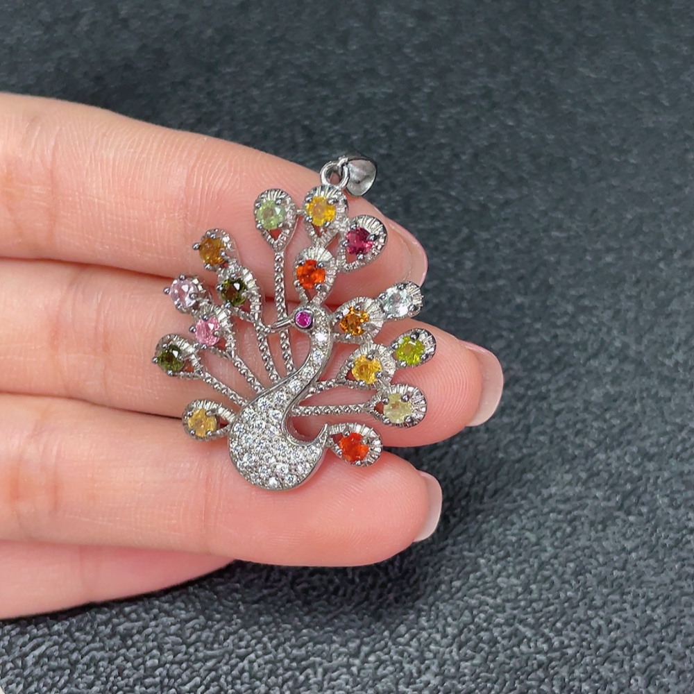 Tourmaline Pendant with Non-Natural Accent Stones, Non-Gold, Total Weight Approx. 5.7g
