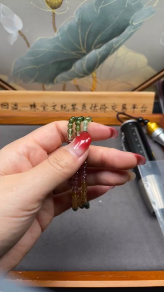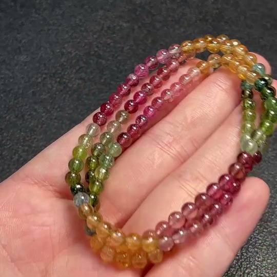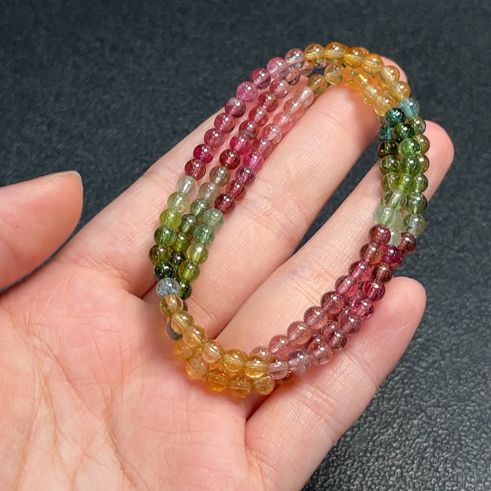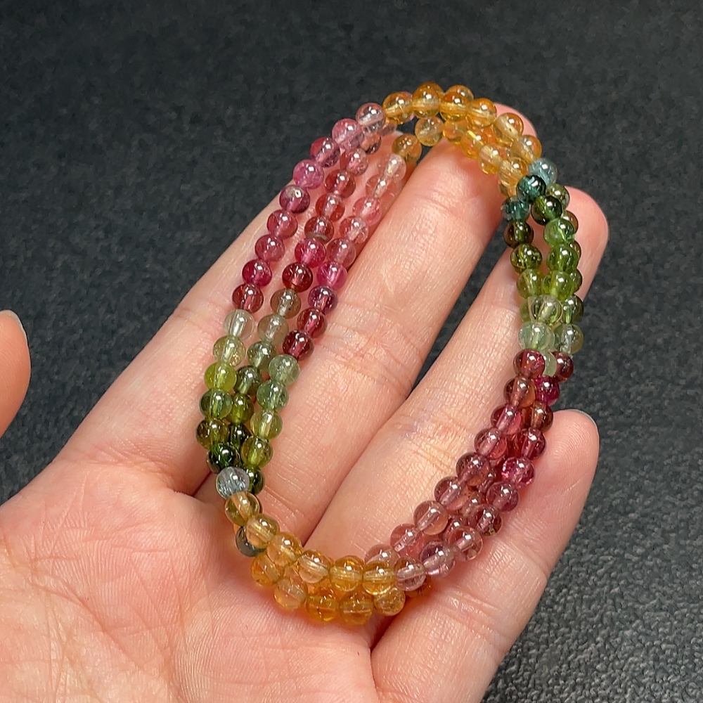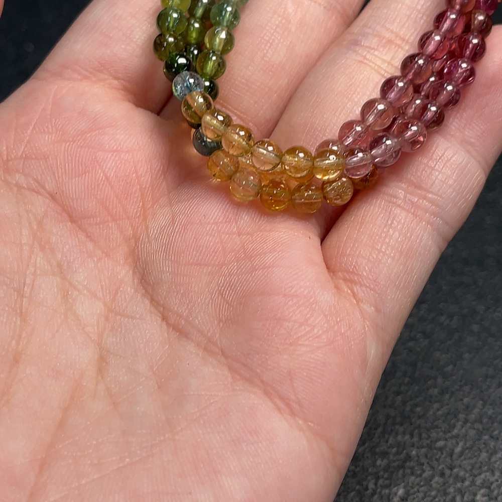 Tourmaline bead strand with visible organic matter, total weight approx. 15.83g, size approx. 4.2mm