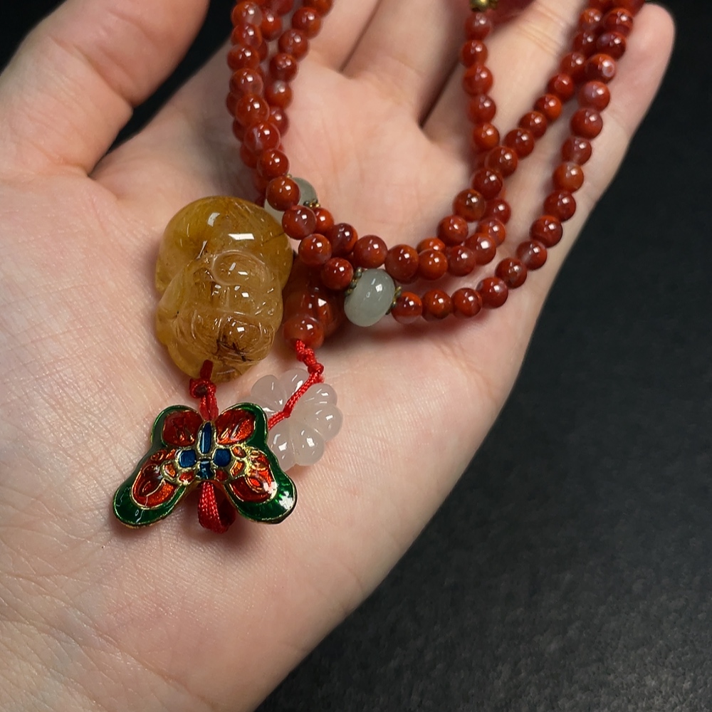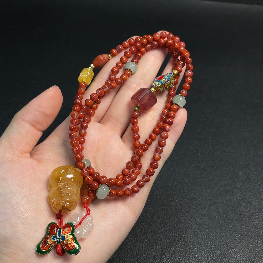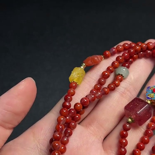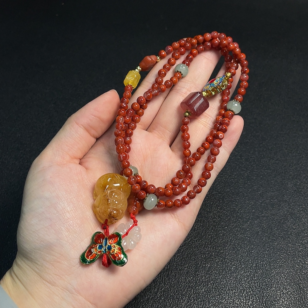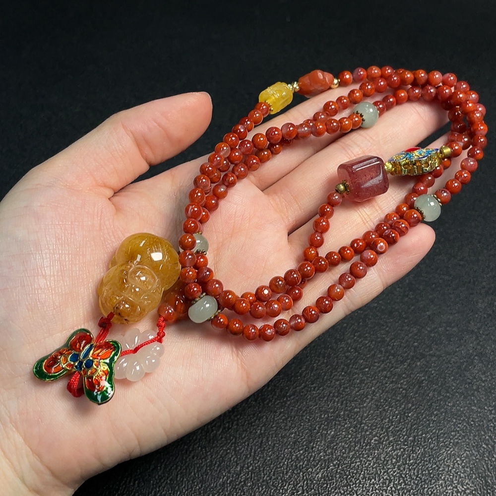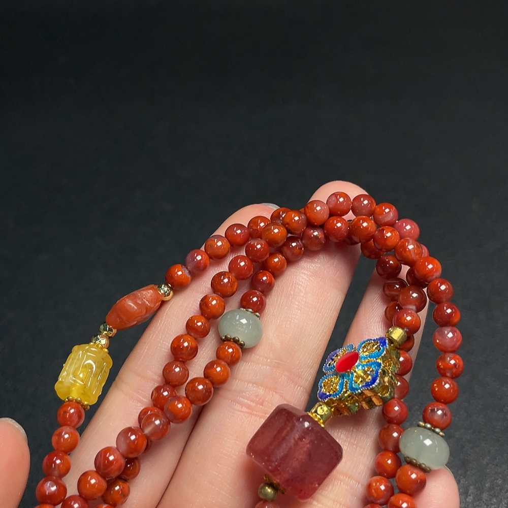 Red Agate Bead Strand with Visible Organic Matter, Non-Natural Accent Stones, Non-Metal, Total Weight Approx. 51.93g, Size About 4.8mm