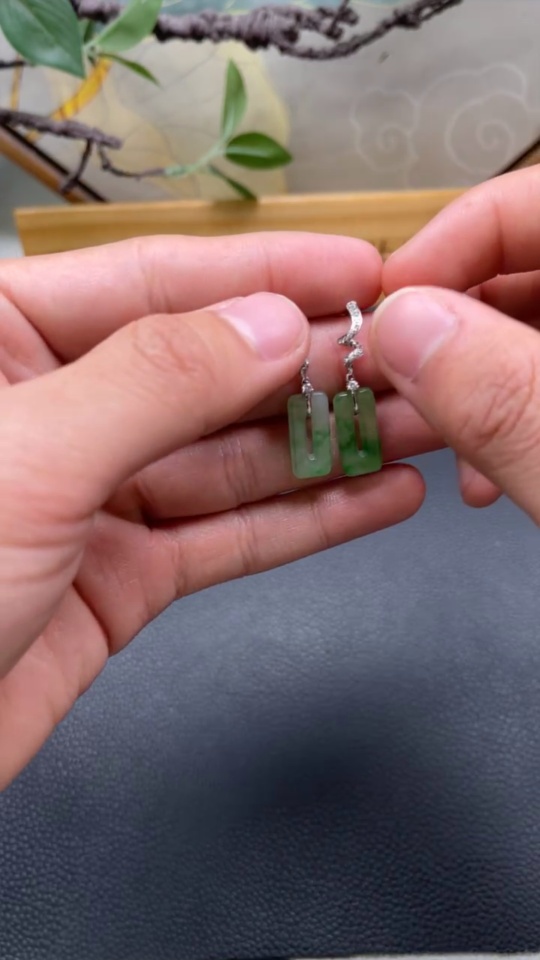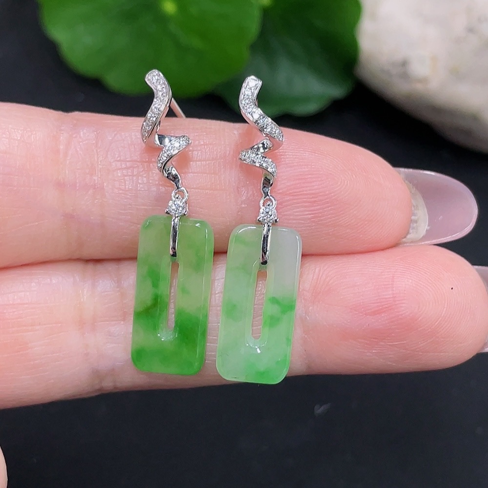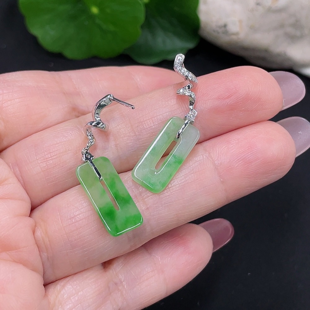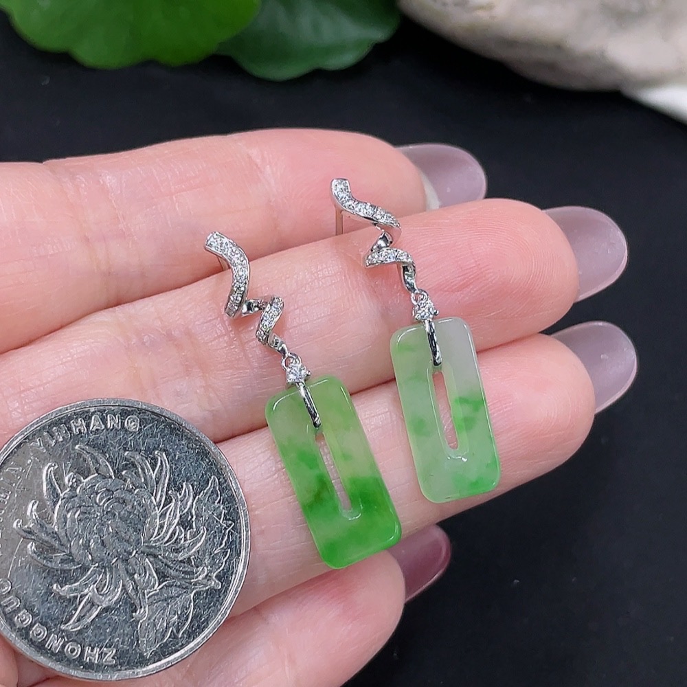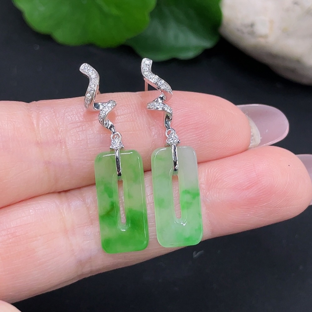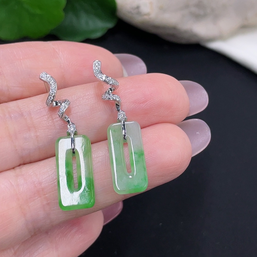 Jadeite earrings pair 18K gold total weight approx. 2.8g (with diamond accents)