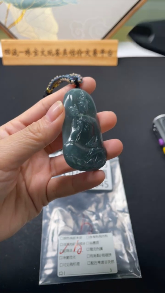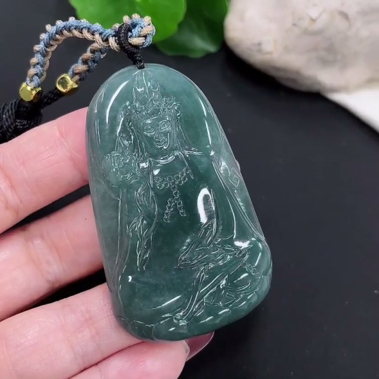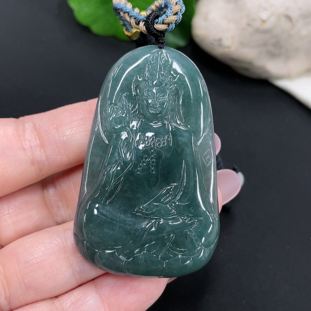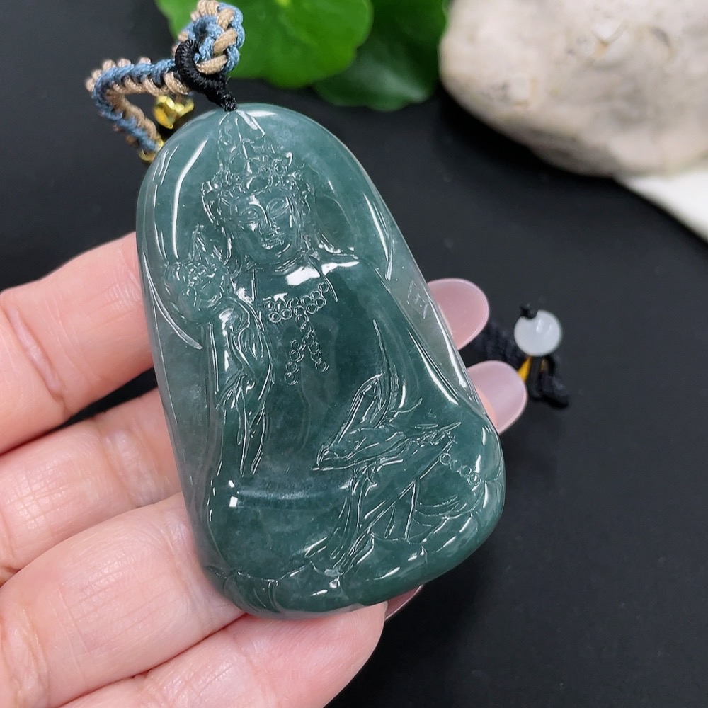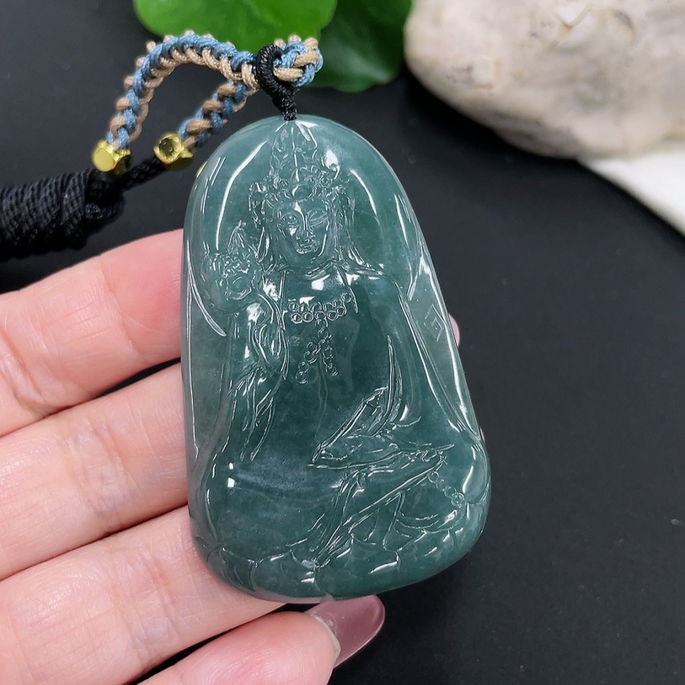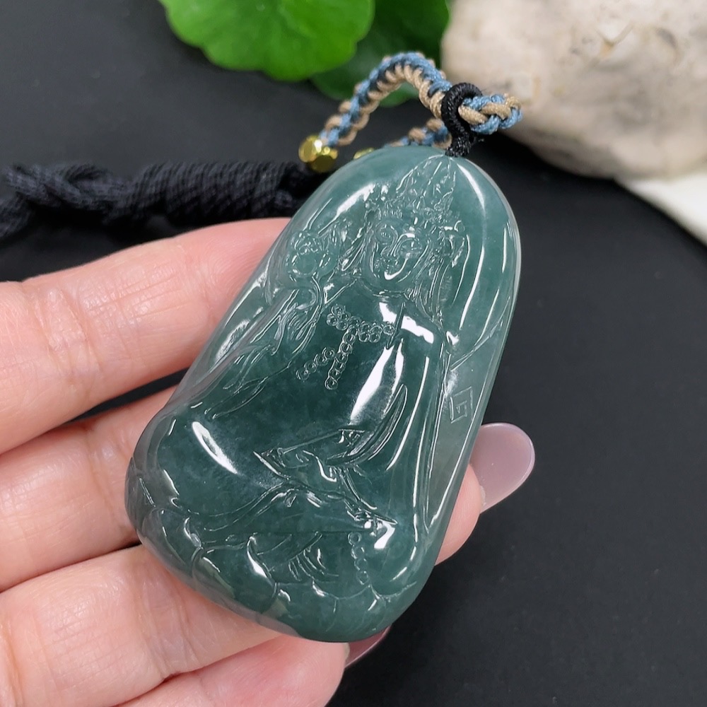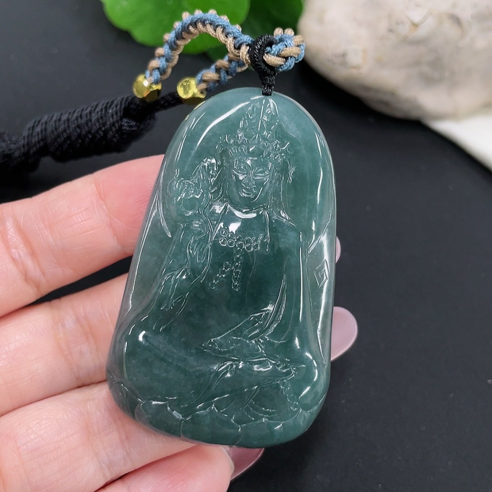 Jadeite Guanyin Pendant Total Weight Approx. 32.7g (Including Rope Weight) (Matching Beads Non-A)