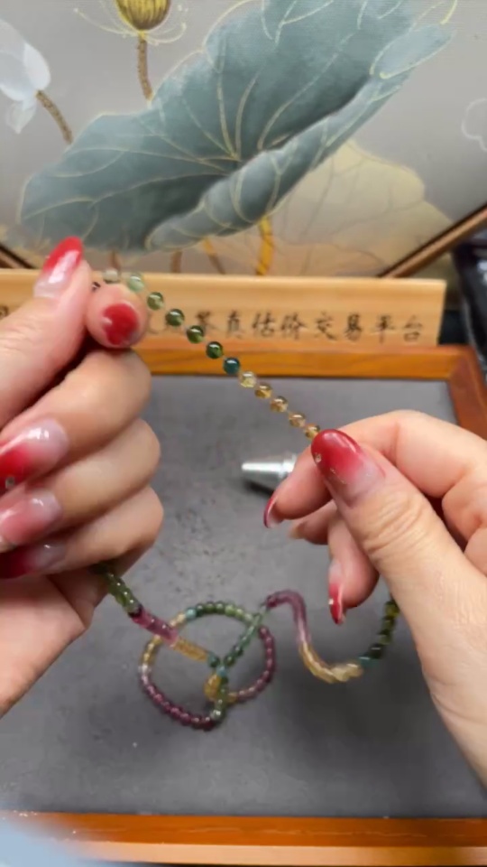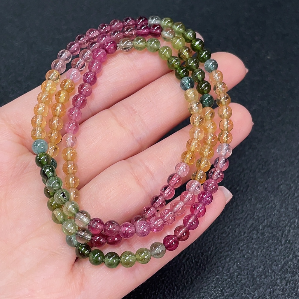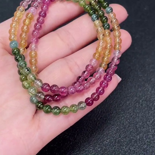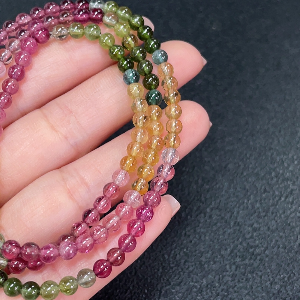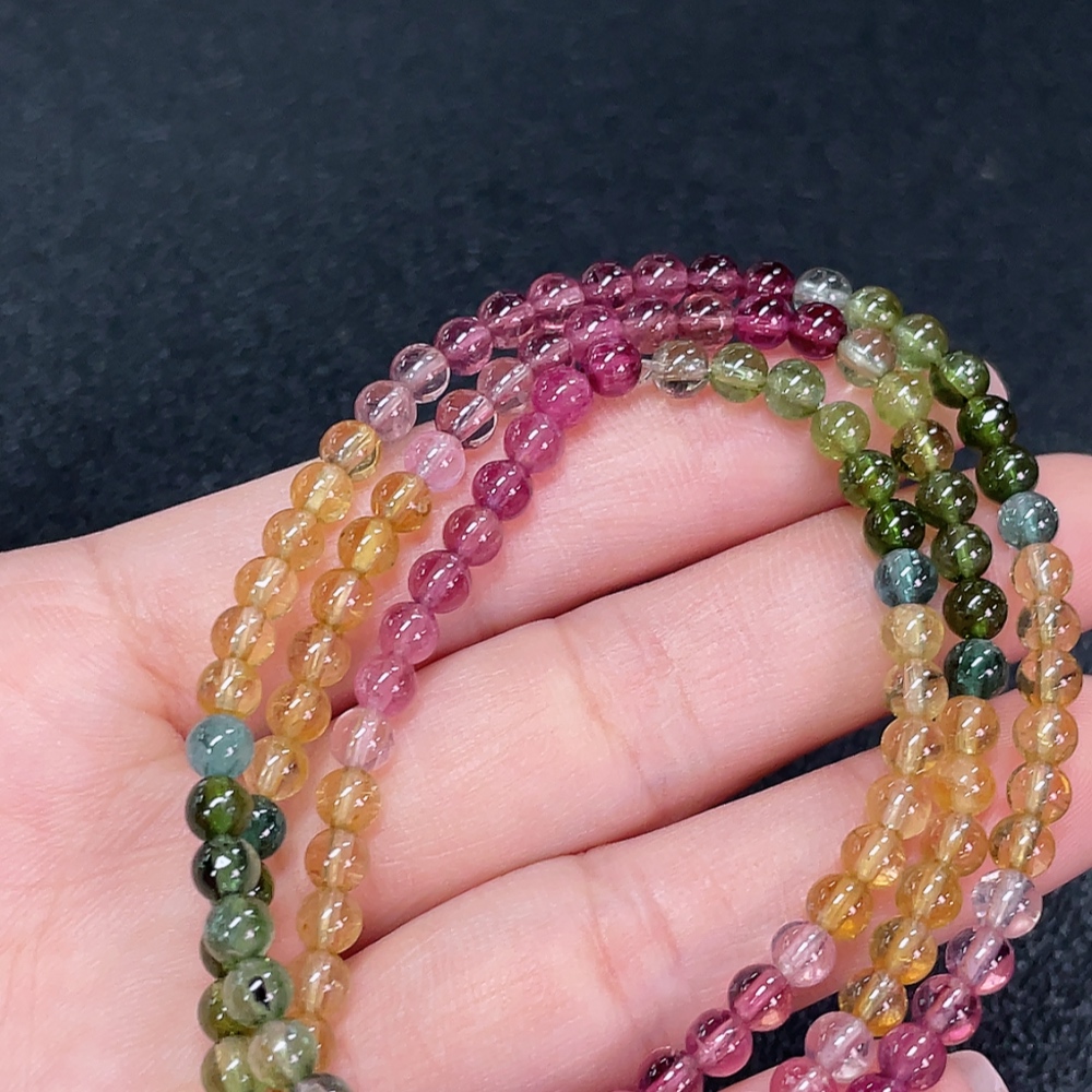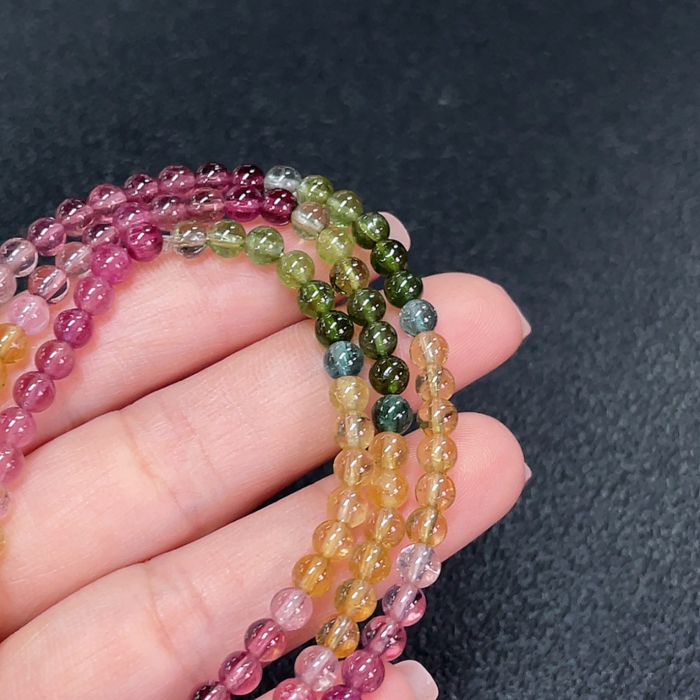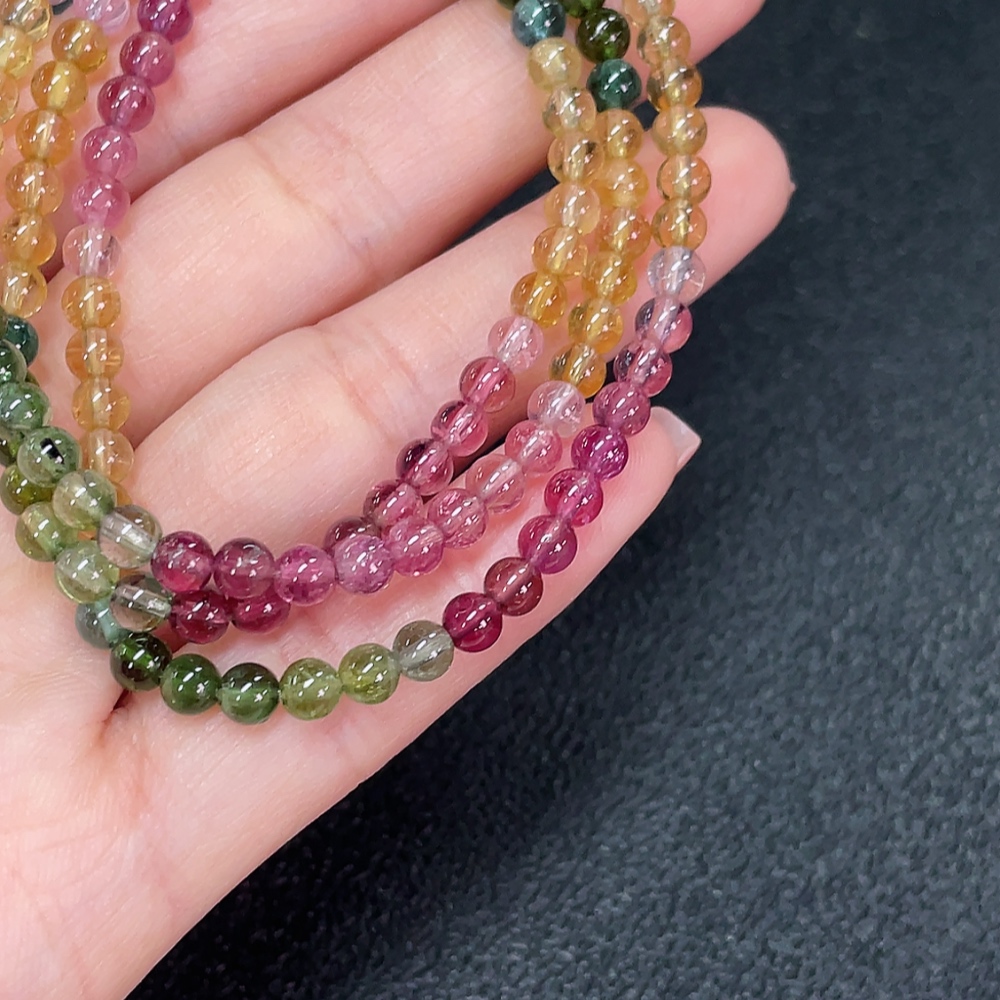 Tourmaline bead strand with visible organic matter, total weight approx. 15.78g, size about 4.2mm