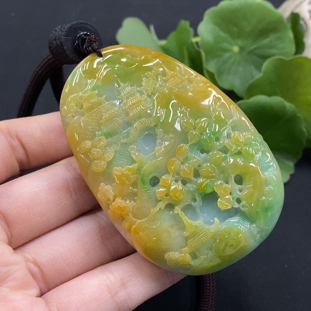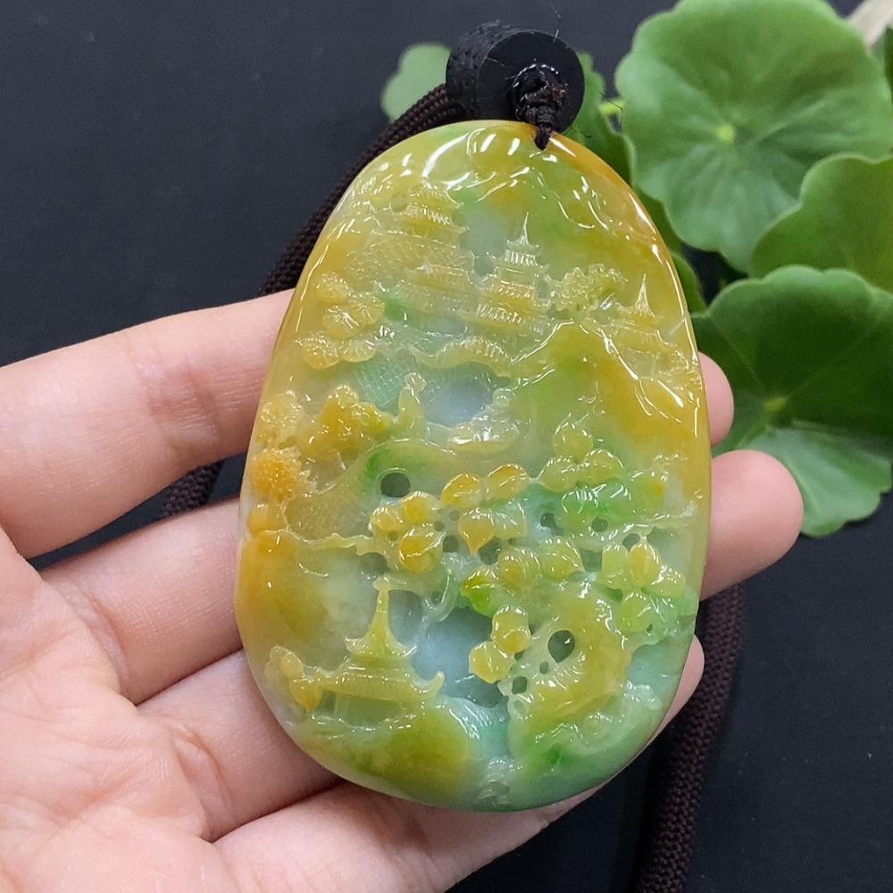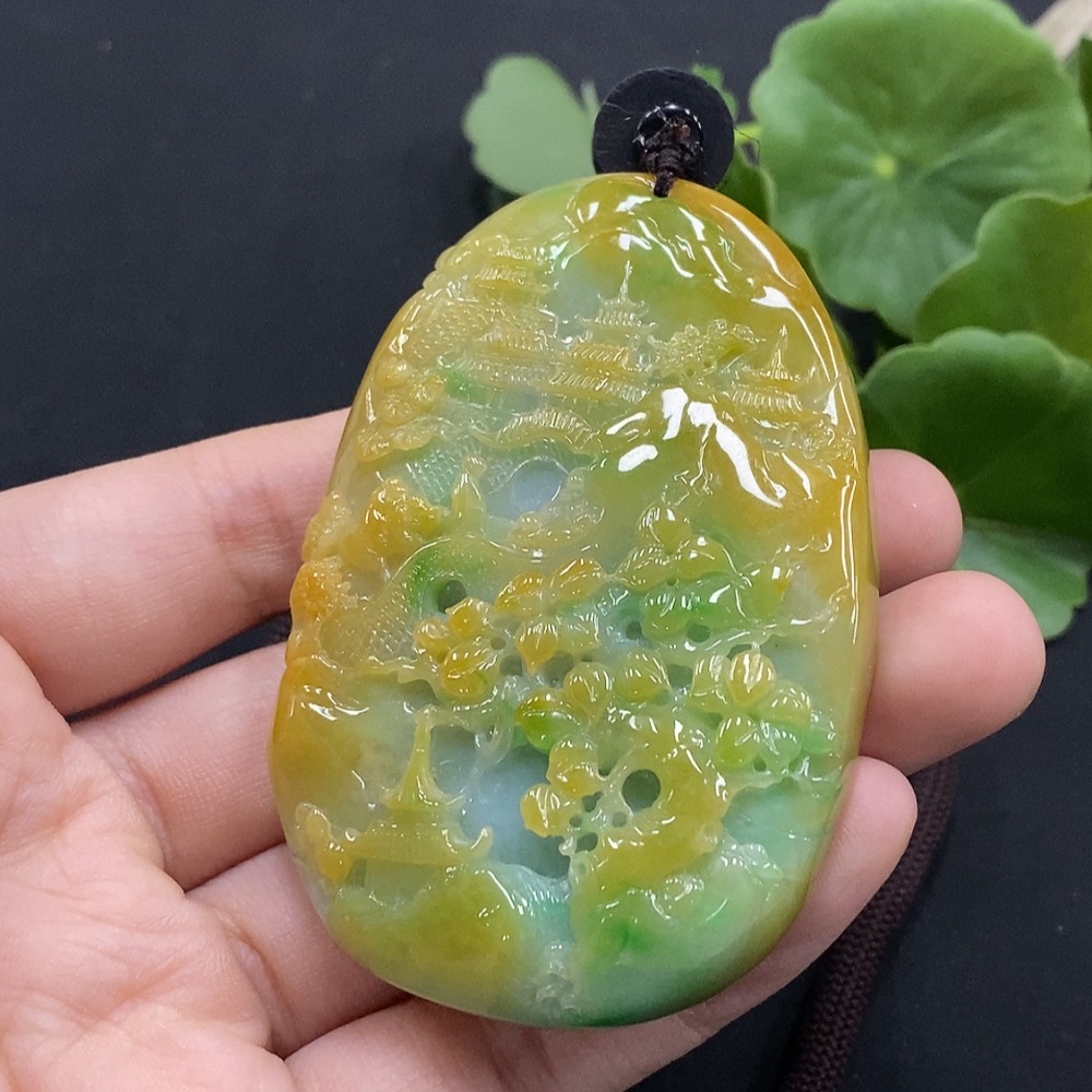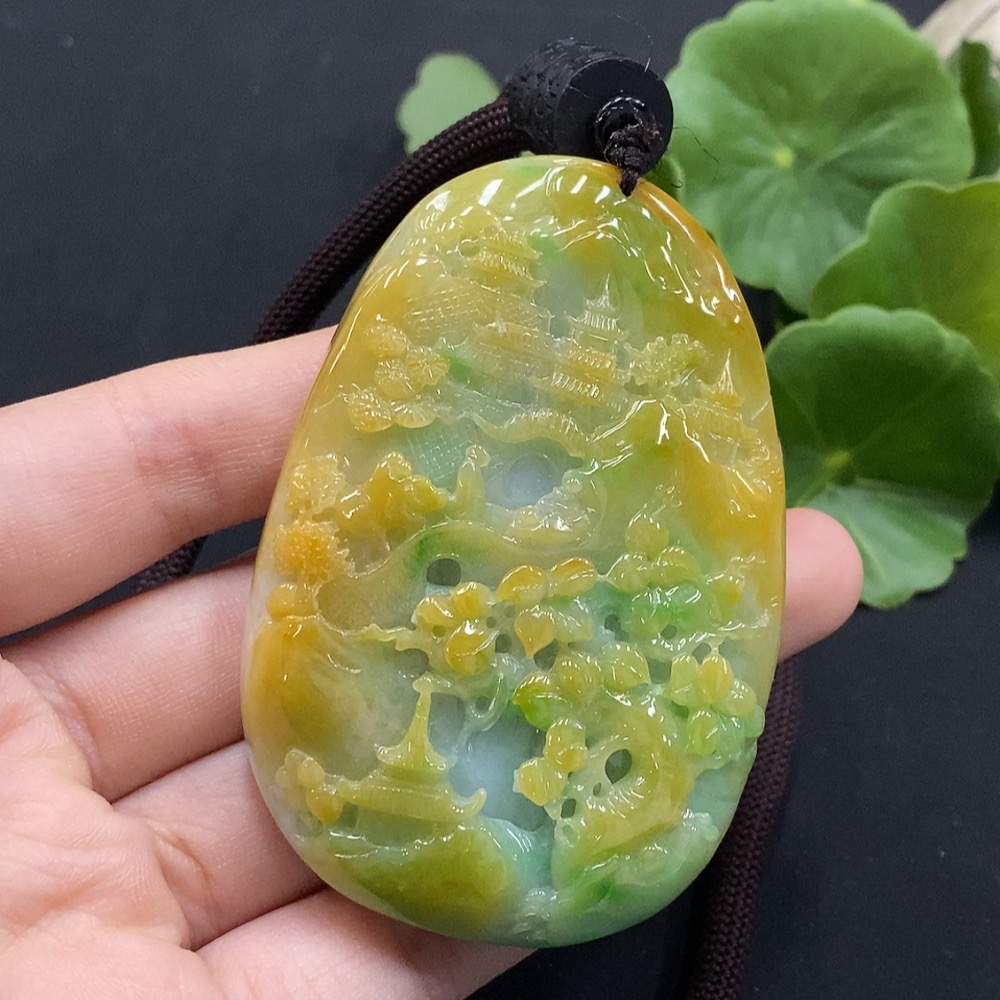 Jadeite Landscape Pendant Total Weight Approx. 106.67g