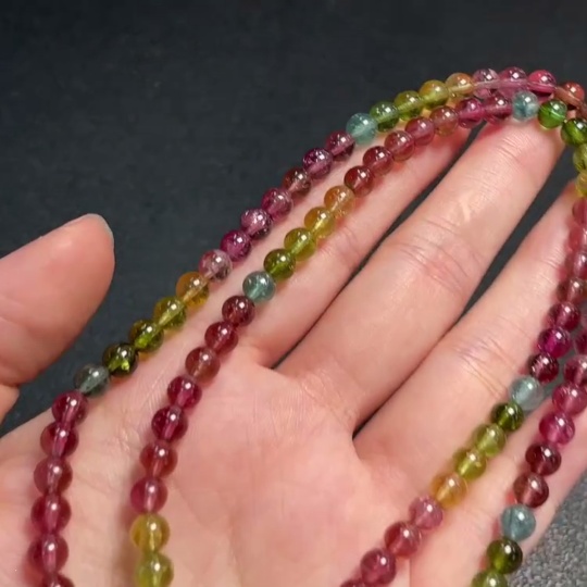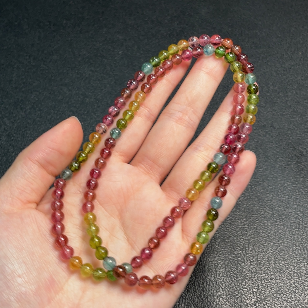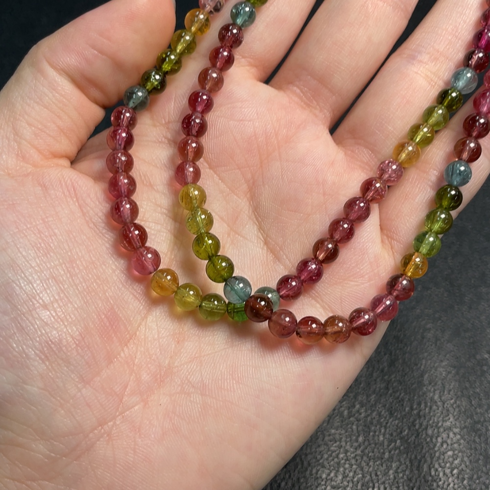 Tourmaline Bead Necklace with Visible Organic Matter and Other Mineral Components, Total Weight Approximately 25.26g, Bead Size About 5.3mm