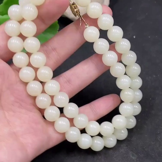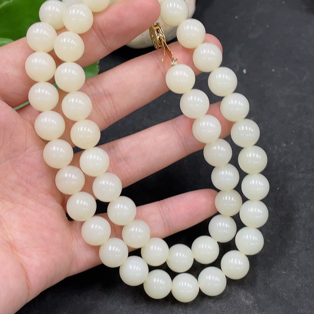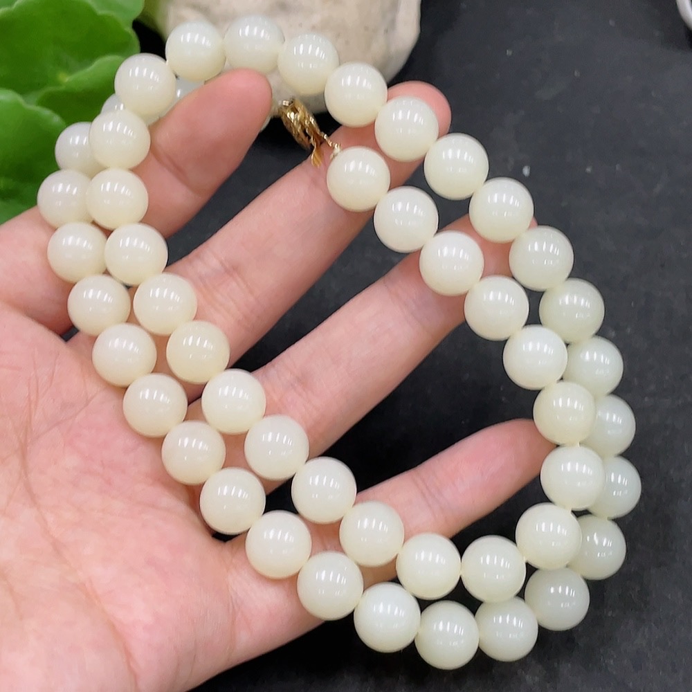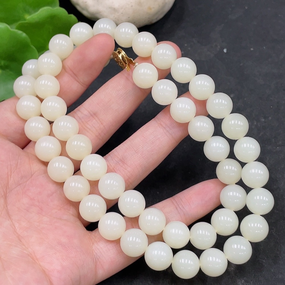 Hetian Jade Bead Necklace, 58% Gold Content, Approx. 9.5mm, Total Weight Approx. 74.3g