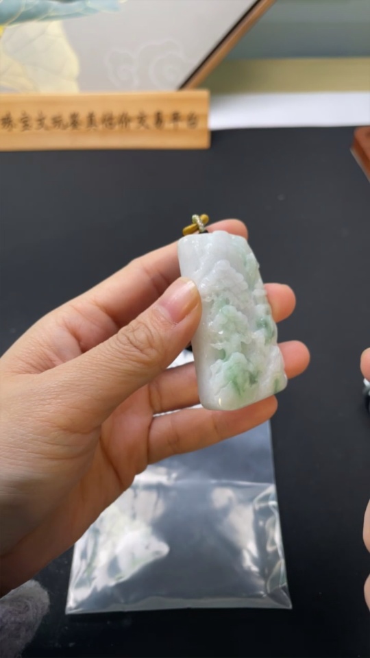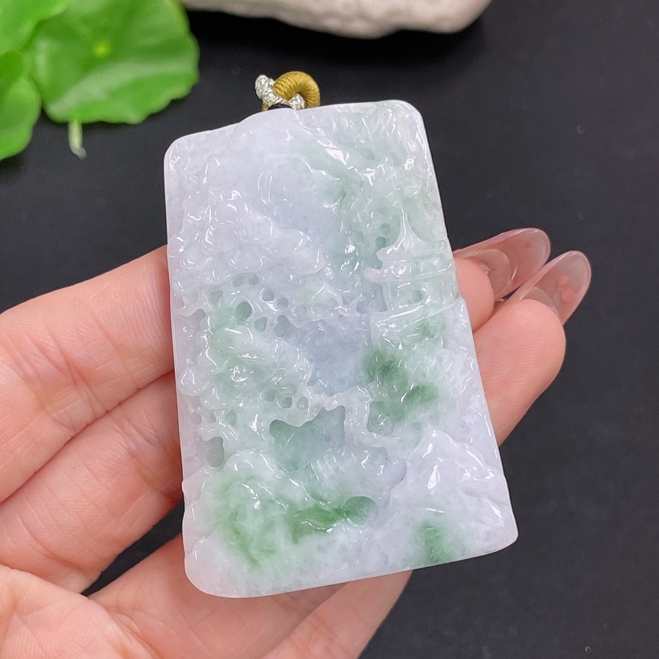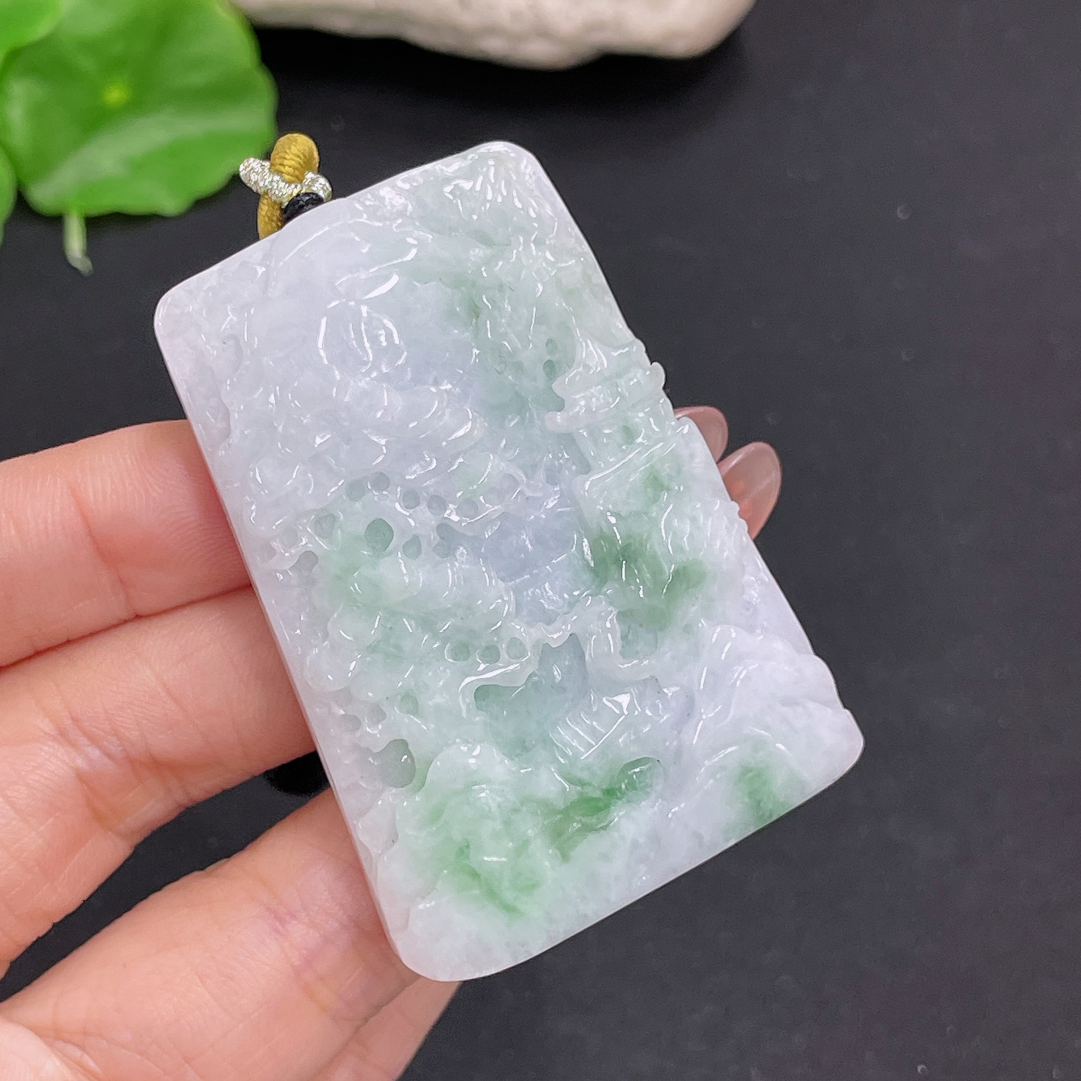 Jadeite Landscape Pendant Total Weight Approx. 68.86g (including rope weight)
