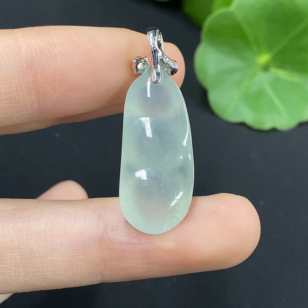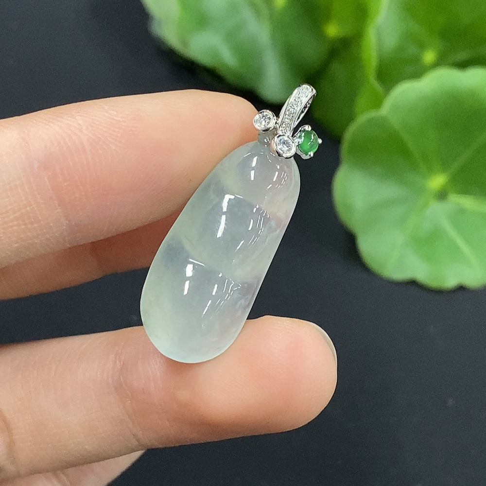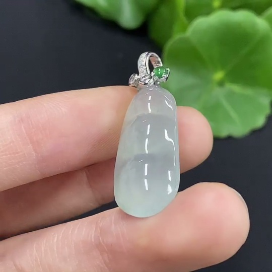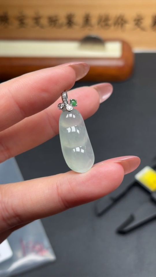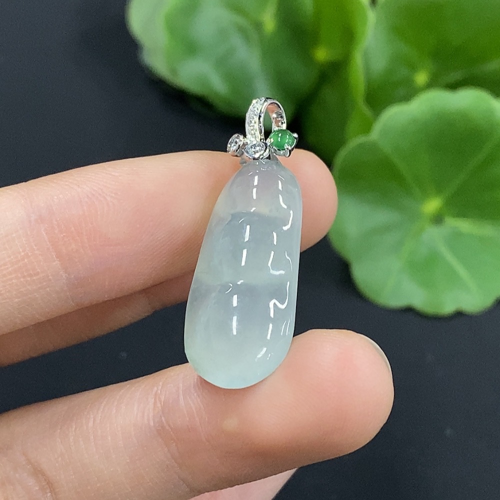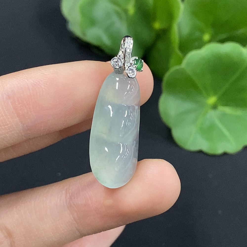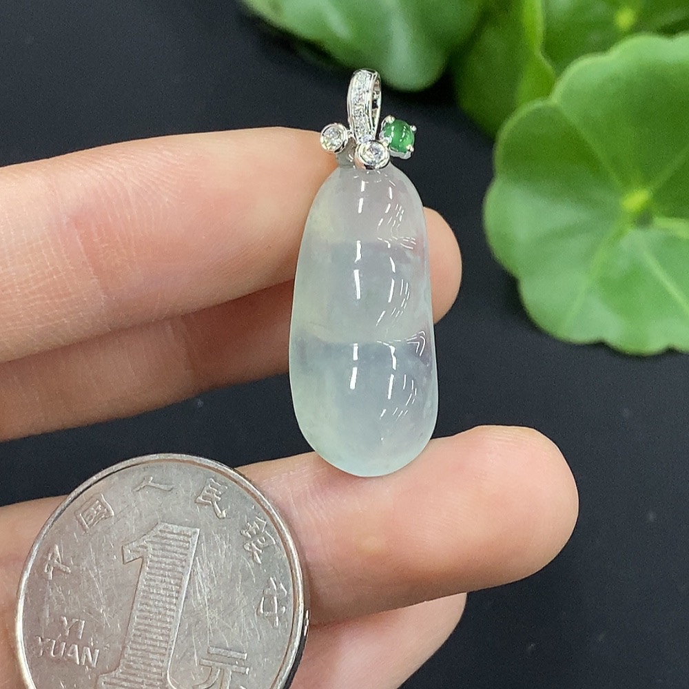 Jadeite Lucky Bean Pendant 18K Gold with Diamond Accents Total Weight Approximately 3.53g