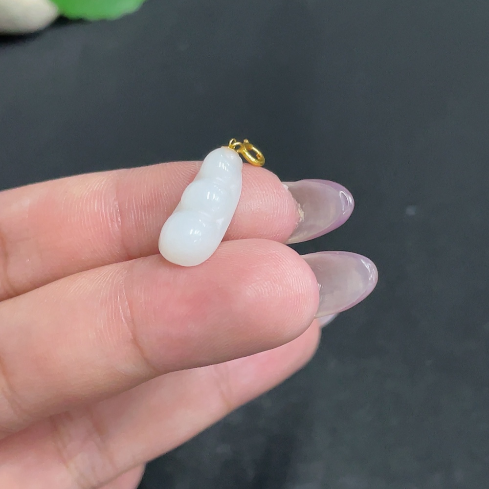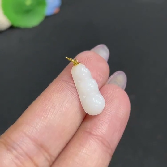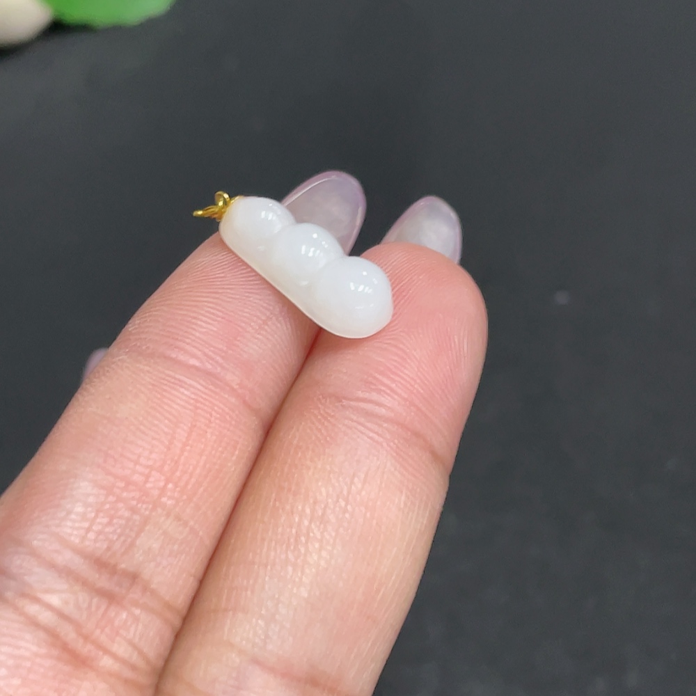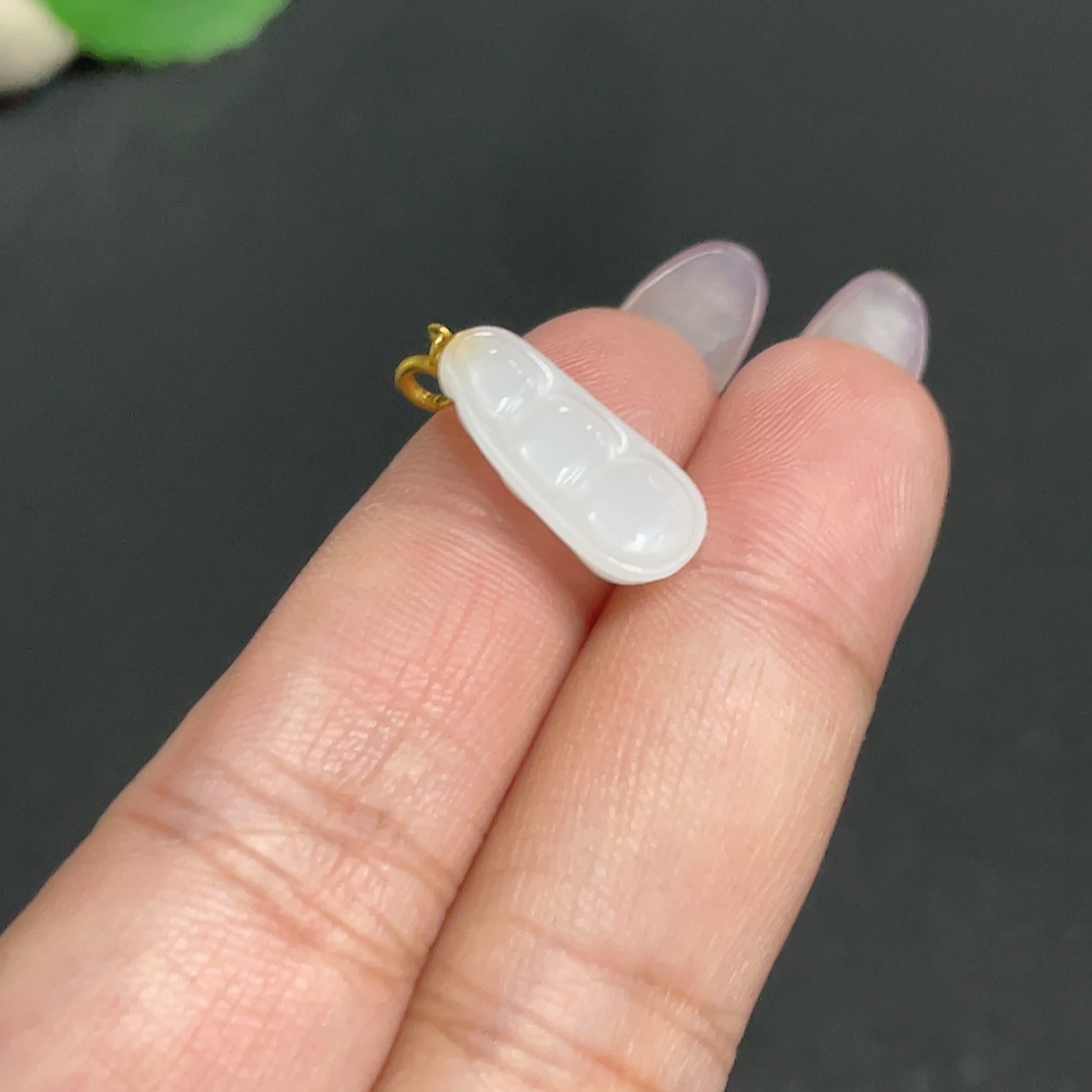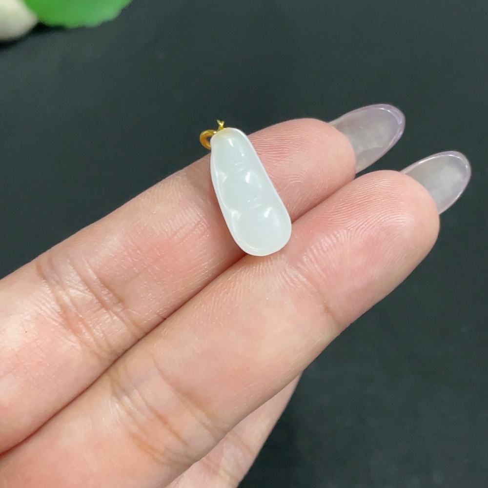Hetian Jade Inlaid Pendant, Lucky Bean, Total Weight Approx. 1g, 18k