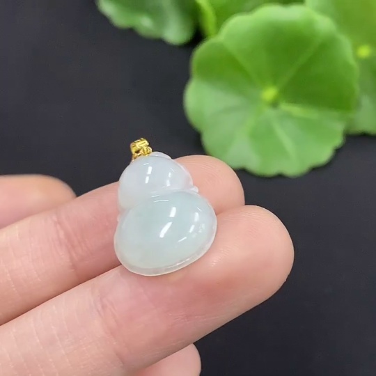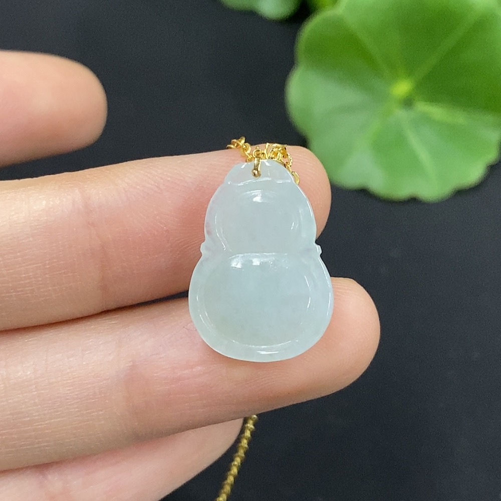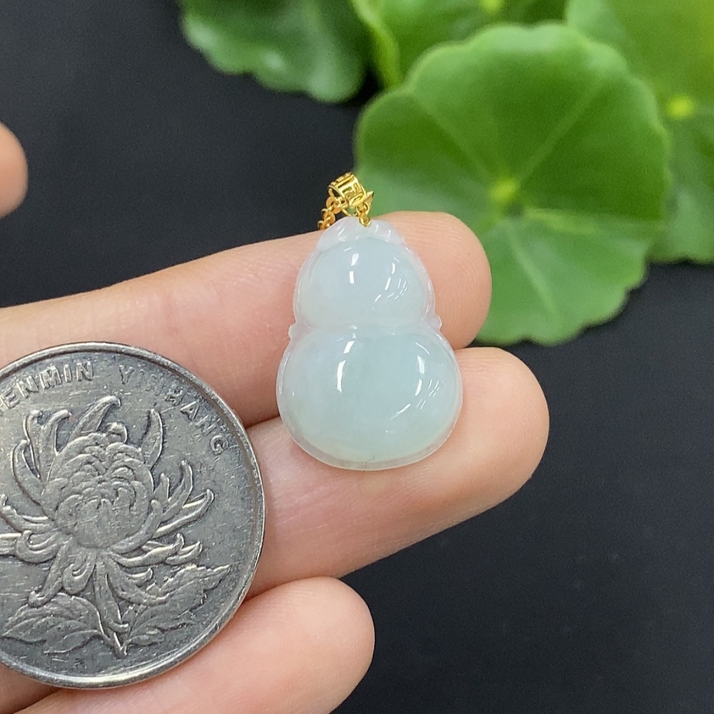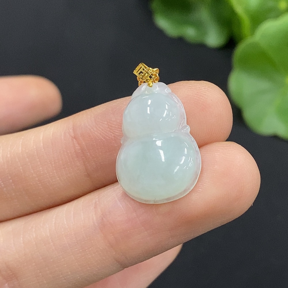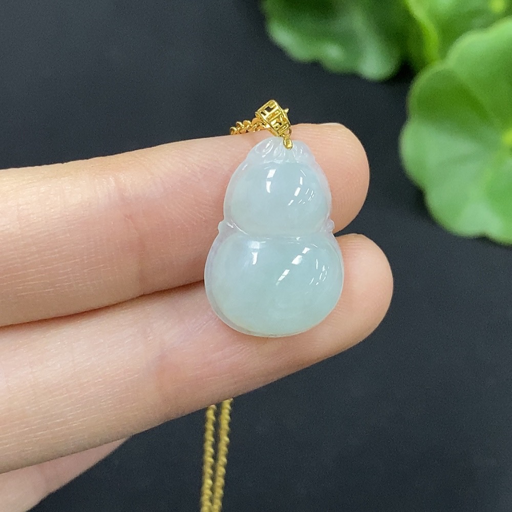 Jadeite Gourd Pendant with 18K Gold, Non-Gold Chain, Total Weight Approx. 2.2g (Excl. Chain)