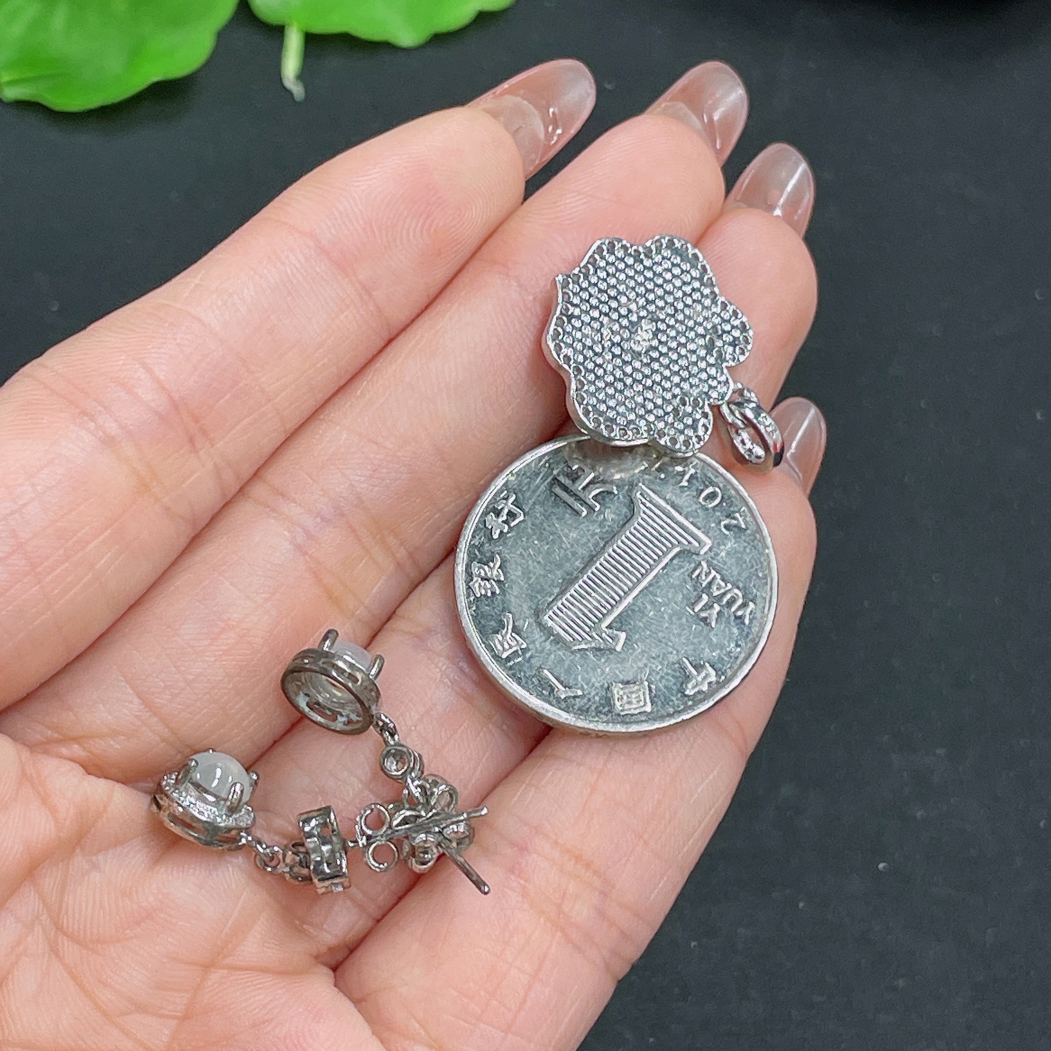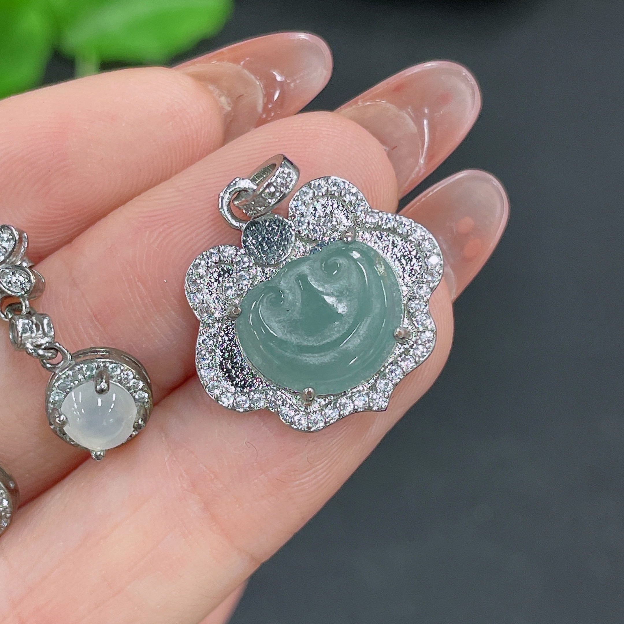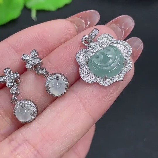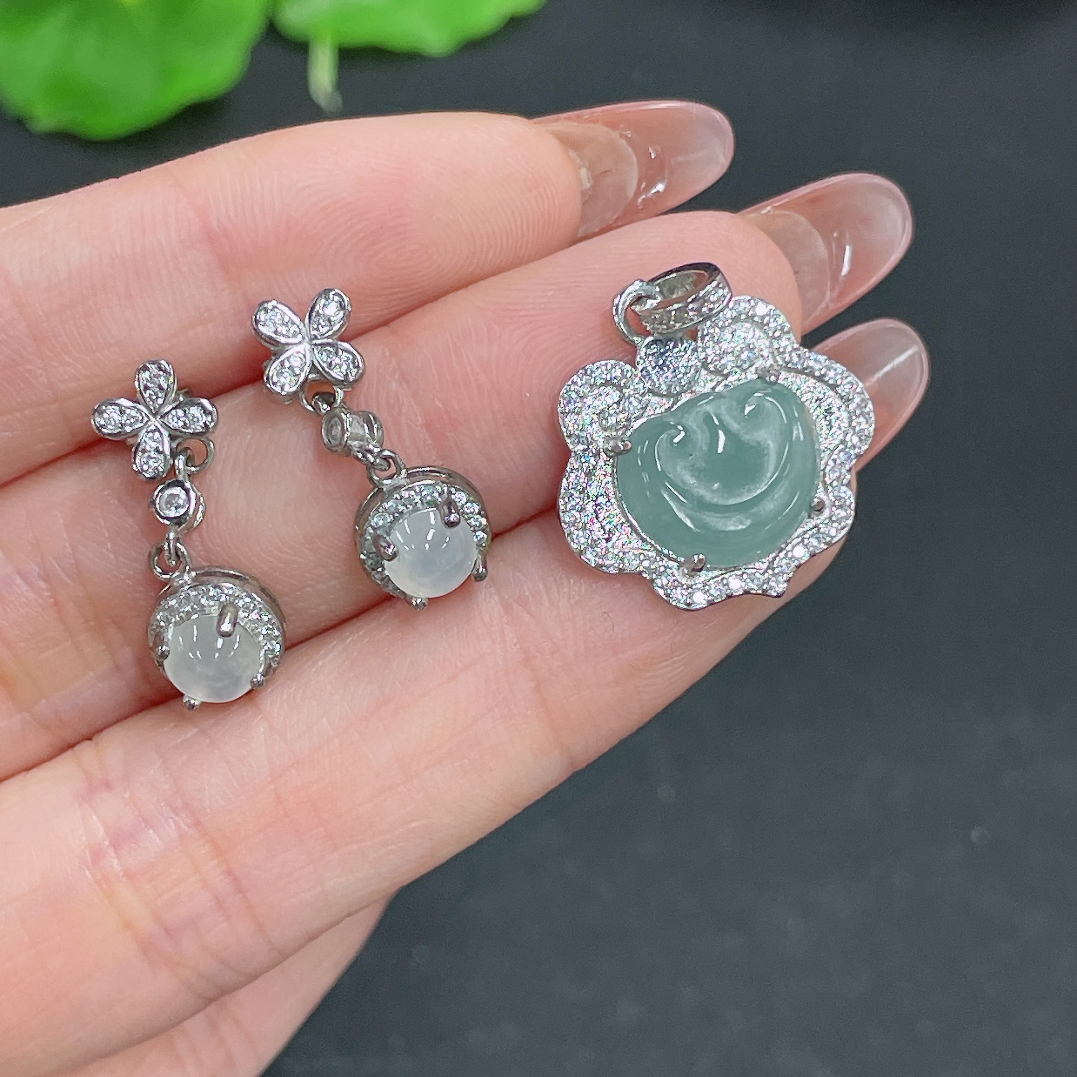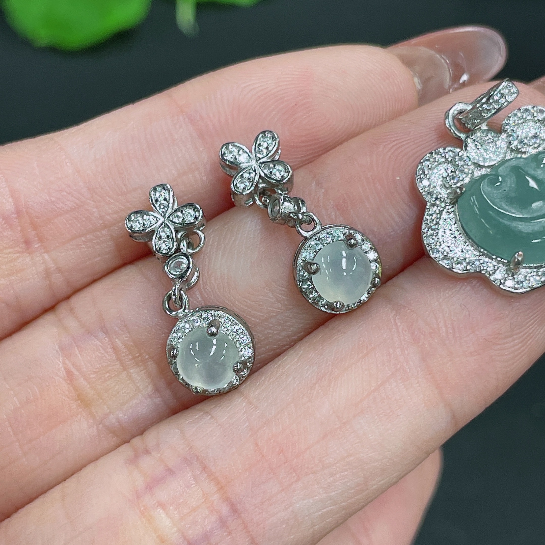 Jadeite Inlaid Pendant Earrings Sell as a Lot Non-Gold