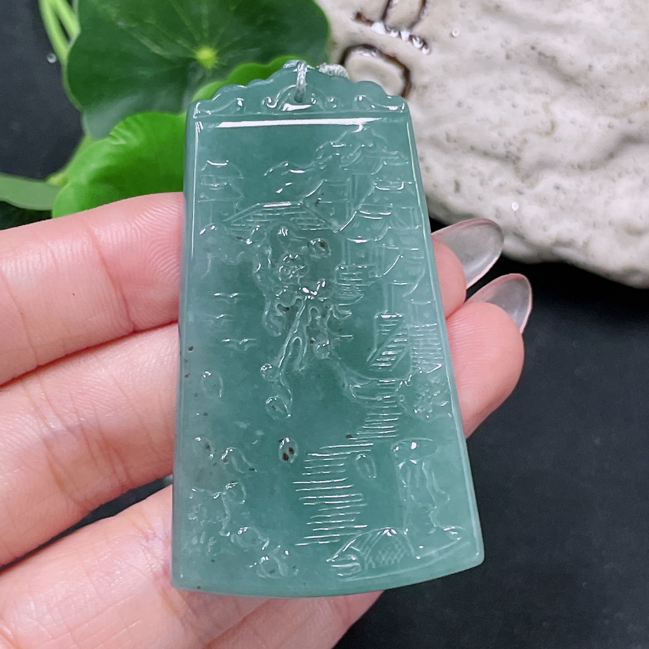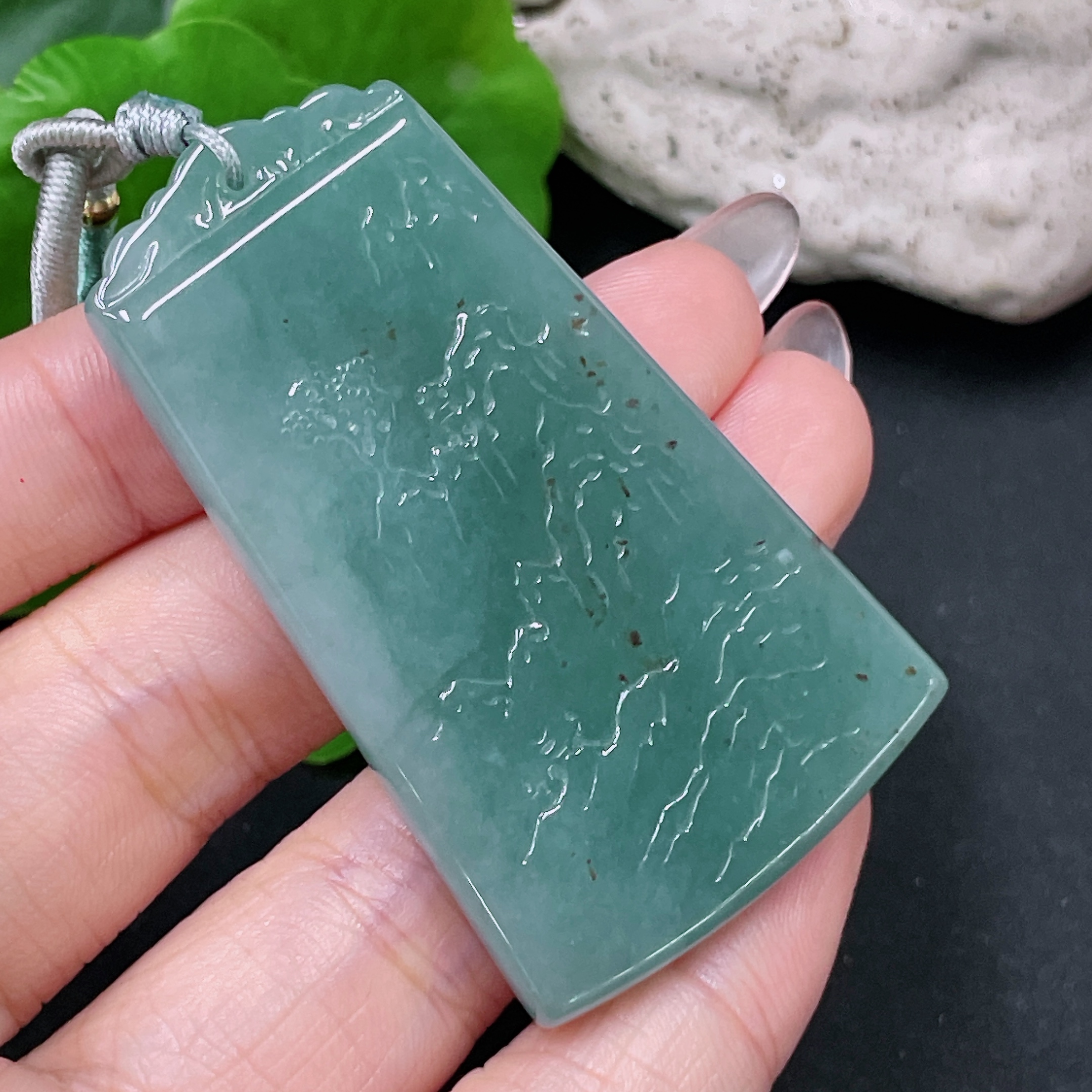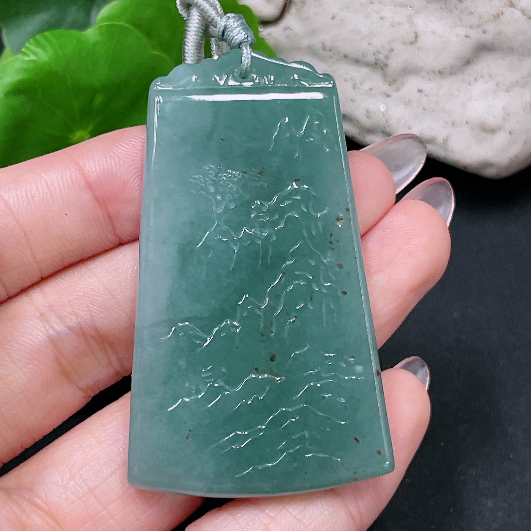 Jadeite Landscape Pendant with Cord, Total Weight Approx. 29.6g