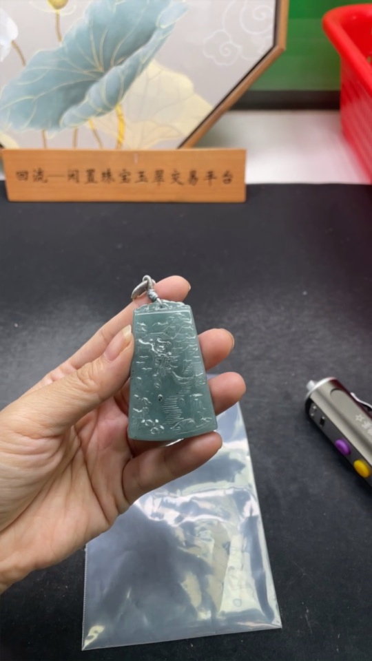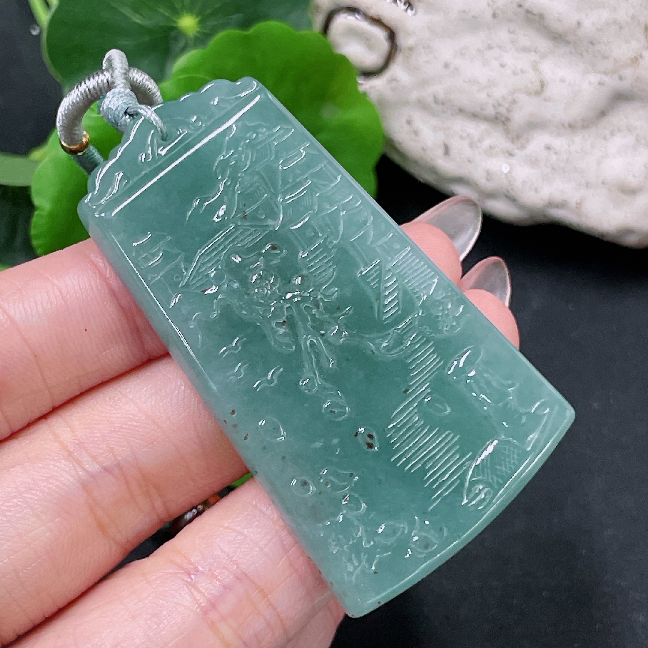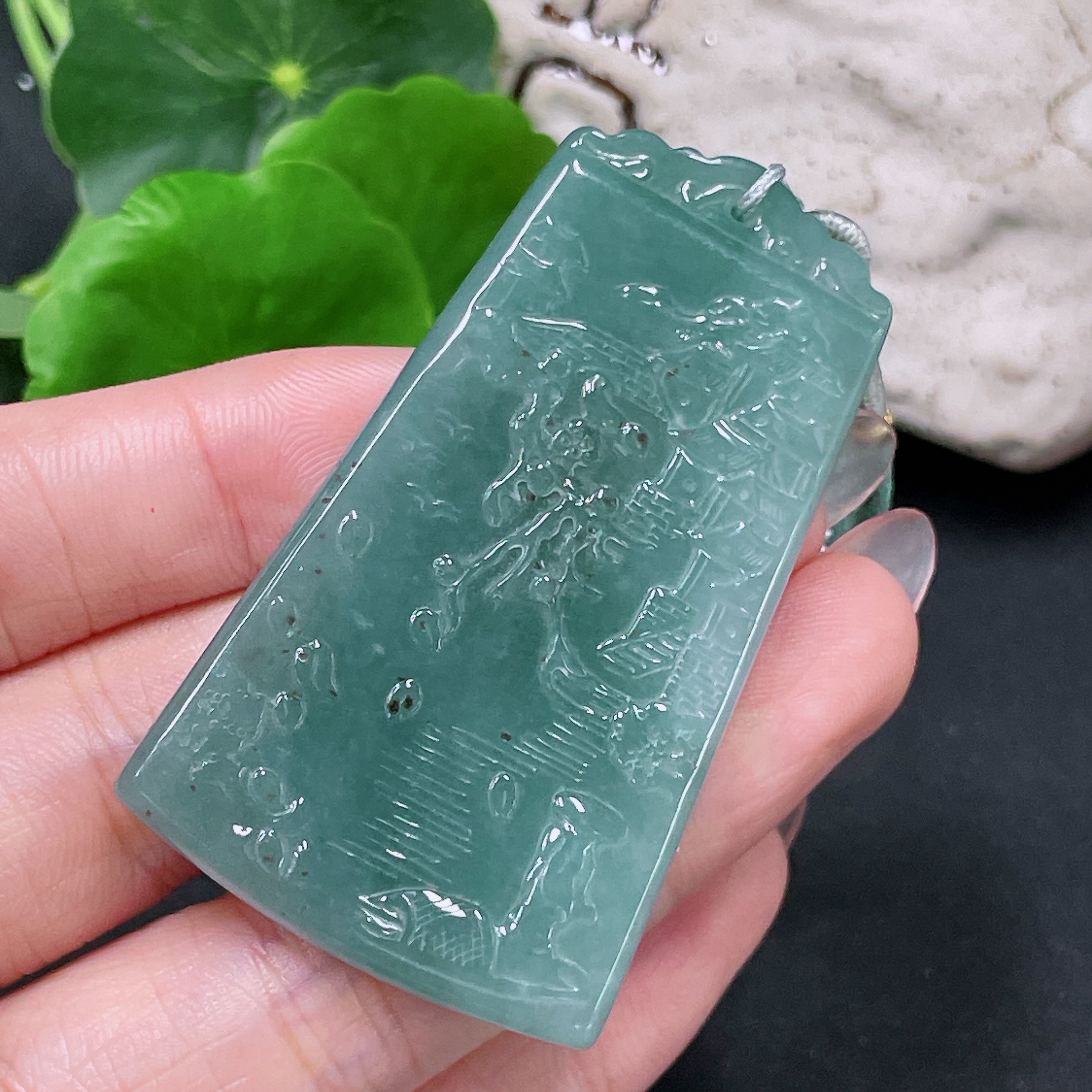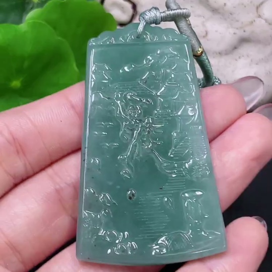 Jadeite Landscape Pendant with Cord, Total Weight Approx. 29.6g
