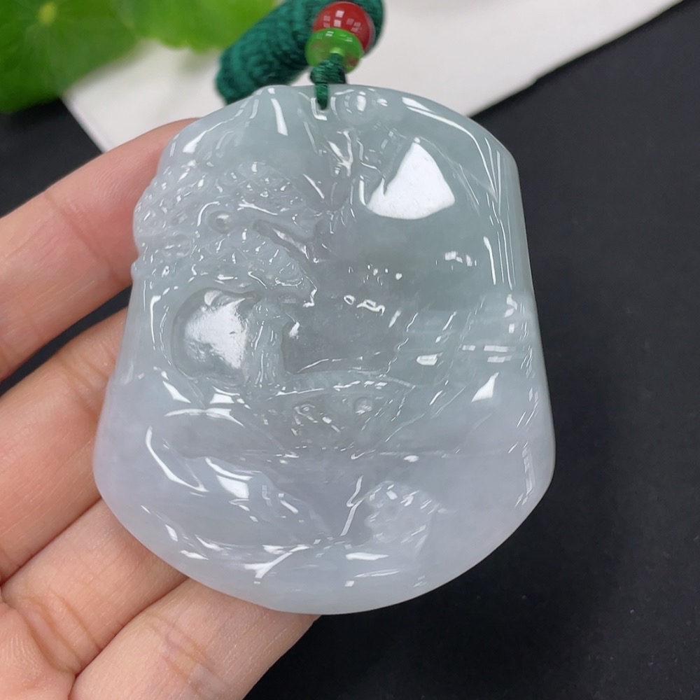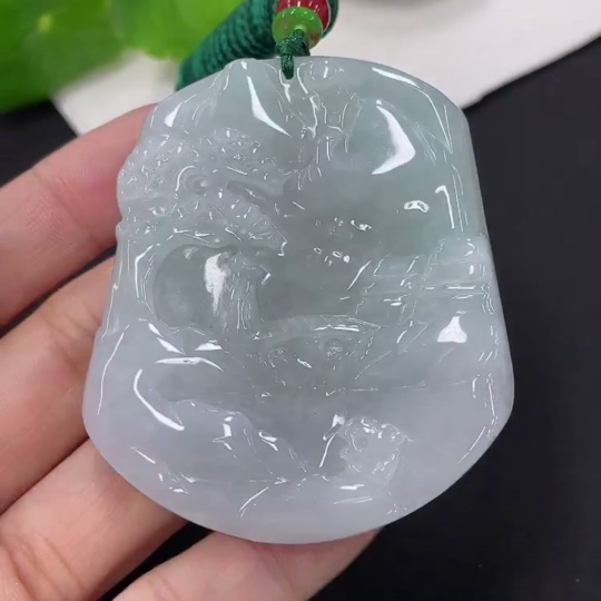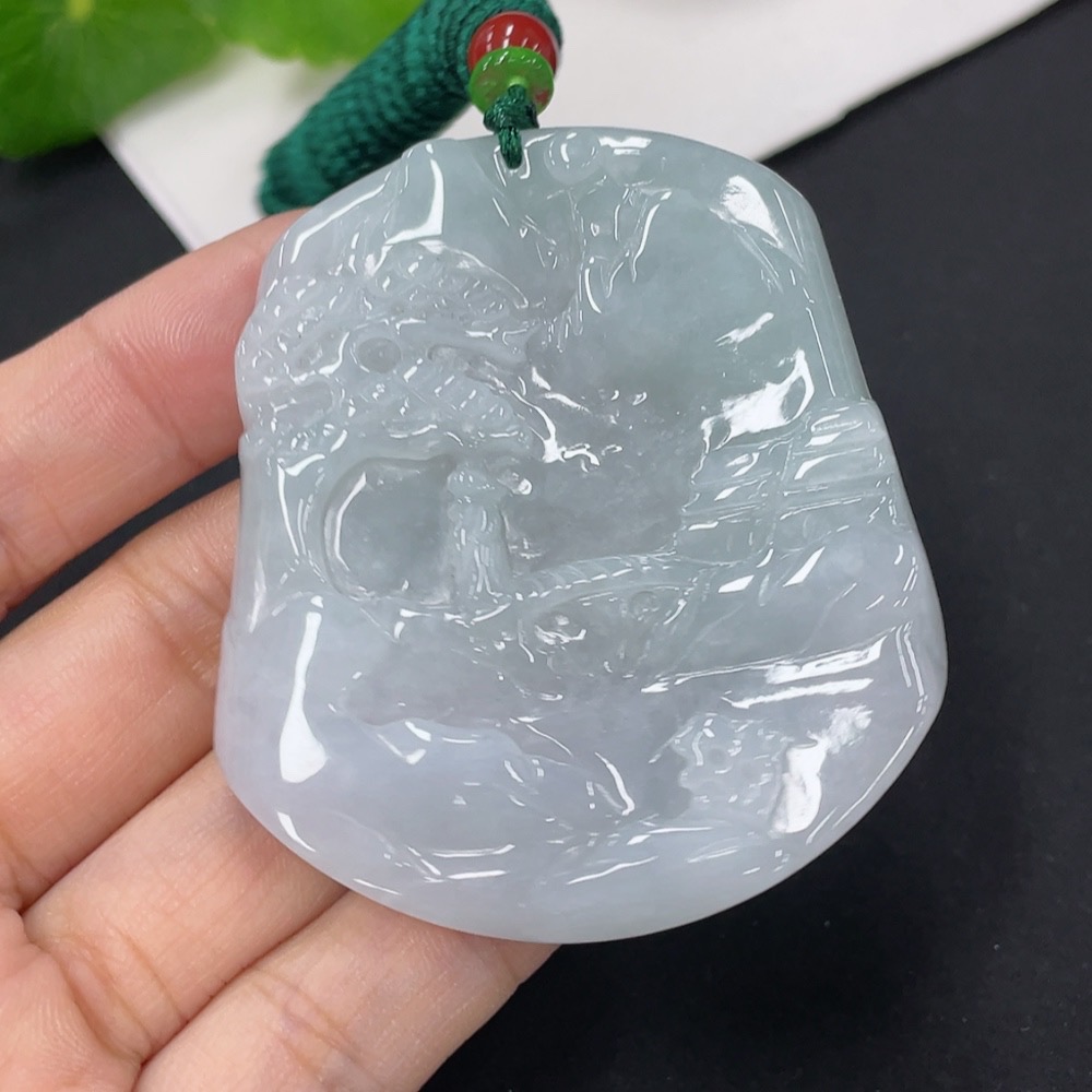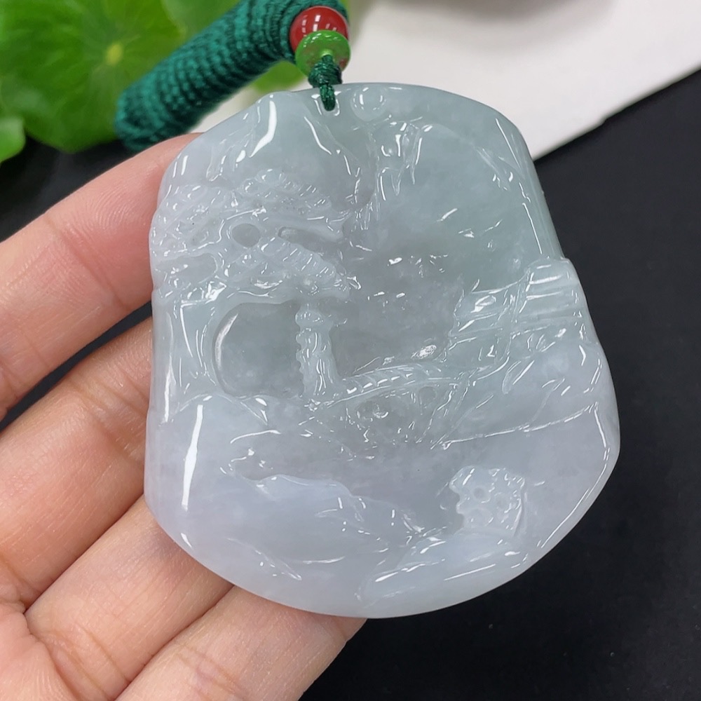 Jadeite Pendant Landscape Plaque Total Weight Approx. 34.38g Including Cord Non-Grade A Beads